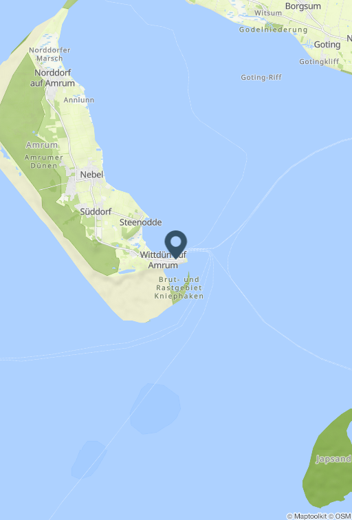 Informationen zum Gastgeber Das Haus Nordenlicht in Wittdün auf Amrum ist ein Wohn- und Geschäftshaus direkt am Nordstrand der Insel in Nähe des Fähranlegers gelegen. Nur wenige Schritte sind es vom Haus zur Nordstrandpromenade und Wattenmeer. Im Erdgeschoß des Hauses gibt es mehrere Geschäfte, u.a. ein Lebensmittelgeschäft. Weitere Einkaufsmöglichkeiten, Bushaltestellen, Restaurants und Cafes und der Fähranleger sind nur wenige Schritte entfernt. Zum Badestrand Kniepsand sind es etwa 400m, das AmrumBadeland und Thalassozentrum Amrum-Spa sind etwa 1km entfernt. Konditionen/Extras Die Kurabgabe und die Endreinigung sind nicht im Übernachtungspreis enthalten und werden extra ausgewiesen. Handtücher und Bettwäsche sind nicht im Übernachtungspreis enthalten, können aber optional im weiteren Buchungsverlauf hinzugebucht werden. Ein Hund darf gegen Aufpreis mitreisen und kann im weiteren Buchungsverlauf optional hinzugebucht werden. Nach Bezahlung des Gesamtpreises erhalten Sie von Ihrer Gastgeberin einen elektronischen Eingangscode zum Haus. Anreisebeschreibung Fährverbindung nach Wittdün/Amrum ab Dagebüll (Autofähre www.faehre.de), Fahrtzeit ca 2 Std., ab Nordstrand oder Hörnum/Sylt (Personenfähre www.adler-schiffe.de) von April bis Oktober, Fahrtzeit ca. 90 bzw 45 Min. Folgen Sie ab Verlassen der Fähre dem Verlauf der Inselstraße etwa 200m, das Haus Nordenlicht liegt auf direkt an der Inselstraße auf der rechten Seite. Der Hauseingang befindet sich auf der Ostseite des Hauses. Die Zufahrt zum Parkplatz erreichen Sie über die Westseite. Ihre Unterkunft steht Ihnen am Anreisetag ab 16.00 Uhr bis zum Abreisetag um 10.00 Uhr zur Verfügung. Beschreibung. 1-Raum-Ferienwohnung (35qm) für 2 Erwachsene und max. 1 Kind zusätzlich, im 2. OG mit Blick nach Westen auf Nachbarhäuser und seitlich aufs Wattenmeer. Die Wohnung ist ohne Stufen vom Haupteingang oder Parkplatz mit dem Fahrstuhl zu erreichen. Wohn-Schlafraum mit Eckbank, Bett, Küchenzeile und Zugang zur Loggia. Küchenzeile mit 4-Plattenherd, Backofen und Kühlschrank, Geschirr und Hausrat. Eckbank mit Eßtisch, Kommode mit TV und DVD, Ehebett (140X200, einteilige Matratze mit zwei Lattenrosten), Kleiderschrank. Verglaste, isolierte Loggia mit Tisch und 2 Sesseln. Bad mit Dusche, Waschbecken, Spiegel, Ablage und WC. Fußbodenbelag in der kompletten Wohnung: Fliesen. Ein mitreisendes Kind übernachtet im breitgestellten Kinderreisebettchen oder im Zustellbett im Wohnungsflur gegen Aufpreis. Konditionen/Extras Die Kurabgabe und die Endreinigung sind nicht im Übernachtungspreis enthalten und werden extra berechnet. Bettwäsche und Handtücher sind nicht im Übernachtungspreis enthalten, können aber im Warenkorb optional hinzugebucht werden. Die Mitnahme eines Hundes ist in dieser Ferienwohnung gegen Aufpreis gestattet. Sofern Sie mit Ihrem Hund anreisen, buchen Sie die Gebühr hierfür im Warenkorb hinzu.
