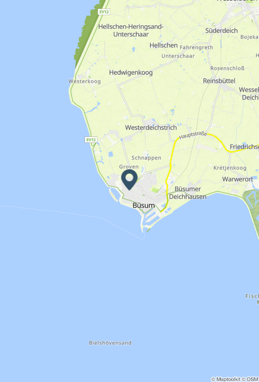 Informationen zum Gastgeber Das Gästehaus "Uns Hus" mit 6 Wohneinheiten ist ca. 200 m vom Grünstrand und der Familienlagune entfernt. Zu den Kureinrichtungen, zur Fußgängerzone und zu den Gaststätten sind es ca. 15-20 Gehminuten; Einkaufsmöglichkeiten für Lebensmittel befinden sich ca. 5 Minuten entfernt in der Nordseestraße. Konditionen/Extras Anreise ab 16:00 Uhr, Abreise bis 10:00 Uhr Anreisebeschreibung Mit dem Auto fahren Sie ab Hamburg durch den Elbtunnel, dann auf der A23 (Richtung Husum) über Itzehoe Richtung Heide. An der Abfahrt Heide West verlassen Sie die Autobahn und folgen der B 203 nach Büsum. Beschreibung. Die 2-Raum-Nichtraucher-Ferienwohnung verfügt über 50 qm und befindet sich im 1. Obergeschoss einer kleinen Appartementanlage (6 Einheiten). Für max. 2 Personen lässt es sich hier gemütlich urlauben. Das Wohnzimmer ist mit einem Essplatz, einer gemütlichen Couchgarnitur, einem LCD-Fernseher (Sat.-Empfang), einer HiFi-Anlage sowie einem WLAN-Zugang ausgestattet. Von hier aus gelangen Sie auf den möblierten Balkon mit Süd/West-Ausrichtung. Das Schlafzimmer besteht aus einem Doppelbett und dazu passendem Kleiderschrank. Getrenntes Schlafen ist möglich, da im Wohnraum ein Schrankbett vorhanden ist. Weiter bietet die Wohnung eine separate Einbauküche mit Herd (Ceranfeld), Backofen und einem Kühlschrank mit Gefrierfach. Ebenfalls finden Sie hier Geschirr für den täglichen Bedarf, einen Wasserkocher und eine Filter-Kaffeemaschine vor. Das Badezimmer mit Fenster ist mit einer Dusche, Handwaschbecken und WC ausgestattet. Haarfön und Kosmetikspiegel sind vorhanden. Konditionen/Extras Es stehen kostenfrei zur Verfügung: WLAN, Bett- und Handtuchwäsche sowie ein Privatparkplatz (Nr. 6) auf dem Grundstück. Für Ihre mitgebrachten Fahrräder ist eine abschließbare Gemeinschaftsgarage vorhanden. Ein Trockenraum mit Münz-Waschmaschine und Münz-Trockner befindet sich im Haus. Haustiere sind leider nicht gestattet.