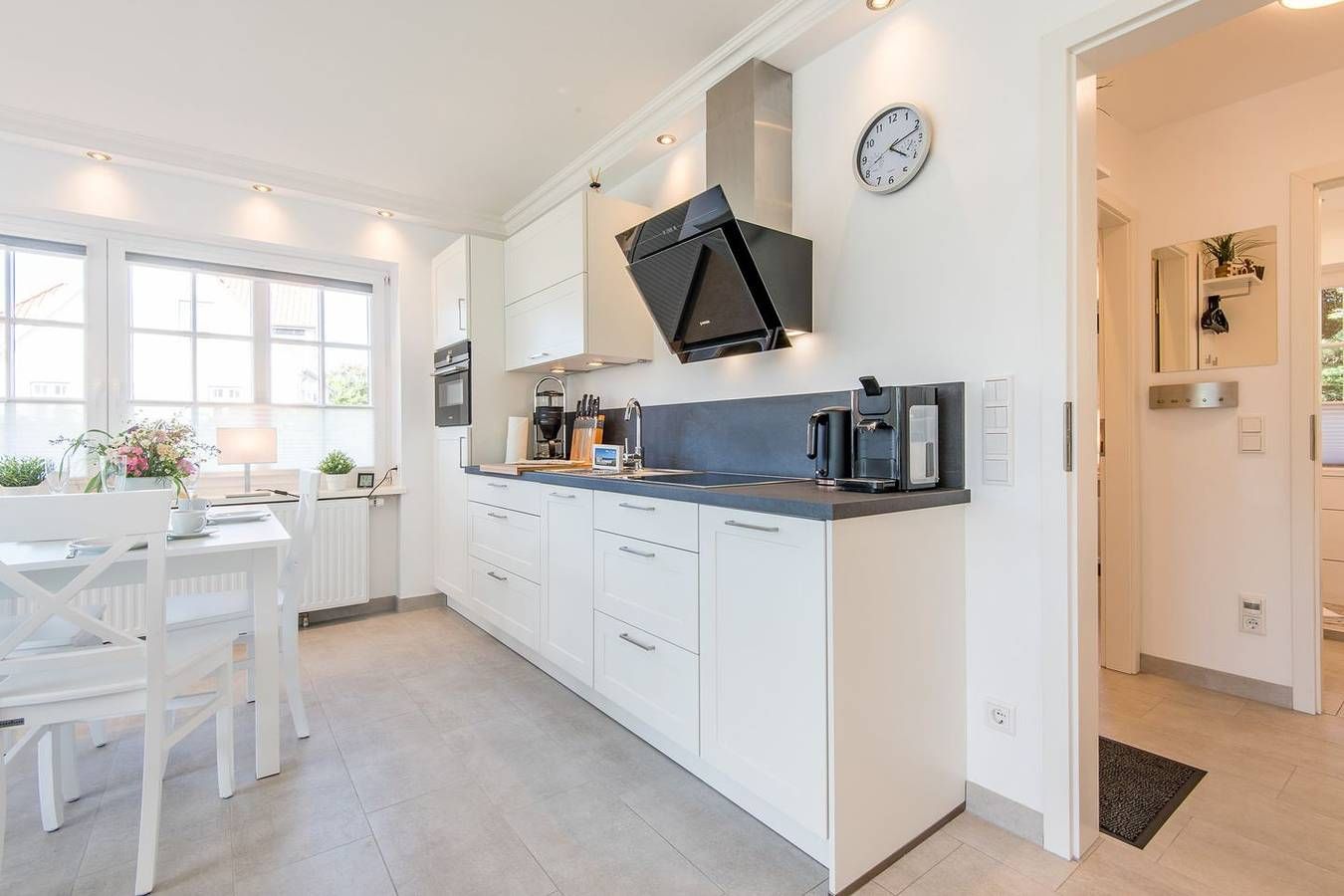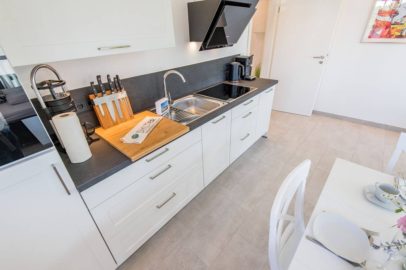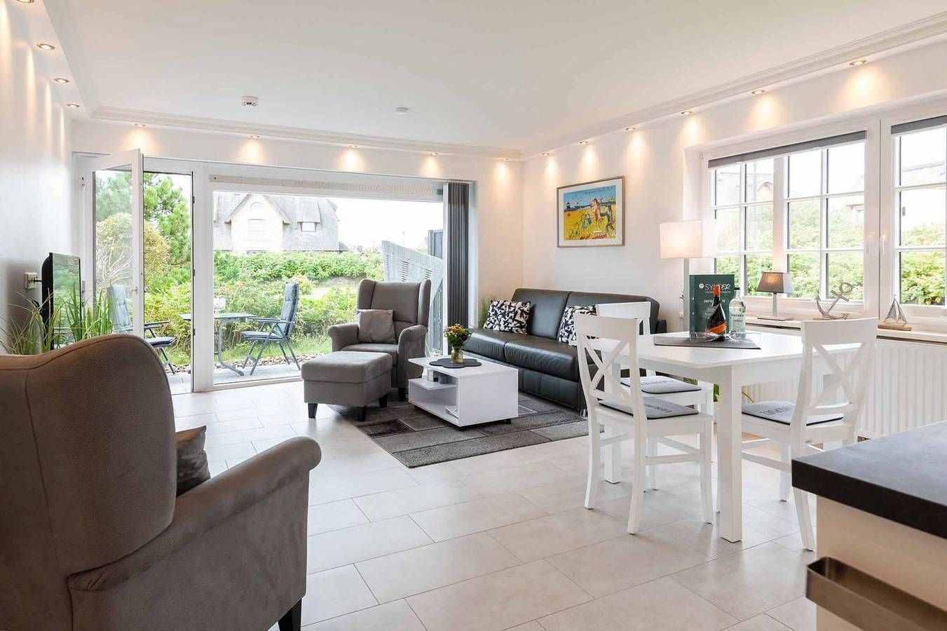 Ruhige und lichtdurchflutete 2-Zimmer Ferienwohnung in zentraler Lage am Dorfteich mit ca. 50 m² Wohnfläche, für bis zu 3 Personen. Diese Wohnung befindet sich im Erdgeschoss auf einer Ebene, wurde im Sommer 2022 renoviert und modernisiert und teilt sich wie folgt auf: Koch-/Wohn-/Essbereich: Neben der modernen und gut ausgestatteten Küchenzeile befindet sich der Esstisch für 3 Personen. Eine komfortable Sofaecke mit hochwertiger Schlafcouch (1,60 x 2,00 m) inkl. TV runden den Wohnbereich ab. Die großen Fenster und der Ausgang auf die eigene möblierte West-Terrasse mit Saison-Strandkorb laden zum Urlaub machen ein. Schlafzimmer: Doppelbett (1,80 x 2,00 m), großer Kleiderschrank, TV und Fenster. Badezimmer: Modernes Bad mit Dusche, WC und Fenster. Eine Waschmaschine sowie ein Trockner stehen ebenfalls zur gemeinschaftlichen Nutzung im Keller des Hauses zur Verfügung. (Münzgeräte) Lage: Die Wohnung liegt in zentraler und strandnaher Lage, direkt gegenüber des Wenningstedter Dorfteiches. Haustiere: Nein Nichtraucherwohnung Parkplatz: Ja