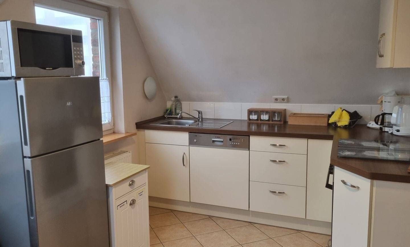 Herzlich Willkommen im Haus Frida-Sophie, wo Ihr Traumurlaub an der wunderschönen Nordseeküste auf Sie wartet! Diese einladende Ferienwohnung Appartement 2 ist eine perfekte Oase für Familien, Paare oder Einzelreisende, die nach Erholung und Entspannung suchen. Mit einer großzügigen Fläche von 60 m² bietet das Appartement Platz für bis zu drei Personen und sorgt dafür, dass sich jeder wie zu Hause fühlt. Das Appartement befindet sich im 1. Stock und ist hell und freundlich gestaltet – perfekte Voraussetzungen für einen gelungenen Aufenthalt. Zwei geschmackvoll eingerichtete Schlafzimmer garantieren angenehme Nächte und eine erholsame Nachtruhe. Das Wohnzimmer lädt mit seinem gemütlichen Sofa und einem Esstisch zum Entspannen und geselligen Beisammensein ein. Zur Unterhaltung stehen Ihnen ein TV, DVD- und CD-Player sowie eine HiFi-Anlage zur Verfügung, sodass für jedes Familienmitglied das passende Freizeitangebot bereitsteht. Die geschlossene, voll ausgestattete Küche ist ein Highlight der Wohnung. Sie finden hier alles, was Sie für die Zubereitung Ihrer Lieblingsgerichte benötigen – vom Kühlschrank über einen Backofen, eine Mikrowelle und eine Kaffeemaschine bis hin zu Geschirr und Besteck. So können Sie nach einem Tag am Strand selbst kochen und die gemeinsamen Mahlzeiten auf dem Balkon genießen, der mit Gartenmöbeln ausgestattet ist und eine erholsame Atmosphäre bietet. Ein besonderes Plus der Unterkunft ist die kinderfreundliche Ausstattung. Kinder sind hier herzlich willkommen und können sich auf dem gemeinschaftlichen Spielplatz im Garten austoben. Auch Haustiere sind erlaubt, sodass Ihre vierbeinigen Freunde nicht zu Hause bleiben müssen. Das Appartement bietet darüber hinaus auch Annehmlichkeiten wie WLAN, einen Haartrockner, eine Waschmaschine sowie einen Trockner, um Ihren Aufenthalt so angenehm wie möglich zu gestalten. Die Lage in Westerland auf Sylt ist ideal – nur einen kurzen Spaziergang von den endlosen Stränden entfernt, wo Sie die Nordsee in vollen Zügen genießen können. Hier können Sie ausgedehnte Strandspaziergänge unternehmen, schwimmen, oder einfach am Strand entspannen und die frische Meeresluft inhalieren. In der unmittelbaren Umgebung finden Sie zahlreiche Cafés, Restaurants und Einkaufsmöglichkeiten, sodass Sie auch kulinarisch auf Ihre Kosten kommen. Ob Sie sich für Aktivitäten wie Radfahren, Wandern oder einfach nur für das Genießerleben am Meer entscheiden – in Westerland gibt es stets etwas zu entdecken. Nach einem aufregenden Tag heißt es dann wieder: Willkommen im Haus Frida-Sophie, wo Ihre Erholung im Mittelpunkt steht. Steigen Sie ein in Ihre Auszeit vom Alltag und buchen Sie jetzt Ihren Aufenthalt in der Ferienwohnung Appartement 2! Lassen Sie sich von der einzigartigen Atmosphäre und dem umfangreichen Angebot dieser Unterkunft begeistern – wir freuen uns auf Sie!