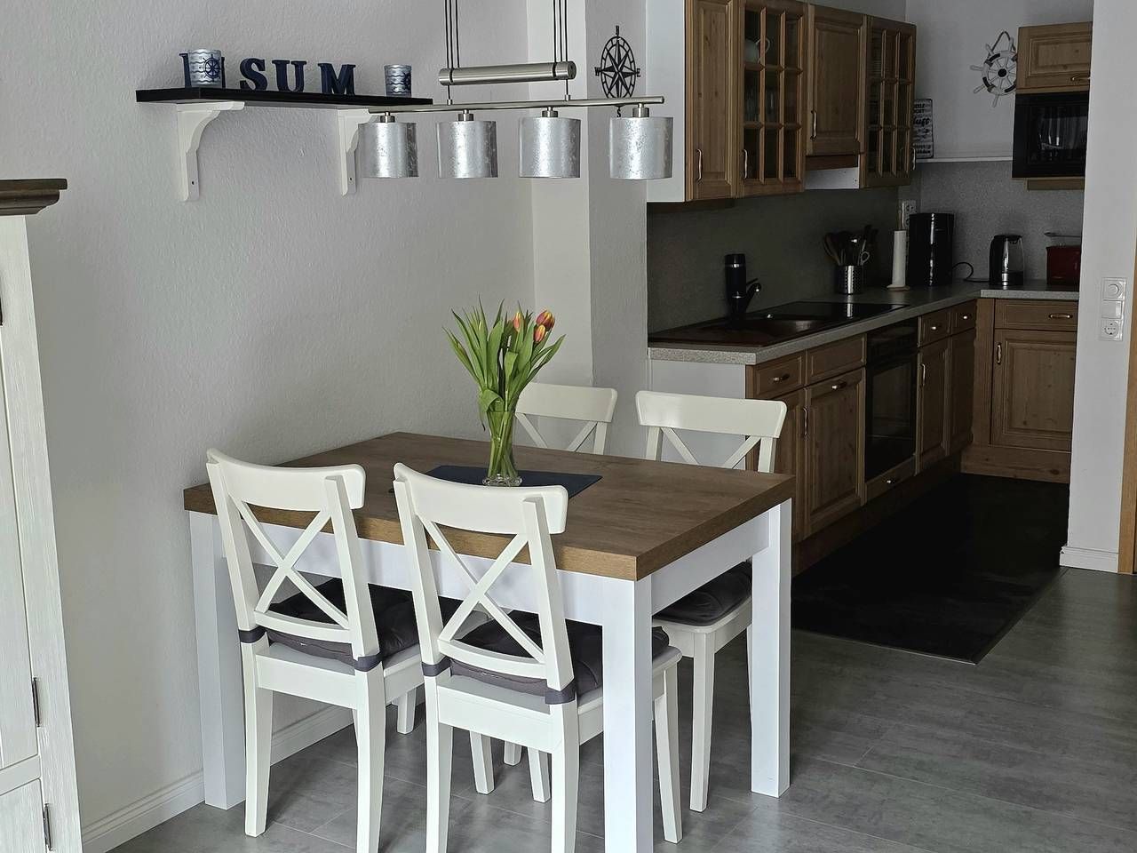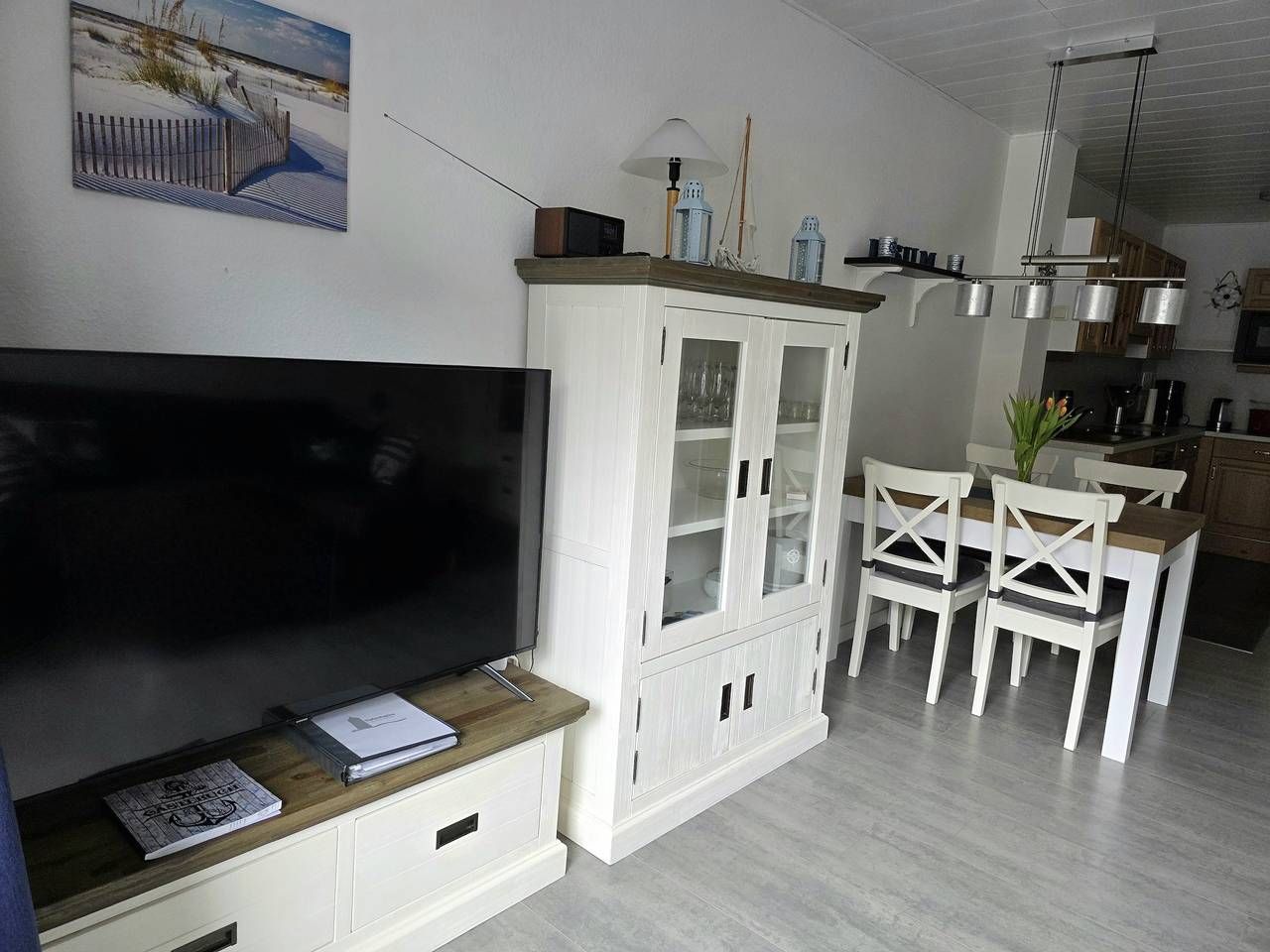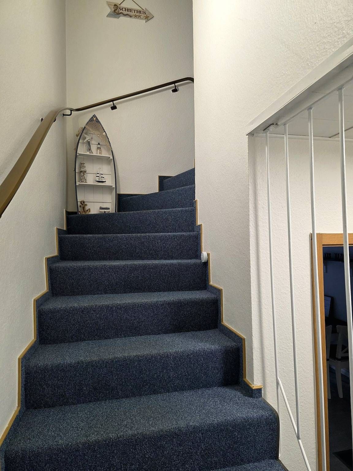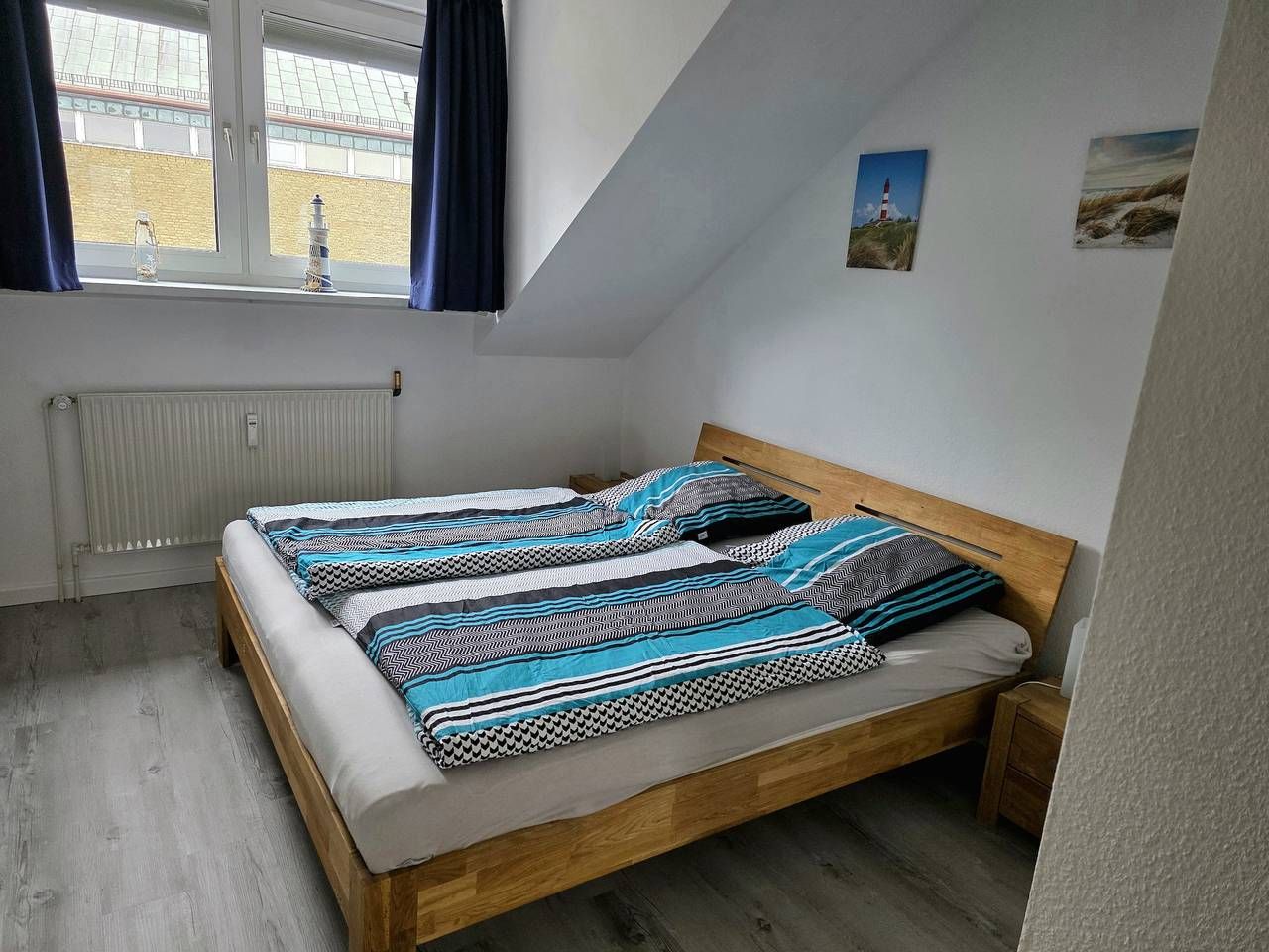 Informationen zum Gastgeber Die Ferienwohnung befindet sich direkt gegenüber dem Gäste- und Veranstaltungszentrum "Watt'n Hus" in direkter Nähe zum Deich. Der Hauptstrand, das Wellenbad & Spa "Meerzeit Büsum" sowie die Fußgängerzone mit vielen Geschäften und Restaurants sind in wenigen Gehminuten erreicht. Eine Haltestelle vom "Krabbenexpress" ist ebenfalls unweit fußläufig entfernt. Bettwäsche und Handtücher können kostenpflichtig vom Schlüsselhalter zur Verfügung gestellt werden; bitte melden Sie dies vorab beim Schlüsselhalter an. Die Kosten hierfür sind bei der Schlüsselübergabe in bar an den Schlüsselhalter zu zahlen und nicht im Rechnungsbetrag inkludiert. Preise für Bettwäsche und Handtücher: 21,42 EUR pro Person und Aufenthalt. Es ist ein Hund mit einer Schulterhöhe von bis zu von 50 cm gestattet. Der Hund ist im Endpreis inkludiert; bitte melden Sie den Hund vorab beim Gastgeber an. Konditionen/Extras Anreise ab 16:00 Uhr; Abreise bis 10:00 Uhr. Den Schlüssel erhalten Sie vom Schlüsselhalter (ca. 5 Minuten zu Fuß von der Unterkunft entfernt); die Kontaktdaten entnehmen Sie bitte der Buchungsbestätigung. Anreisebeschreibung Mit dem Auto fahren Sie in Hamburg durch den Elbtunnel, dann auf der A23 (Richtung Husum) über Itzehoe Richtung Heide. An der Abfahrt Heide West verlassen Sie die Autobahn und folgen der B 203 nach Büsum. Beschreibung. Die 3-Raum-Nichtraucher-Maisonette-Ferienwohnung "Hafenkajüte" bietet auf 2 Etagen Platz für bis zu 4 Personen. Das Wohnzimmer ist mit einem Fernseher und einer Couch ausgestattet. Von hier aus gelangen Sie auf den Balkon. In der offenen Küchenzeile mit Backofen, Herd, Kühlschrank mit Gefrierfach, Mikrowelle und Airfryer, sowie sämtlichen Utensilien für den täglichen Haushaltsbedarf lässt es sich gut selbst versorgen. Zwei Schlafzimmer, eines mit Doppelbett (180 x 200 cm) und eines mit zwei Einzelbetten (90 x 200 cm), dienen dem erholsamen Schlaf. Das Badezimmer ist mit Dusche, WC und Handwaschbecken ausgestattet. Konditionen/Extras Bettwäsche und Handtücher können kostenpflichtig vom Schlüsselhalter zur Verfügung gestellt werden; bitte melden Sie dies vorab beim Schlüsselhalter an. Die Kosten hierfür sind bei der Schlüsselübergabe in bar an den Schlüsselhalter zu zahlen und nicht im Rechnungsbetrag inkludiert. Preise für Bettwäsche und Handtücher: 21,42 EUR pro Person und Aufenthalt. Es ist ein Hund mit einer Schulterhöhe von bis zu von 50 cm gestattet. Der Hund ist im Endpreis inkludiert; bitte melden Sie den Hund vorab beim Gastgeber an. Weitere Haustiere sind in der Ferienunterkunft nicht gestattet. Kostenloses WLAN, ein fester Parkplatz in ca.350m Entfernung, sowie ein Anwohnerparkausweis für den nahegelegenen Parkplatz "Am Vorfluter" (Deichweg, ca 150m entfernt) runden das Angebot ab. Eine überdachte öffentliche Fahrradabstellmöglichkeit ist vom Haus gegenüber beim "Watt'n Hus".