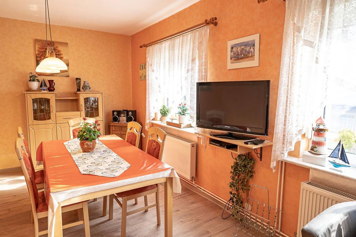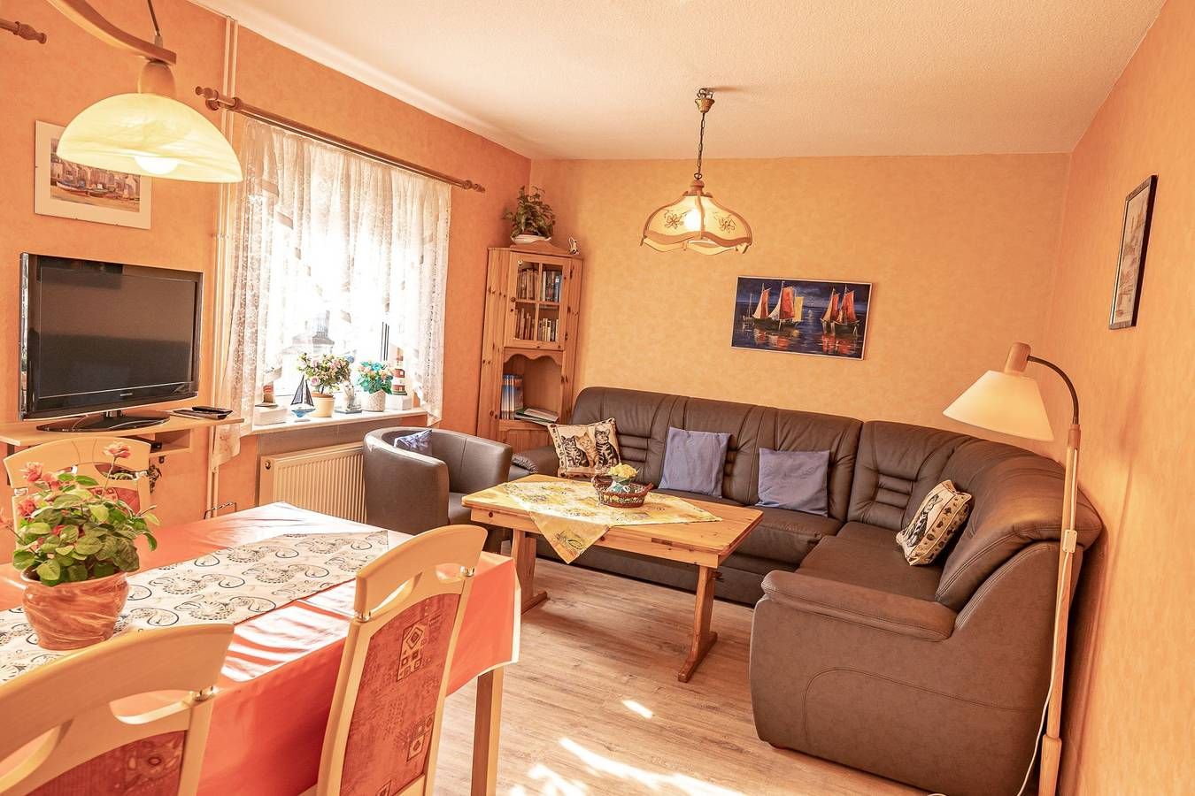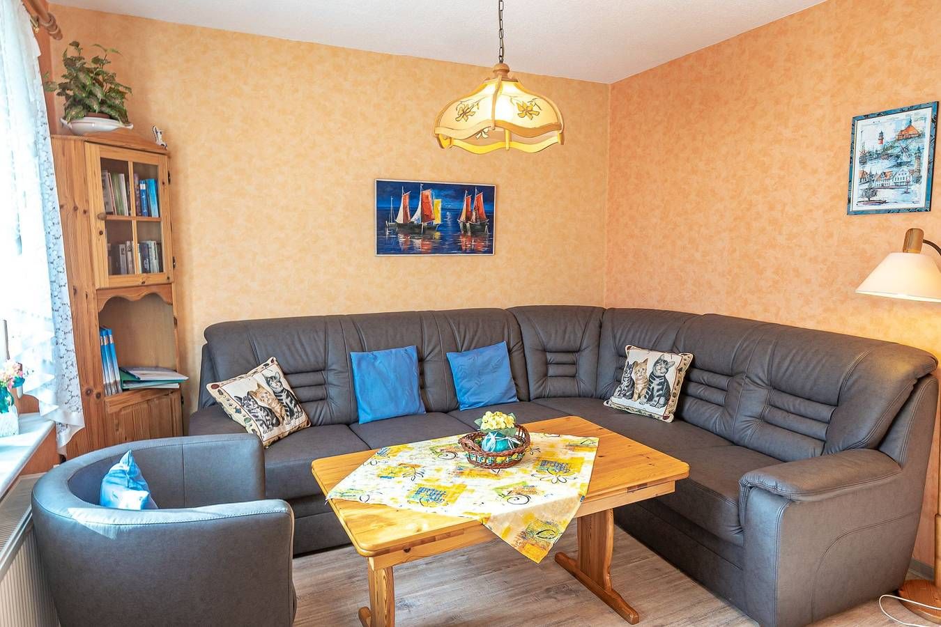 Die Ferienwohnung bietet Platz für 2-6 Personen. Im Erdgeschoss ist ein großes Wohnzimmer, eine geräumige Küche und ein Schlafzimmer mit Doppelbett. Die Dusche und Toilette sind großzügig gestaltet. Im Obergeschoss befinden sich 2 Schlafräume mit Doppelbetten und einem Kinderbett. Zusätzlich eine Toilette und Waschbecken.