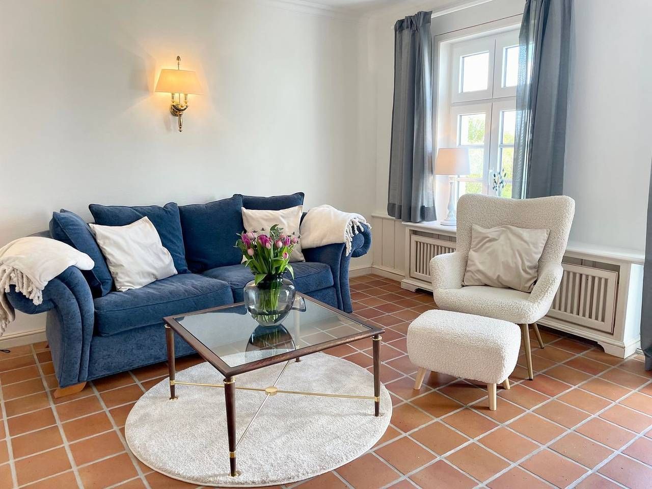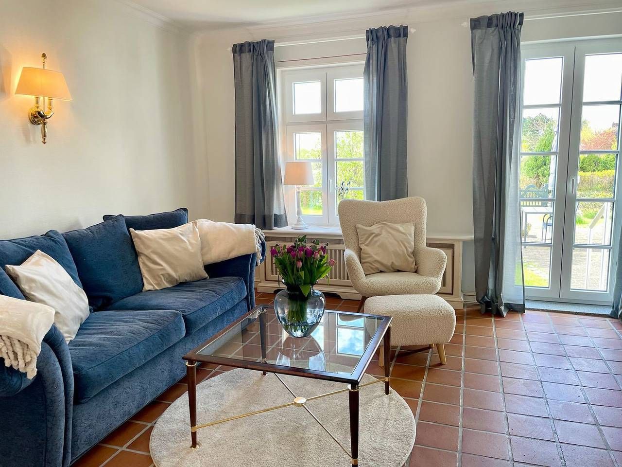 Das Landhaus Tons erwartet seine Gäste im Osten Sylts im wunderschönen Keitum. Die einzige Inselhauptstadt besticht mit ihrem Charme: Idyllische Gassen, alte Kapitänshäuser, urige Lokale und individuelle Geschäfte sorgen dafür, dass sich in Keitum der friesische Charakter Sylts besonders gut erhalten hat. Eingeschlossen in Wiesen und Felder bezeichnet sich der Ort zudem zu Recht als das "grüne Herz der Insel". Von Ihrer Ferienwohnung aus erreichen Sie nicht nur verschiedene Geschäfte, sondern auch hübsche Lokale ganz bequem zu Fuß. Vom Meer trennen Sie hier lediglich 500 Meter. In ähnlicher Entfernung befinden sich die Hünengräber Harhoog und Tipkenhoog. Hell und geräumig gestaltet ist die Ferienwohnung 4. "Tinje" ein idealer Rückzugsort für bis zu zwei Gäste. Der Wohnraum lädt Sie zu gemeinsamen, entspannten Stunden ein. Polstermöbel sorgen für Gemütlichkeit während der Flachbildfernseher abwechslungsreiche Unterhaltung bietet. Eingepasste Holzmöbel und große Flügeltüren zur Küche sorgen zudem für architektonische Glanzpunkte. Direkt vom Wohnraum aus gelangen Sie in den Küchenbereich. Die Wohnküche bietet nicht nur genügend Platz für eine gut ausgestattete Küchenzeile, die keine Wünsche offen lässt, sondern auch für einen Esstisch für bis zu vier Personen. Auch das separate Schlafzimmer ist dank großer Fenster wunderbar hell und luftig. Ein hübscher Teppich sorgt zudem für ein angenehmes, warmes Fußgefühl. Das große Doppelbett wurde perfekt in den Rum integriert. Das Tageslichtbad punktet mit seiner bodengleichen Dusche mit Glastüren. Ein beleuchteter Spiegel, reichlich Ablagefläche, Waschbecken und WC vervollständigen die Ausstattung des Badezimmers. Das Landhaus Tons wird von einer großen Gartenfläche eingerahmt. Eingefasst durch eine Hecke bieten die Rasenflächen reichlich Platz, um die frische Inselluft in vollen Zügen zu genießen. Eine eigene, möblierte Terrasse gehört selbstverständlich ebenso zu den Annehmlichkeiten, die Ihnen im Außenbereich zur Verfügung stehen, wie ein Privatparkplatz.