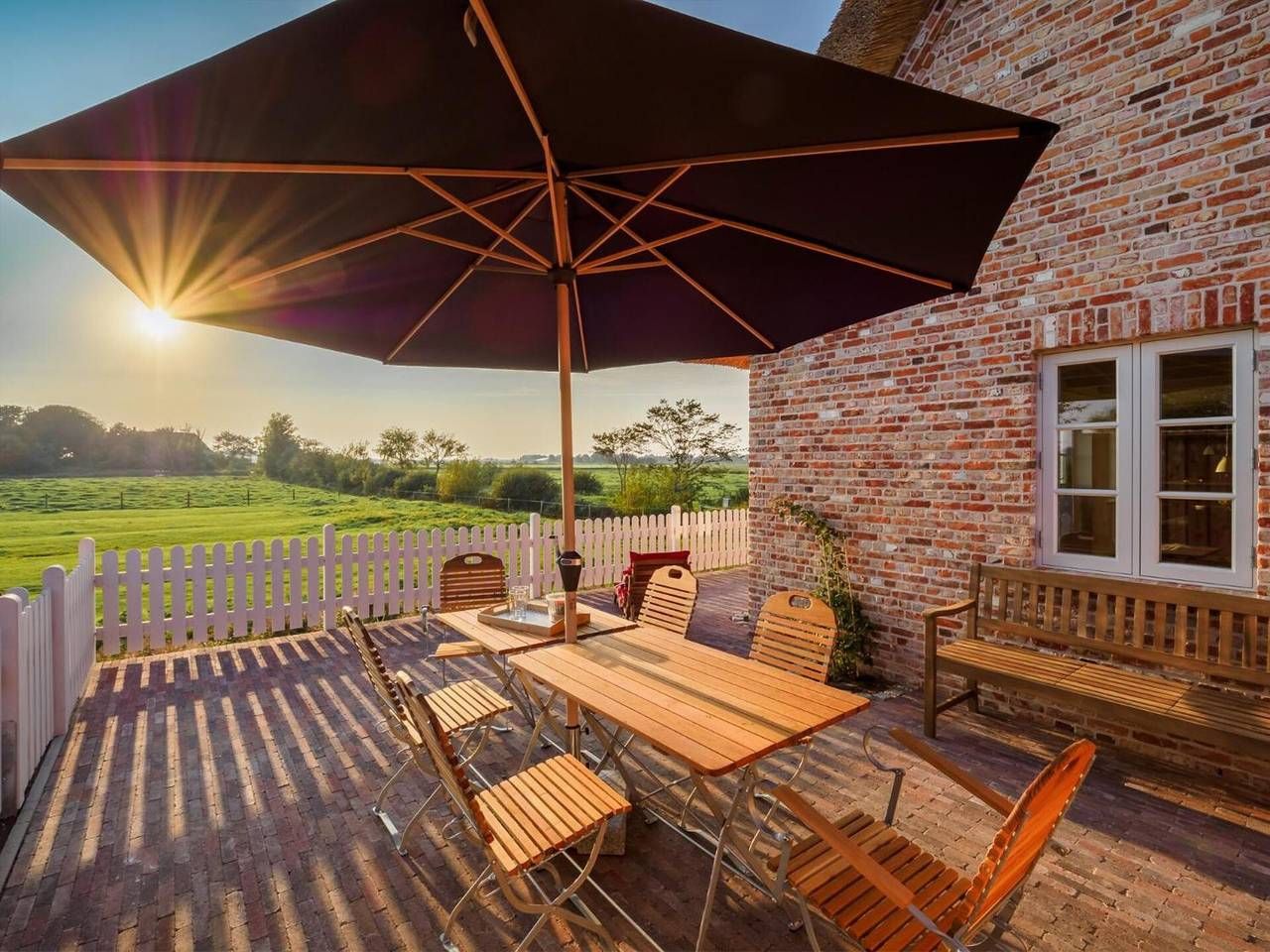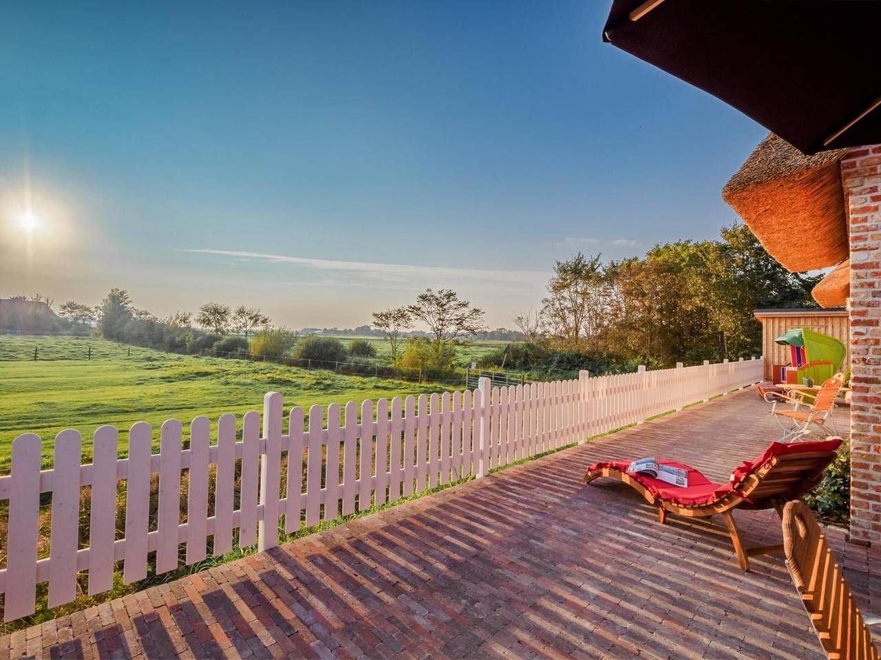 Das herrliche 5-Sterne-Reetdachhaus in Tammensiel auf Pellworm bietet auf 130 m² Platz für bis zu 6 Gäste. Es verfügt über 3 Schlafzimmer: Zwei im Obergeschoss mit jeweils eigenem Bad und ein seniorengerechtes Schlafzimmer im Erdgeschoss mit Bad direkt gegenüber. Die voll ausgestattete Küche, Highspeed-WLAN für Videokonferenzen, Fernseher, Video-on-Demand, Waschmaschine, Trockner und Fußbodenheizung in allen Räumen sorgen für Komfort. Im Bad im Erdgeschoss befindet sich eine private Sauna für 6 Personen. Hochstuhl, Babybett und Strandtücher sind vorhanden. Genießen Sie den privaten Garten und zwei Terrassen mit schönem Inselblick. Der großzügige Wohn- und Essbereich (über 40 m²) bietet durch die Terrassentür direkten Zugang zur Natur. Ein eigener Grill steht für Mahlzeiten im Freien bereit. Parken Sie bequem auf dem Grundstück (1 gemeinsamer Stellplatz) oder an der Straße. Bis zu 2 Haustiere sind willkommen. Eine Ladestation für E-Autos ist vorhanden. Es gibt einen gemeinschaftlichen Fahrradraum, Fahrräder können Sie im Ort mieten. Sie suchen Ruhe fernab des stressigen Alltags, im Einklang mit unberührter Natur, umgeben von vielfältiger Tierwelt und den Gezeiten der Nordsee – dann sind Sie auf Pellworm genau richtig. Entdecken Sie auf Pellworm eine einzigartige Art der Entspannung – hier genießt man die Ruhe und Weite. Wenn Sie die klar strukturierte nordfriesische Architektur, reetgedeckte, alleinstehende, weiße Landhäuser auf Warften, umgeben von Wiesen, Pütten und unendlicher Weite nahe am Meer lieben, werden Sie sich bei uns wohlfühlen und vollkommen entspannen. Supermarkt, Wellness, Restaurants, Arzt, Apotheke und der alte Hafen sind in 5 Minuten zu Fuß erreichbar. Das Meer ist nur wenige Gehminuten entfernt, ein Tennisplatz in 15 Minuten. Das Haus ist rauchfrei. Reinigungsservice während Ihres Aufenthalts ist gegen Gebühr möglich.