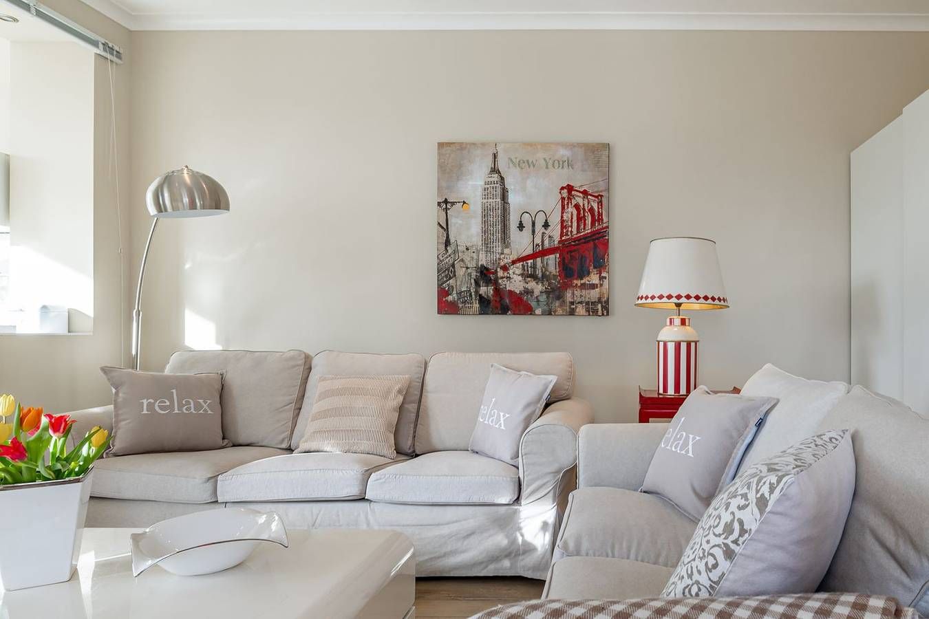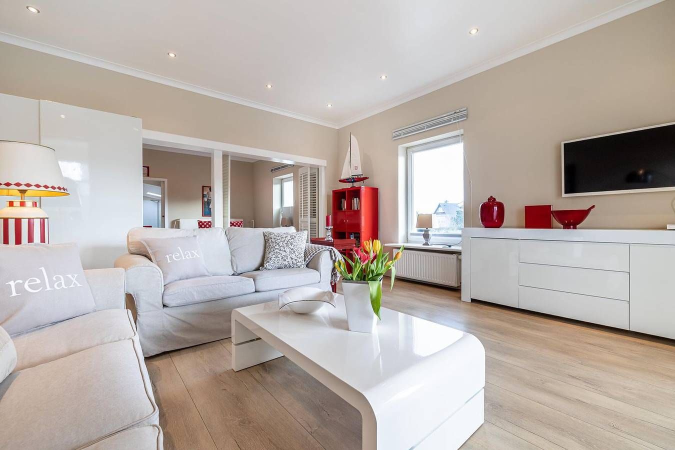 Diese aufwändig sanierte und renovierte 2 Zimmer-Wohnung im Obergeschoss (ebenerdig, ca. 60 m²) liegt zentral mit ca. 5 Gehminuten zum Strand und in die Innenstadt Westerlands. Die lichtdurchflutete, in rot und weiß eingerichtete Wohnung wurde offen und loftartig gestaltet. Neben dem Schlafzimmer mit Boxspringdoppelbett (2×80 cm x 200 cm) befindet sich das großzügige Wohnzimmer mit einem 50 Zoll Smart TV, einem elektrischen Kamin und zwei Sofas. Durch einen Raumtrenner können Sie ganz leicht das Schlafzimmer vom Wohnraum trennen. Ebenfalls hier zu finden ist die komplett ausgestattete Küche mit allem, was das Herz begehrt: von einer Espressomaschine, über eine Mikrowelle mit Grillfunktion, als auch Spülmaschine, bis hin zu raffiniert integriertem Stauraum. Anschließend an das Schlafzimmer befindet sich das Duschbad mit extra großer Dusche. Zusätzlich steht Ihnen eine kleine Terrasse am Hauseingang zur Verfügung mit einer kleinen Sitzbank und einem Tischchen. Haustiere sind leider nicht gestattet! Für weitere Fragen, steht Ihnen sehr gerne die Vermietung "Appartements Eberhardt" zur Verfügung.