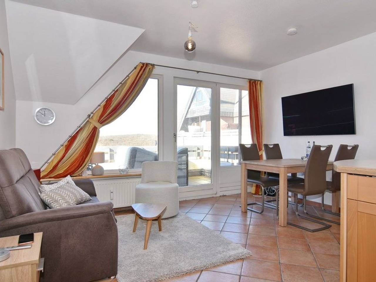 2-Zimmer-Ferienwohnung im Haus Alice, ca. 39qm, 2. OG: Wohnküche mit Eßplatz und kleiner Sitzecke bestehend aus Sofa und Sessel, großer Flat-TV, Radio, Telefon, DT. Telekom Festnetz und DSL-Internetzugang mit Flatrate ohne...