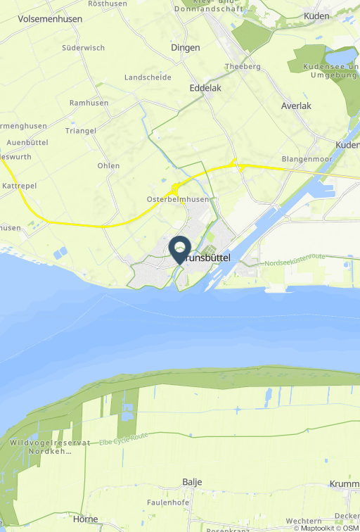 Dort, wo heute die Elbe fließt, lag einst Alt-Brunsbüttel. Seit Jahrhunderten sind die schweren Deichbrüche im Bereich Brunsbüttels eine Folge der Verlagerung der Elbstromrinne in Richtung Norden auf Brunsbüttel zu.