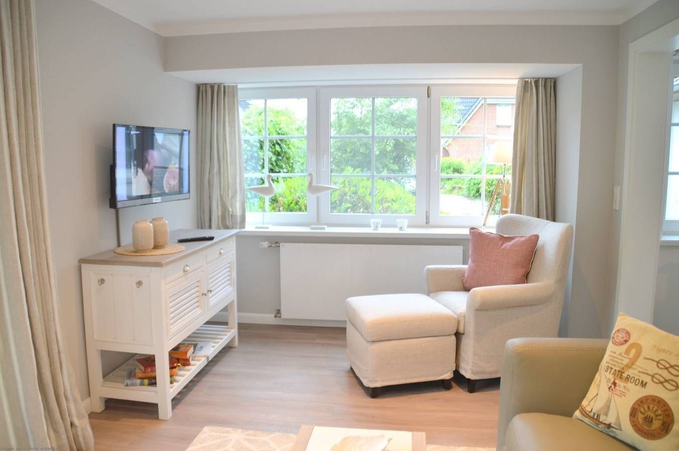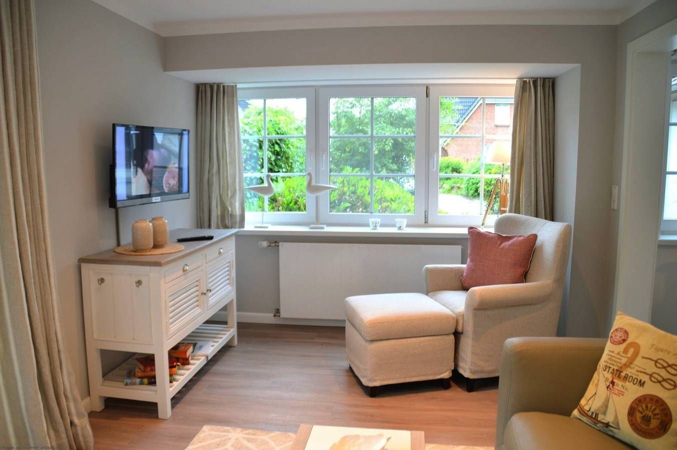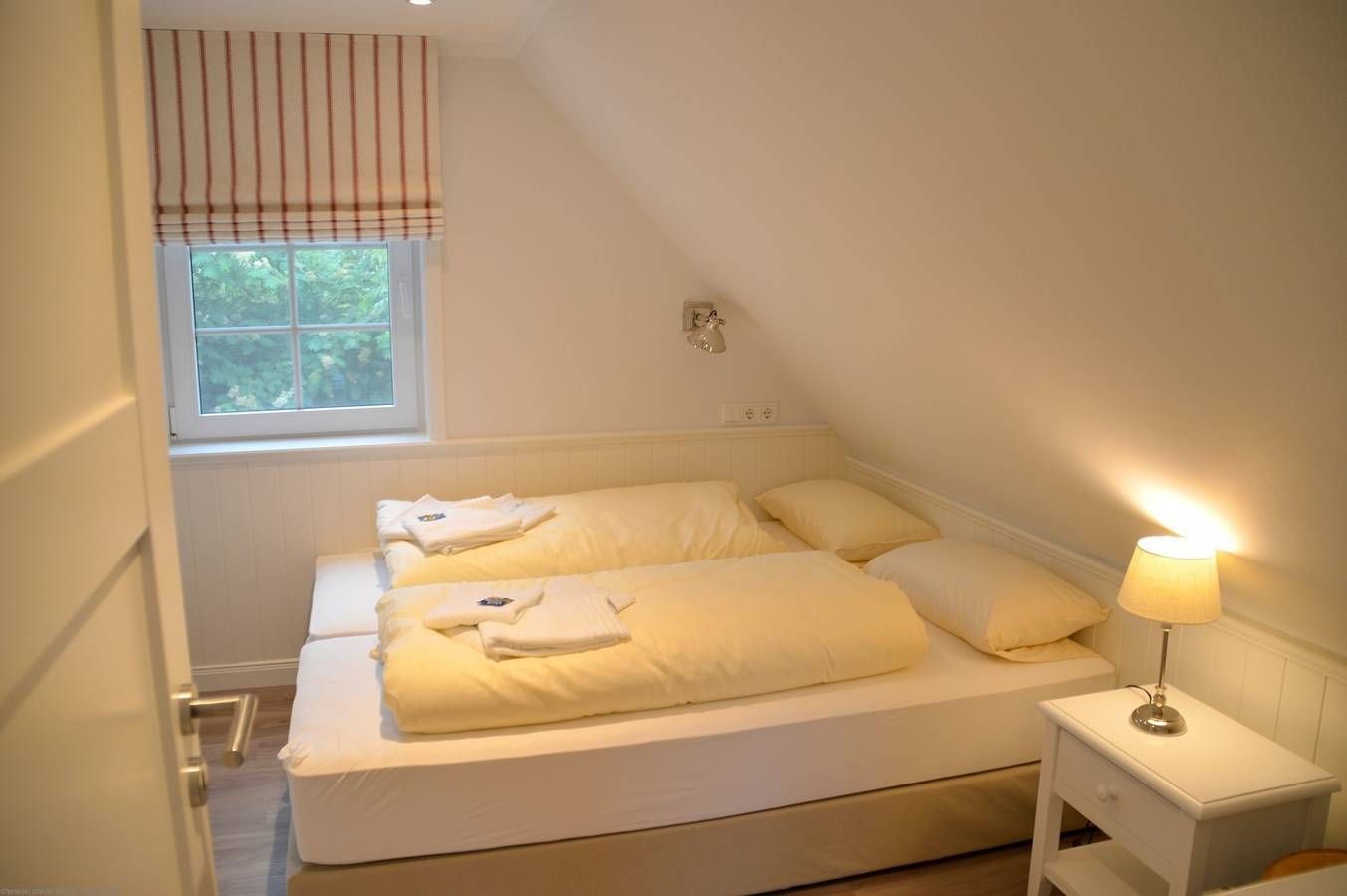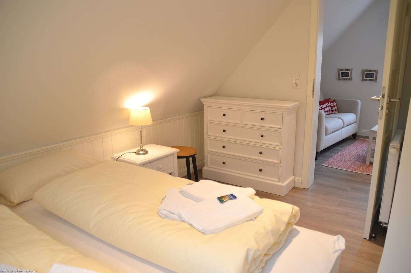 Das Ferienhaus liegt sehr ruhig - dennoch nicht einsam - in einem verkehrberuhigten Bereich im Gebiet des Südstrandes in Wyk auf Föhr. Sie haben somit die Gewähr, daß das Ferienhaus in einer idyllischen Wohngegend, umgeben von Grün und Parkanlagen, liegt. Es gibt keinen Durchgangsverkehr! Ca. 1.200m entfernt liegt der Badestrand mit Promenade. Den Strand und die Wyker Innenstadt können Sie zu Fuß und mit dem Fahrrad schnell erreichen. Erdgeschoss Wohnzimmer mit Sitzgruppe Küche mit Backofen, Geschirrspüler, Mikrowelle, Wasserkocher, Kaffeemaschiene Esszimmer Duschbad 2 Terassen (Süd- und Nordterasse) Farbferseher Dachgeschoss Wohnzimmer mit Sitzgruppe und TV Schlafzimmer mit Doppelbett Schlafzimmer mit Einzelbetten Kinderbett möglich Allgemeines Bettwäsche und Handtücher nach Bedarf Waschmaschine und Trockner im Haus (kostenpflichtig) PKW Stellplatz am Haus WLan verfügbar