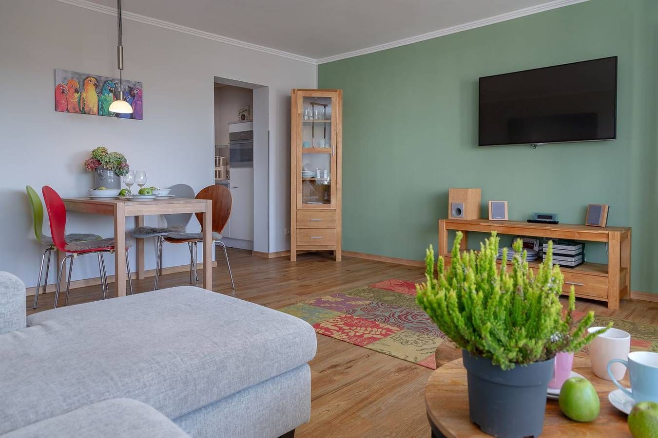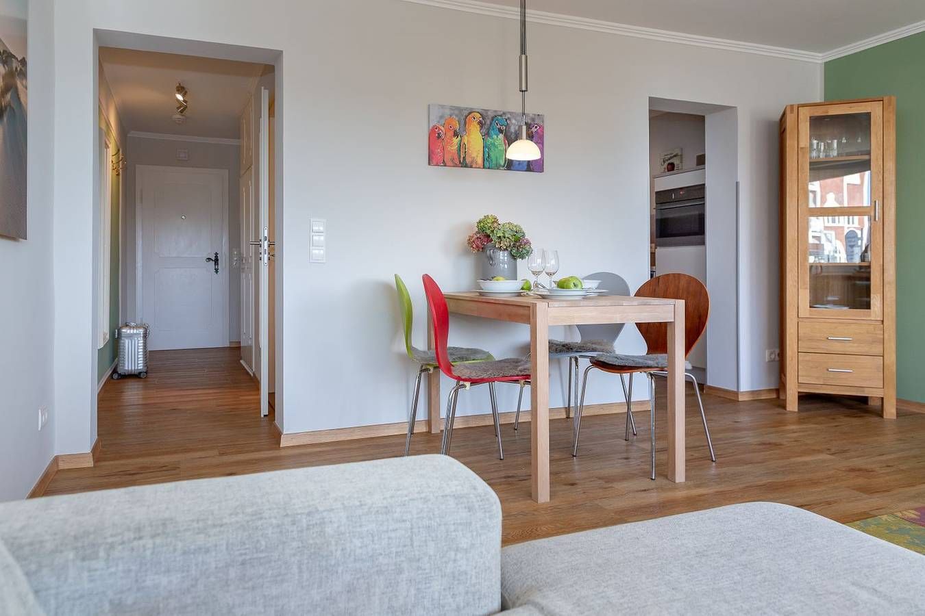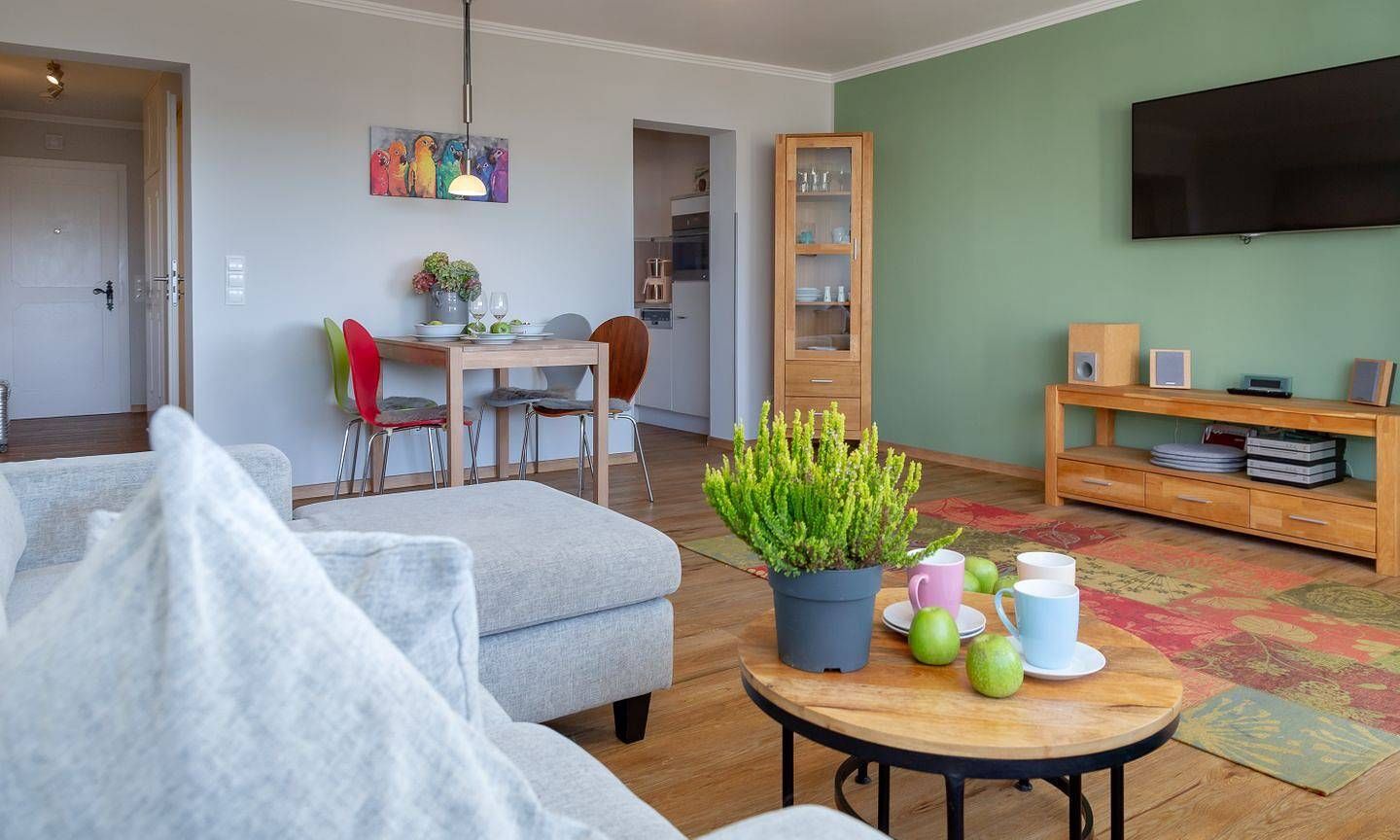 Herzlich willkommen in unserer modernen 2-Zimmerwohnung in der Johann-Möller-Straße im Haus Brandenburg! Diese helle und stilvolle Wohnung bietet Ihnen die perfekte Kombination aus Strandnähe, einem sonnigen Balkon und der Lebendigkeit der Stadt direkt vor Ihrer Tür. Die Wohnung besticht durch ihre exzellente Raumaufteilung mit einem großzügigen Wohnbereich, der mit modernen Möbeln, einer Essecke und einem Smart TV ausgestattet ist. Der separate Schlafbereich verfügt sogar über einen eigenen TV für entspannte Abende. Genießen Sie die besten Seiten des Strandlebens mit der idealen Lage gegenüber dem Surf Strand im Abschnitt Brandenburg. In der schicken Küchenecke mit Backofen, Wasserkocher, Kaffeemaschine und 2er Ceranfeld finden Sie alles, um Ihre Lieblingsmahlzeiten zuzubereiten. Das moderne Duschbad trägt zu Ihrem Komfort bei, und der Designboden in Dielenoptik verleiht der Wohnung eine besondere Atmosphäre. Ein sonniger Balkon lädt zum Verweilen ein, während die City direkt vor Ihrer Tür darauf wartet, von Ihnen entdeckt zu werden. Selbstverständlich bieten wir Ihnen kostenlosen WLAN-Zugang, damit Sie stets verbunden bleiben. Das Haus Brandenburg verfügt über Annehmlichkeiten wie einen Fahrstuhl, eine Waschküche und eine Fahrradabstellmöglichkeit im Innenhof. Zur Wohnung gehört außerdem ein fester PKW Außenstellplatz direkt am Haus.