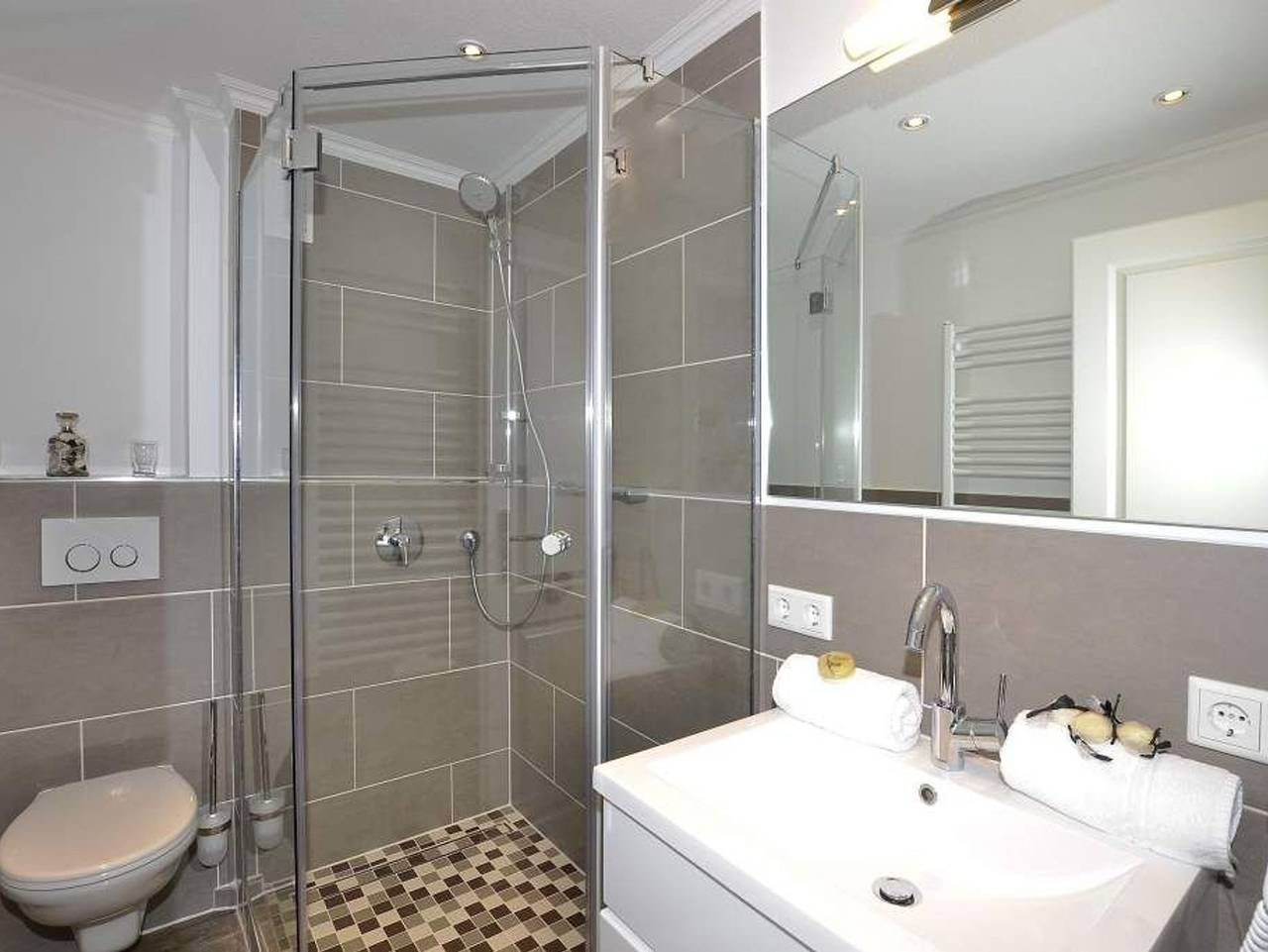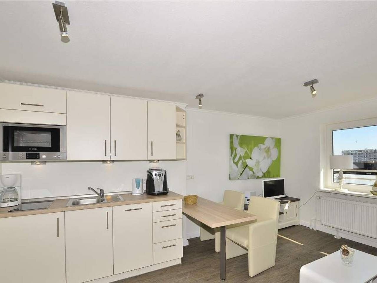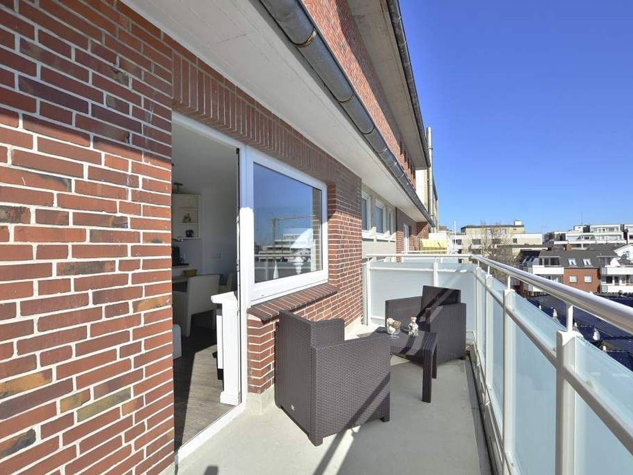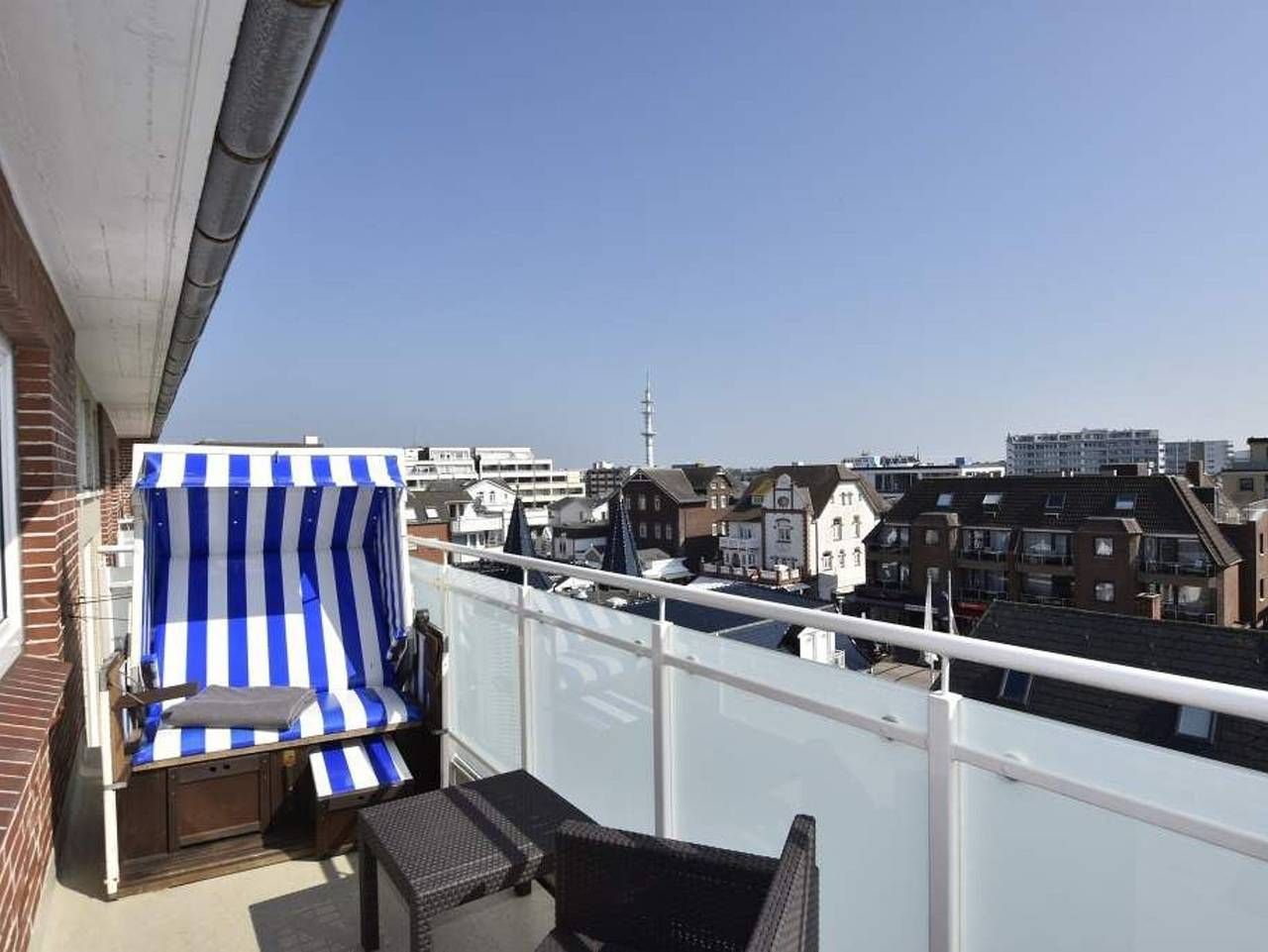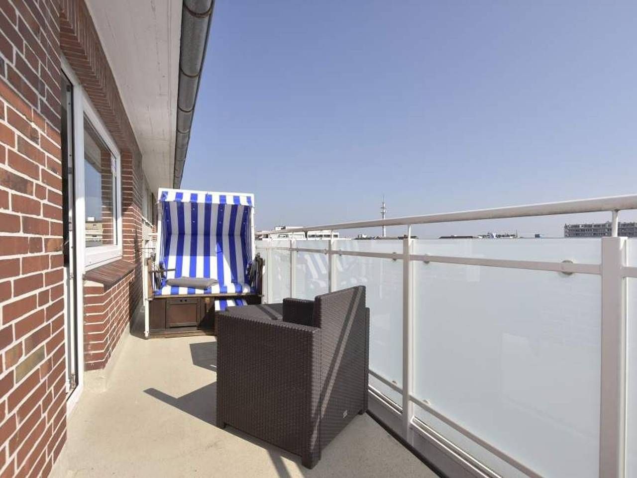 Geschmackvoll, modernen, im Strandhausstil! Gemütliche, moderne 1-Zimmer-Nichtraucher-Ferienwohnung mit abgeteiltem Schlafbereich, ca. 35 qm, 4. Etage zur Südostseite mit extra großem Balkon. Genießen Sie Ihr Frühstück in der Morgensonne auf dem Balkon in den neuen Lounge Möbeln oder die Nachmittagsstunden im vorhandenen Strandkorb. Die für[nbsp][nbsp]2 Personen Wohnung mit abgeteilten Schlafbereich lädt zu einem unvergesslichen Urlaub ein. In die Friedrichstraße sind es keine 40 Meter und zum Strandübergang sind es ca. 100 m. Das Freizeitbad Sylter Welle ist nur wenige Schritte entfernt. Durch die Eingangstür gelangt man in das kombinierte Wohn-/Schlafzimmer und in das behindertenfreundliche Duschbad/WC. Der Wohn-/Schlafraum besteht aus einem Wohnzimmer und einem abgeteilten Schlafbereich mit einem modernen Boxspringbett (180x200 cm), einer Sitzgarnitur (2-Sitzer-Sofa und Hocker), einem Flachbild-TV, Radio/CD, iphone/iPod Schnittstelle. Die offene Küchenzeile hat einen Geschirrspüler, Mikrowelle, Herd, Espressovollautomat und eine Ess-Theke. Kaffeemaschine, Wasserkocher und Toaster gehören zur Grundausstattung. Das neue Duschbad hat einen Waschtisch, Handtuchtrockner, eine Dusche mit extraflachem Einstieg, WC und Föhn. Im Haus befinden sich Waschmaschine und Trockner, die gegen Gebühr genutzt werden können sowie ein kostenloser, offener Hotspot, der für alle Appartements zugänglich ist (ohne Gewähr). Sie fahren mit dem Fahrstuhl bis vor die Eingangstür des Appartements. Haustiere sind hier nicht gestattet.