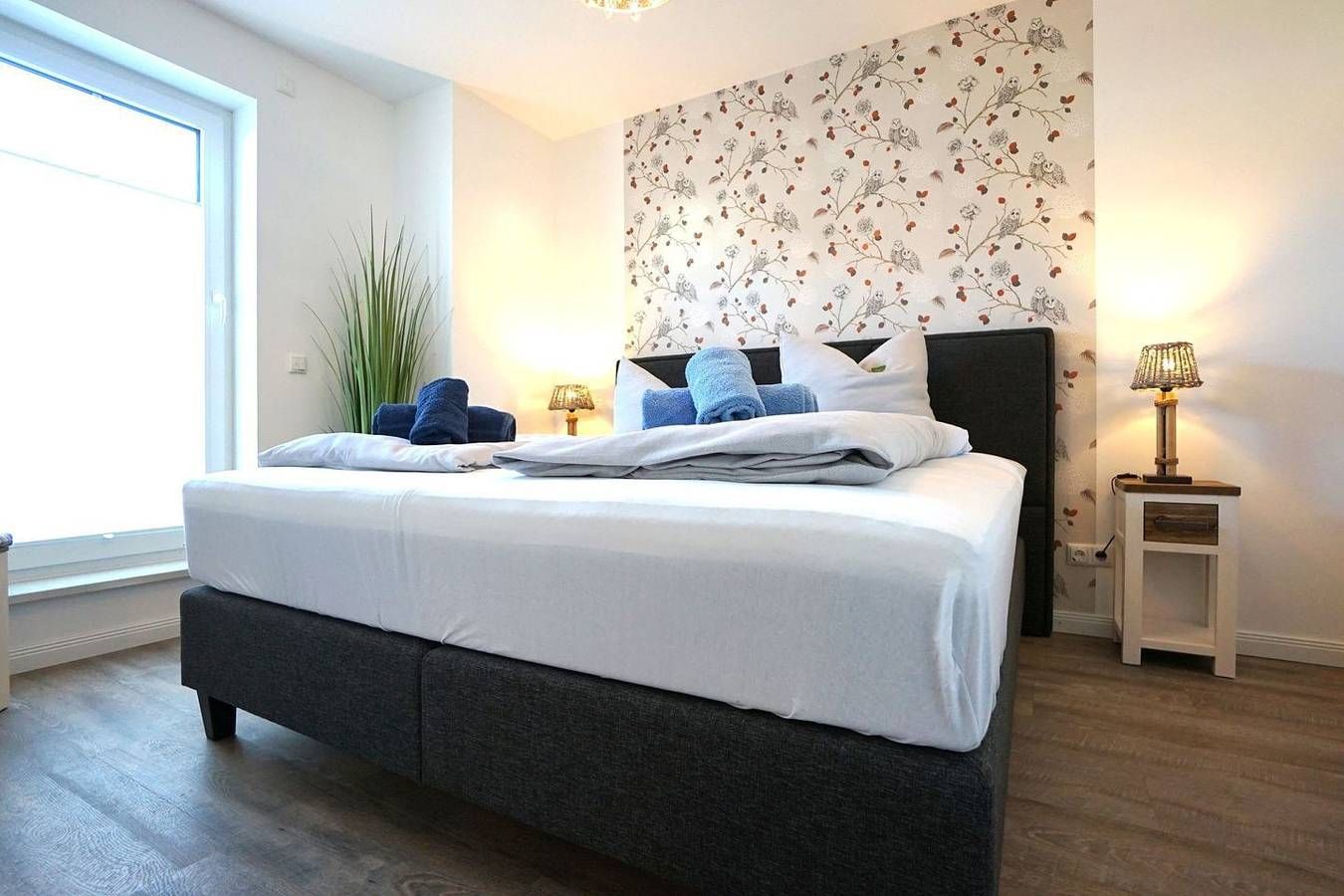 Innovativ, exklusiv, prominent und außergewöhnlich - so dürfen Sie sich Ihren Urlaub in unserem Bernstein Suite & Breakfast Apartment 01 vorstellen. Gebaut in nachhaltiger Weise mit Komfort auf höchster Ausstattungsebene in zentraler Lage. Zum Komfort zählen der Fahrstuhl, die Tiefgarage und ein Abstellraum für Fahrräder mit Steckdosen. Wir bieten TOP-SERVICE: Eine Zwischenreinigung und ein erstklassiges Frühstücksbüffet sind auf Anfrage zubuchbar. Wir freuen uns, Ihnen hier das Bernstein Suite & Breakfast Apartment 01, eine tolle Zwei-Zimmer-Wohnung, vorstellen zu dürfen: Es erwarten Sie eine Fußbodenheizung, dreifach verglaste Fenster mit elektrischen Außenjalousien, eine moderne Lüftungsanlage, WLAN, ein Bluetooth-Radio, ein Fahrstuhl von der Tiefgarage aus, hochwertige Designer-Möbel, ein Schlafzimmer mit Boxspringbett, Smart-TV im Wohn- und Schlafzimmer, USB-Steckdosen, eine moderne vollausgestattete Küche mit Geschirrspüler und ein großes Badezimmer mit bodentiefer Dusche, Handtuchheizkörper und Föhn. Auch Ihr Haustier ist hier herzlich Willkommen. Die gesamte Wohnung ist ein rauchfreier Bereich. Kinderreisebetten und Hochstühle sind nach Verfügbarkeit und auf Anfrage erhältlich. Es kann der sich im Haus gegenüber (Kattegat) befindende Fitness- und Saunabereich (gegen eine geringe Gebühr) genutzt werden.