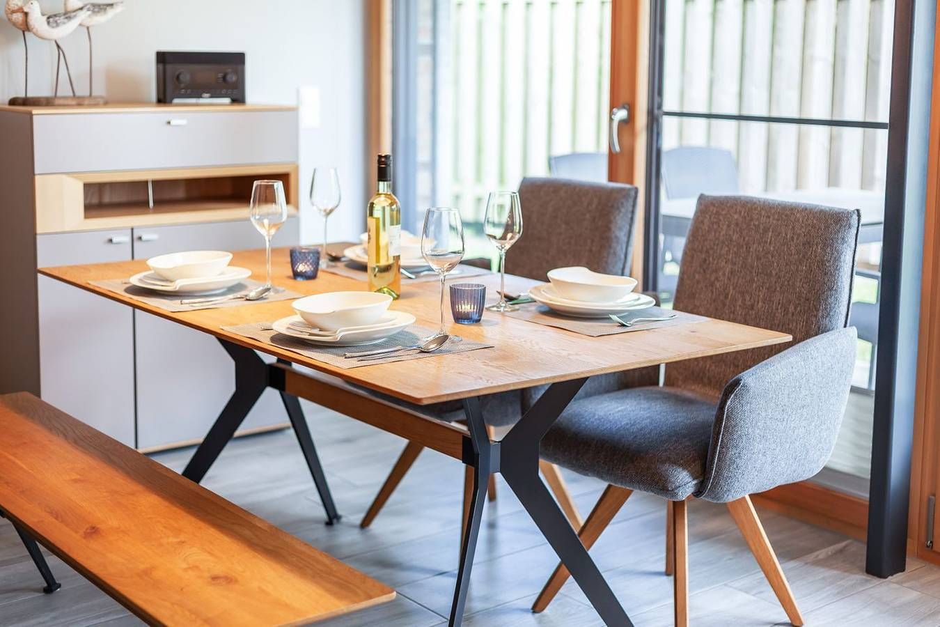 Traumferienwohnung Antons Strandnest im Haus "Best Büsum"! Treten Sie in den Architekten-Neubau ein und fühlen Sie sich mit der ganzen Familie wohl. Im lichtdurchfluteten Appartement "Antons Strandnest" erwartet Sie eine vollständig ausgestattete Küchenzeile und ein offenes Wohnzimmer mit gemütlicher Sofaecke, Essgruppe und Flatscreen-TV. Von hier aus erreichen Sie die möblierte Terrasse und das Hauptschlafzimmer mit großem Kleiderschrank, einem kleinen Schreibtisch und wandhängendem Flatscreen-TV. Auch das zweite Schlafzimmer büßt nicht an Gemütlichkeit ein. Es ist ebenfalls mit Flatscreen-TV ausgestattet. In den großen Boxspringdoppelbetten werden Sie himmlischen Schlaf finden. Extra große Fensterfronten lassen viel Tageslicht in die behinderten- und familienfreundliche Wohnung. In der Zeit von Anfang Mai bis Ende September 2025 (außer während "Legends at the Sea") steht Ihnen ein Strandkorb am Hauptstrand in der Nähe von Watt’n Hus kostenfrei zur Verfügung. Wir freuen uns auf Ihre Anfrage. "Antons Strandnest" ist ein perfekter Ort einen entspannten Urlaub zu haben und bietet Platz für vier Personen. Wohnzimmer Streamingfähiger Flatscreen-TV für alle gängigen Formate (Netflix, Google Play, Prime Video u. v. m.), Couch mit Récamiere, Couchtisch, Sideboard, DAB+ Radio mit Bluetooth-Funktion, Esstisch mit zwei Stühlen und Sitzbank, Zugang zur Terrasse Offene Küche Backofen, Waschspülbecken, Geschirrspüler, Induktionsherd mit integriertem Abluftsystem, Kühlschrank mit Gefrierfach, Kaffeemaschine, Kaffeepadmaschine, Toaster, Wasserkocher, Eierkocher Schlafzimmer 1 Boxspringdoppelbett mit durchgehender Topper-Matratze (1,80 x 2,00 m), Nachttische, Nachttischlampen, Kleiderschrank, streamingfähiger Flatscreen-TV für alle gängigen Formate (Netflix, Google Play, Prime Video u. v. m.), Schreibtisch mit Stuhl, elektrische Außenrollläden, Plissees, Insektenschutz Schlafzimmer 2 Boxspringdoppelbett mit durchgehender Topper-Matratze (1,80 x 2,00 m), Nachttische, Nachtischlampen, Kommode, Flatscreen-TV, elektrische Außenrollläden, Plissees, Insektenschutz Bad Dusche, Waschbecken mit Unterschrank und beleuchtetem Spiegelschrank, WC, Handtuchheizkörper, Föhn, Kosmetikspiegel, Abluft, Radio, Duschhocker Sonstiges W-LAN (Bandbreite Internet 250MBit/s), privater Parkplatz inkl. E-Ladestation für E-Autos (kostenpflichtig), Fußbodenheizung in allen Räumen, Garderobe mit Sitzbank, Ganzkörperspiegel, Gegensprechanlage, Briefkasten (z. B. für Zustellung der Zeitung), Waschmaschine, Bügeleisen, Bügelbrett, Wäscheständer, behindertenfreundlich, Kinderhochstuhl inklusive, Kinderbettgestell (0,60 x 1,20 m) inklusive, Wäsche optional dazu buchbar, Rauchmelder Für eine kurzfristige Anfrage zu dieser Unterkunft melden Sie sich bitte telefonisch bei uns.