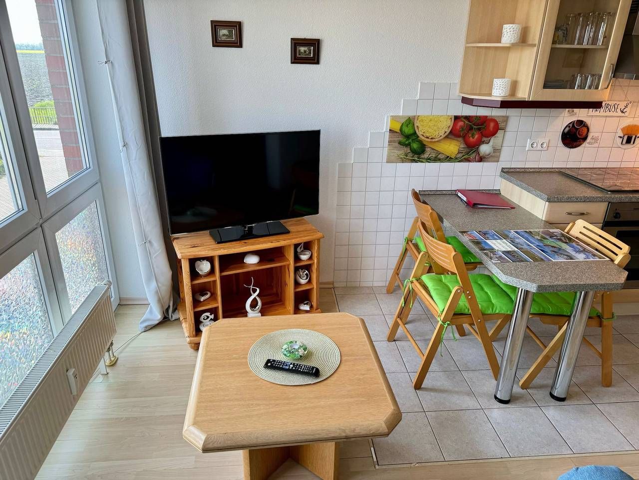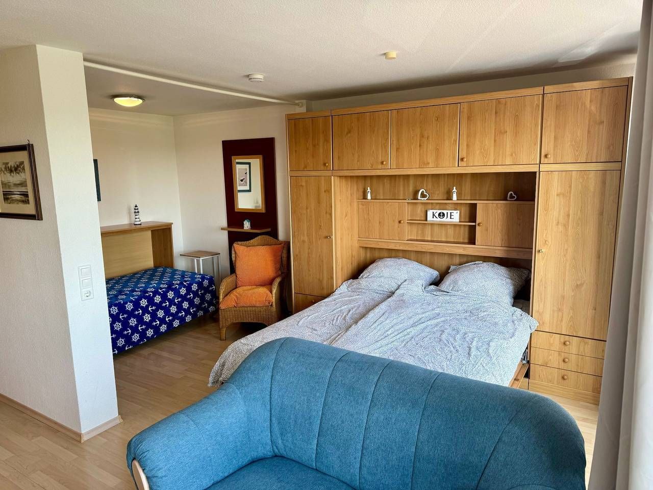Das Apartment Seeblick befindet sich im Haus Klaar Kimming, im Kurzentrum von Nordstrand, und wurde 2023 renoviert. Es bietet einen gemütlichen Wohn- und Schlafbereich mit einem Doppelbett (160 x 200 cm) sowie einem Schlafsofa (90 x 200 cm). Die voll ausgestattete Küchenzeile verfügt über einen Kühlschrank, einen Backofen, eine Mikrowelle, einen Toaster, eine Filterkaffeemaschine und einen Wasserkocher. Eine kleine Essecke, ein Sofa, W-Lan und ein Flachbild-TV, ergänzen die Ausstattung. Handtücher und Bettwäsche können auf Wunsch hinzugebucht werden. Das Apartment befindet sich im ersten Stock des Hauses und ist nur über eine Treppe erreichbar. Das Apartment ist zudem allergikerfreundlich, da keine Haustiere erlaubt sind, es keine Teppiche gibt und die Bettwäsche antiallergen ist.