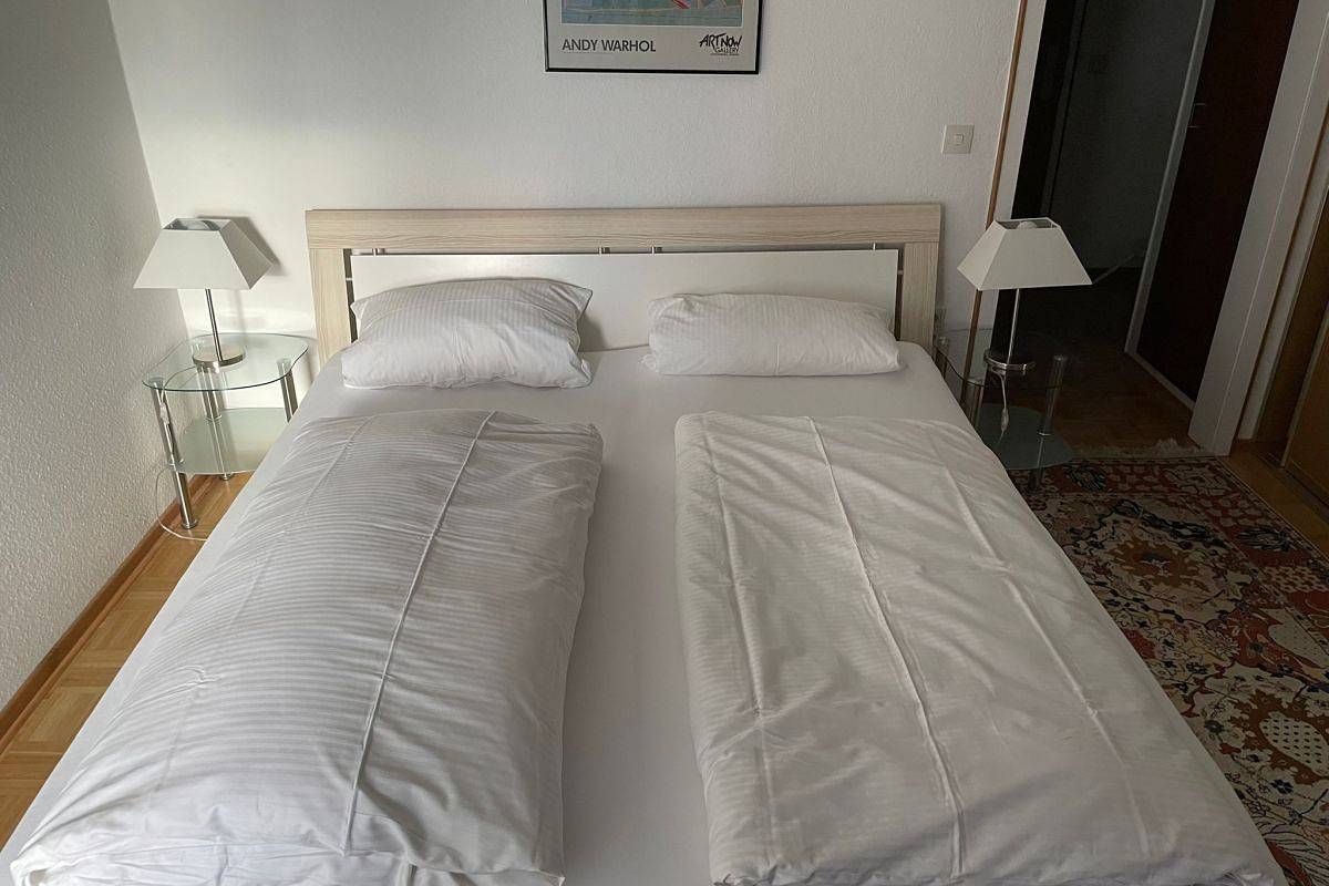 Informationen zum Gastgeber Die Ferienwohnung Nordseeblick befindet sich im Apartmenthaus "Haus der Westküste" mit freiem Blick auf die Nordsee in Husum OT Schobüll. Die nächste Einkaufsmöglichkeit befindet sich direkt im Ort ca. 300 m von der Ferienwohnung entfernt. Die Husumer Innenstadt mit Marktplatz, Hafen, Bahnhof und vielfältigen Einkaufsmöglichkeiten ist ca. 6 km entfernt. Die Badestelle Dockkoog erreiche Sie nach ca. 8 km. Die Messe Husum & Congress erreichen Sie nach ca. 15 Fahrminuten. Fahrradabstellplatz ist vorhanden. PKW-Stellplätze sind vorhanden gegen eine Gebühr von 8,00 EUR pro Auto/ pro Nacht. 1 Hund ist gegen eine Gebühr von 20,00 EUR pro Nacht erlaubt. Weitere Angaben: DTV-Klassifizierung nicht teilgenommen. Konditionen/Extras Die Schlüsselübergabe erfolgt im Hotel Osterkrug (Osterende 52 - 58 in Husum) in der Zeit von 15:00 - 19:00 Uhr. Die Restzahlung leisten Sie bitte bis 7 Tage vor Anreise auf das Vermieterkonto. Anreisebeschreibung Die Ferienwohnung Nordseeblick erreichen Sie mit dem HusumBus - Linie 6 ab dem zentralen Busbahnhof (ZOB). Die nächste Bushaltestelle "Nordseestraße" ist ca. 180 m von der Ferienwohnung entfernt. Beschreibung. Die Ferienwohnung liegt in der 1. Etage und ist ca. 70 m2 groß. Sie ist aufgeteilt in einen Wohnraum, ein Schlafzimmer, eine Küche und ein Badezimmer. Im Wohnraum befindet sich eine Sitzgruppe, ein kleiner Esstisch, ein LCD-Flachbildfernseher und eine Stereoanlage. In der kleinen Küche befindet sich eine Einbauküche mit einem 2-Plattenherd und Backofen, Kühlschrank, Mikrowelle, Wasserkocher, Kaffeemaschine und Toaster. Das Schlafzimmer ist mit einem Doppelbett und einem Kleiderschrank ausgestattet. Sowohl das Schlafzimmer als auch das Wohnzimmer haben einen eigenen Balkon mit Blick auf die Nordsee. Das Badezimmer ist mit einer Dusche und einem WC ausgestattet. Weitere Angaben: Bettwäsche, Handtücher und Endreinigung sind im Preis inklusive, Zustellbett im Wohnzimmer (Schrankbett), Nichtraucherobjekt, kostenfreies Internet, PKW-Stellplatz.