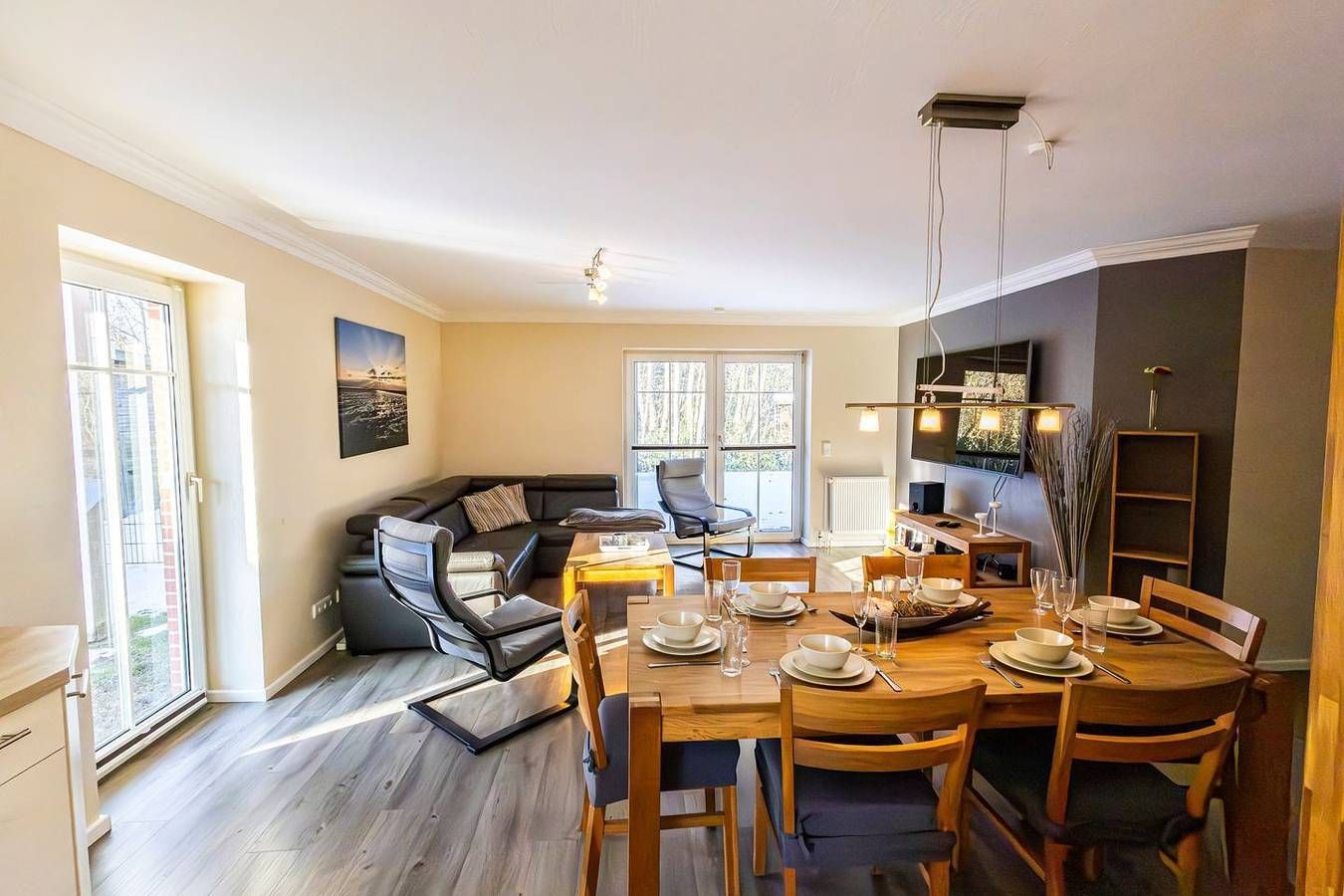 Das geräumige Appartement befindet sich in ruhiger Lage im Ortsteil Dorf. Von hier aus gelangen Sie fußläufig in ca. 15 Minuten in den historischen Ortskern mit vielen Einkaufsmöglichkeiten und Restaurants. Ebenso schnell erreichen Sie den Deich und die Dünenlandschaft des Ortes für einen ausgedehnten Spaziergang. Der Westküstenpark mit Robbarium befindet sich ebenfalls ganz in der Nähe. Das Appartement "Dorfluft" befindet sich im Erdgeschoss , die gemütliche Einrichtung sowie die liebevolle Farb-und Wandgestaltung sorgt für eine heimelige Atmosphäre, in der Sie sich wie zu Hause fühlen können. Die ca. 100 m² Wohnfläche teilt sich wie folgt auf: Eingangsbereich, Wohnraum mit offener Küche und Zugang zur Terrasse und Essbereich, ein Duschbad/ WC, ein Hauswirtschaftsraum, ein Schlafzimmer mit Doppelbett (180 x 200 cm), ein Schlafzimmer mit Doppelbett (160 x 200 cm), ein Schlafzimmer mit Doppelbett (140 x 200 cm). Auf der Terrasse befinden sich in der Saison Terrassenmöbel, die zum gemütlichen Verweilen einladen. Der Garten ist eingezäunt, gerne dürfen Sie Ihren Hund mitbringen. 1 PKW-Stellplatz steht Ihnen zur Verfügung.