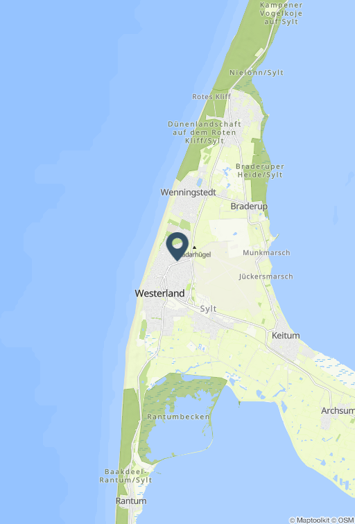 App. Leyla OG Lage: Das Appartement befindet sich im Obergeschoss einer modernen Doppelhaushälfte. Zum Strand sind es ca. 600m und auch die Innenstadt kann man fußläufig erreichen. Größe: 2-Zimmer-Appartement ca. 45 m² für 2 Erwachsene und ein Kind. Ausstattung: Die helle und freundliche Ferienwohnung hat ein schönes Wohnzimmer mit Zugang zum Balkon. Zur Austattung gehören ein Essplatz und ein Schlafsofa. Ein Flat-TV und eine Stereoanlage tragen zur Unterhaltung bei. Die seperate Küche mit Backofen befindet sich nebenan. Im Schlafzimmer ist das Doppelbett unter Dachschräge, außerdem gibt es im Schlafzimmer einen Einbauschrank mit viel Platz. Das Duschbad hat ein Fenster. Haustiere sind nicht gestattet. Bitte beachten Sie die Regelung zur gesonderten Kurtaxe der jeweiligen Gemeinde auf Sylt. Diese wird gesondert berechnet und ist spätestens bei Anreise fällig App. Leyla OG Lage: Diese großzügige Wohnung befindet sich im Erdgeschoss/Untergeschoss einer modernen Doppelhaushälfte. Das Haus steht in zweiter Reihe in Alt-Westerland in ruhiger Lage ca. 10 Gehminuten vom Strand und der Innenstadt entfernt.