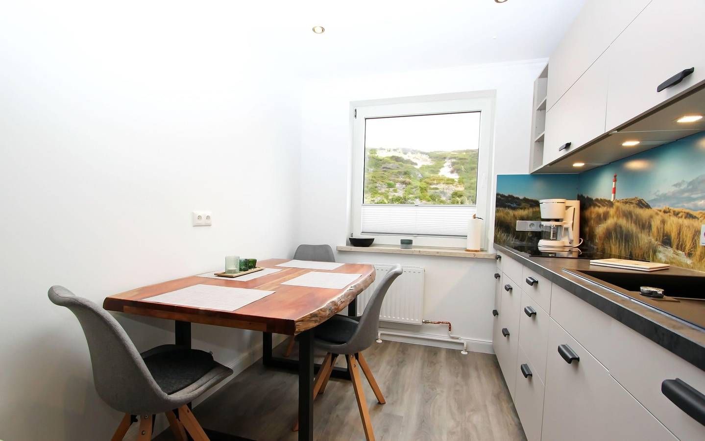 Das im Mai 2022 kernsanierte 2 Zimmer Appartement bietet auf seinen knapp 50 qm, im Hochparterre, Platz für bis zu 4 Personen. Wohnzimmer mit zwei Couchen (eine davon mit Schlaffunktion), Couchtisch, Vitrinen Schrank, Bücherregal, großer Smart-OLED-TV, Radio und kostenloses WLAN. Separates Schlafzimmer mit Doppelbett (1,80m x 2,00m), Nachtschränke, Nachttischlampen, großer Kleiderschrank, der ausreichend Stauraum bietet, Zugang zum Süd-/Westbalkon mit Balkonmöbel. Flur mit Garderoben- u. Schuhschrank. Separate Einbauküche mit Induktionsherd, hoher Backofen, Mikrowelle, Geschirrspüler, Kühl- und Gefrierschrank sowie ein Esstisch mit 4 Stühlen. Duschbad/WC mit Regendusche und Handtuchheizung. Zum Appartement gehört der PKW-Stellplatz Nr. 87. Das Appartement Meereszeit erwartet Sie in Hörnum, ganz im Süden Sylts. Hier genießen Sie nicht nur die Nähe zum Ortskern mit seinen Einkaufsmöglichkeiten, sondern auch die fußläufige Erreichbarkeit von gleich zwei Stränden. Während der Brandungsstrand für Badespaß sorgt, geht es auf der Wattseite etwas ruhiger zu - Hörnum hält für jeden Urlaubstyp etwas bereit. In der Umgebung der Ferienwohnung gibt es nicht nur Restaurants, sondern auch eine Bäckerei. Auch der Golfplatz befindet sich ganz in der Nähe, so dass einem gelungenen Urlaub nichts im Wege steht. Nichtraucherwohnung! Die Tierhaltung ist auf Anfrage und gegen Aufpreis gestattet. Änderungen der Ausstattung bleibt vorbehalten! Die Anlage verfügt über Gemeinschaftswaschräume mit Münzwaschmaschine und -trockner sowie zahlreiche Fahrradabstellmöglichkeiten (außen). Ihnen steht ein kostenloser WLAN-Zugang zur Verfügung. Wir übernehmen keine Gewährleistung, dass dieses störungs- u. unterbrechungsfrei genutzt werden kann. Zudem können keine Übertragungsraten u. örtliche Abdeckung zugesichert werden. Bitte beachten Sie, dass eine eventuell anfallende Kurabgabe nicht im Gesamtpreis enthalten ist. Diese ist vor Ort zu leisten.