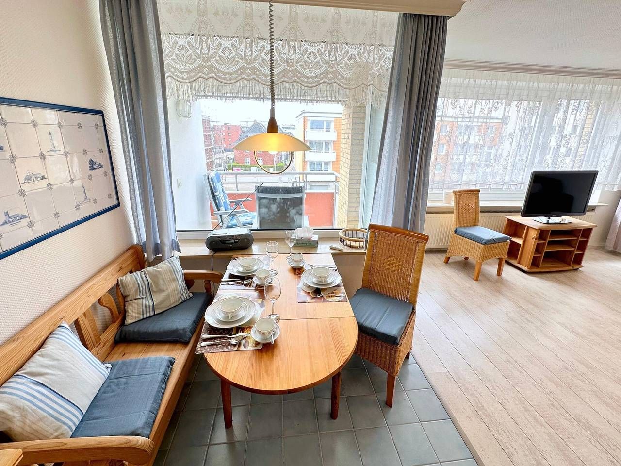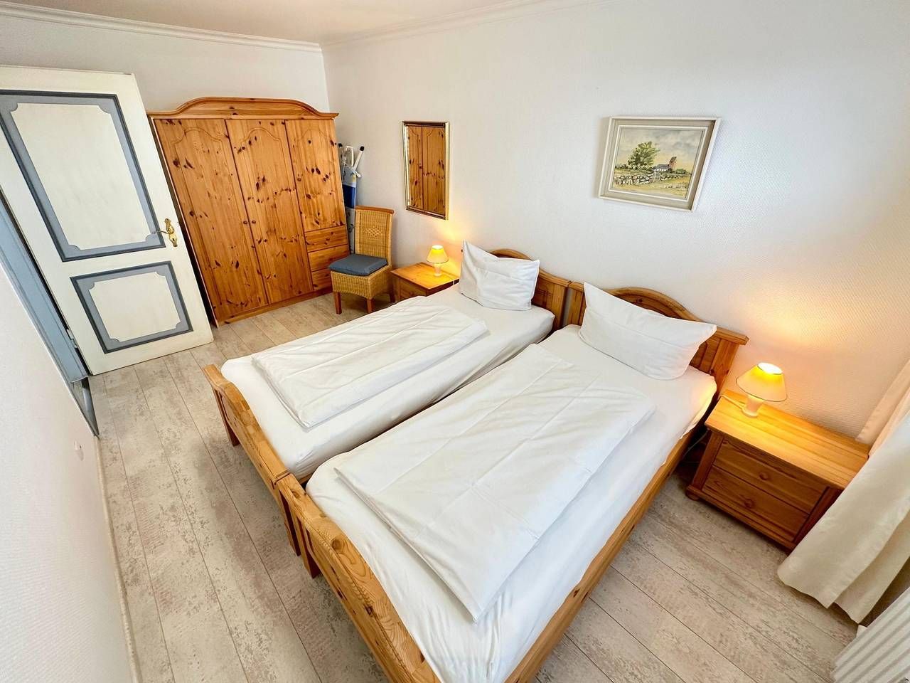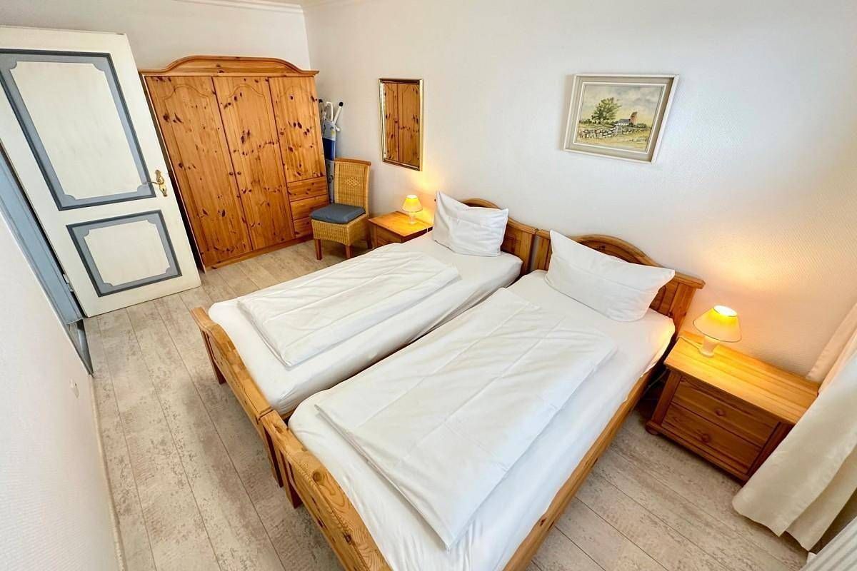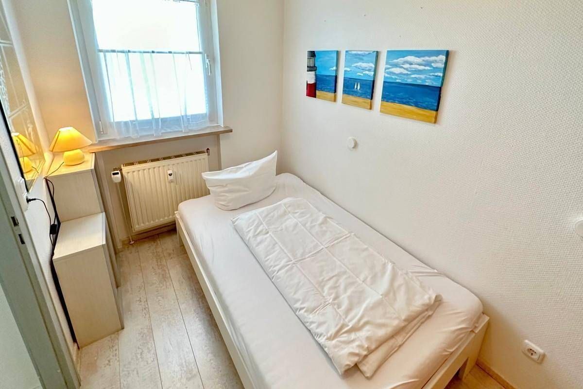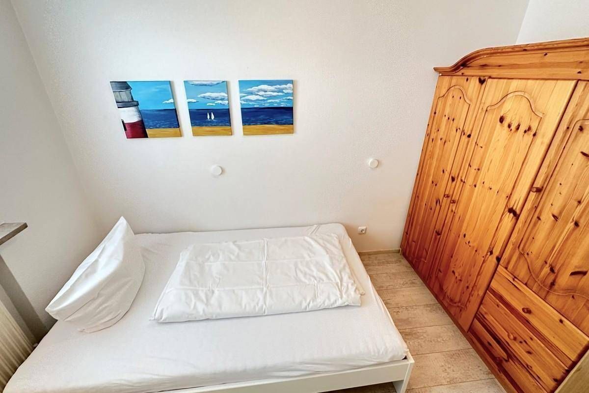 Willkommen in Ihrer sonnigen Ferienwohnung – Ihr Urlaubsdomizil auf der Südseite! Gemütlichkeit trifft Komfort: Von einem praktischen Vorflur mit Garderobe gelangen Sie in den hellen Wohnbereich, das gemütliche Schlafzimmer und das moderne Duschbad mit WC. Im Wohnzimmer erwartet Sie eine einladende Sitzecke mit einer großen Couch, ein Essplatz für gesellige Stunden und Kabel-TV für Ihre Unterhaltung. Die voll ausgestattete Küche lässt keine Wünsche offen: Sie finden hier alles, was Sie benötigen, um auch im Urlaub köstliche Mahlzeiten zu zaubern – ein Herd mit Ceranfeld (4 Kochfelder), Backofen, Geschirrspüler, Kühlschrank mit 3-Sterne-Gefrierfach, sowie Kaffeemaschine (Senseo-Pad-Maschine), Wasserkocher und Toaster. Erholsame Nächte: Das Hauptschlafzimmer bietet Ihnen ein bequemes Doppelbett mit zwei Einzelmatratzen (je 100 x 200 cm), während im zweiten Schlafzimmer ein weiteres Bett (120 x 200 cm) für ruhige Nächte sorgt – perfekt für eine kleine Familie oder Freunde, die gemeinsam reisen. Weitere Annehmlichkeiten: Das moderne Badezimmer ist mit einer Dusche, WC und einem Waschtisch ausgestattet – ideal, um frisch und entspannt in den Tag zu starten. Ein eigener PKW-Außenstellplatz Nr. 86 direkt am Haus steht Ihnen zur Verfügung, sodass Sie sich keine Sorgen um Ihr Auto machen müssen. Für den Komfort unserer Gäste gibt es im Haus ein kostenloses WLAN-Netz (keine Haftung bei Störungen). Im Keller finden Sie zudem eine Waschküche mit Waschmaschine und Trockner, die gegen eine geringe Gebühr genutzt werden können – besonders praktisch für längere Aufenthalte. Diese schöne Ferienwohnung liegt nur wenige Meter vom Strand entfernt und ist somit in nur wenigen Minuten fußläufig zu erreichen. Bitte beachten Sie, dass eine eventuell anfallende Kurabgabe nicht im Gesamtpreis enthalten ist. Diese ist vor Ort zu leisten.