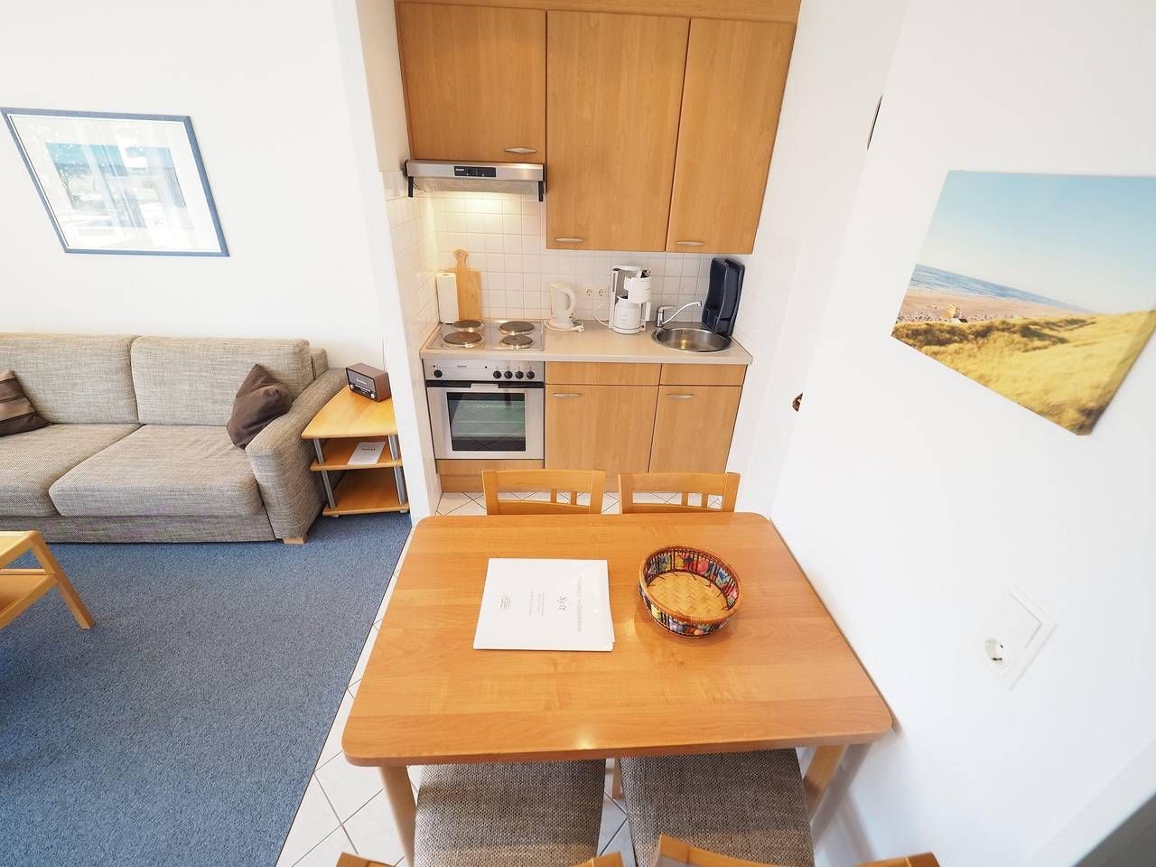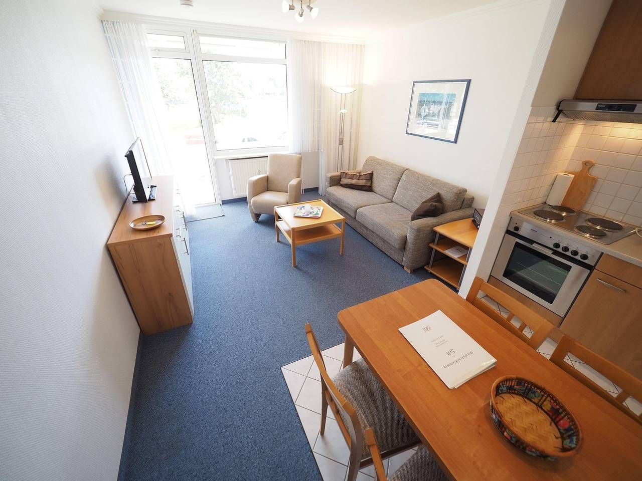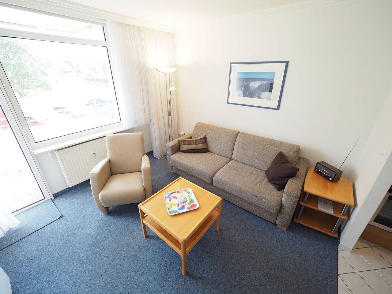 Herzlich Willkommen in Ihrem gemütlichen 2-Zimmer-Appartement im Hochparterre – der perfekte Ort für erholsame Tage an der Nordsee! Auf ca. 35 m² bietet dieses charmante Appartement Platz für 1-4 Personen und überzeugt mit einem sonnigen Südbalkon, der zum Entspannen und Genießen der frischen Meeresluft einlädt. Das helle Wohnzimmer verfügt über eine bequeme Schlafcouch, zwei LED-TVs und ein Radio – ideal für entspannte Stunden nach einem erlebnisreichen Tag. Die offene Küchenzeile ist voll ausgestattet mit einem E-Herd, 4-Plattenkochfeld, Kühlschrank und einer gemütlichen Essecke für gesellige Mahlzeiten. Im Schlafzimmer erwartet Sie ein komfortables Doppelbett (160x200 cm, getrennte Matratzen) sowie ein weiterer LED-TV – perfekt, um sich nach einem langen Tag in Ruhe zurückzuziehen. Das moderne Duschbad mit WC sorgt für zusätzlichen Komfort. Ein eigener PKW-Stellplatz (Nr. 37) steht Ihnen während Ihres Aufenthalts zur Verfügung. Im Haus finden Sie zudem einen praktischen Fahrradabstellraum und eine Waschmaschine, die Sie nach Bedarf nutzen können. Die Wohnung befindet sich in einer ruhigen Seitenstrasse in Westerland. Haustiere sind hier leider nicht erlaubt. Es handelt sich um ein Nichtraucherappartement. Bitte beachten Sie, dass keine Haftung für nicht funktionierendes WLAN übernommen wird und keine Möglichkeit besteht, sich Post nachsenden zu lassen, da keine Briefkastenschlüssel vorhanden sind. Genießen Sie Ihre Auszeit in dieser schönen Ferienwohnung – Ihr perfektes Urlaubsdomizil, um sich zu erholen und die Schönheit der Nordsee zu genießen! Bitte beachten Sie, dass eine eventuell anfallende Kurabgabe nicht im Gesamtpreis enthalten ist. Diese ist vor Ort zu leisten.