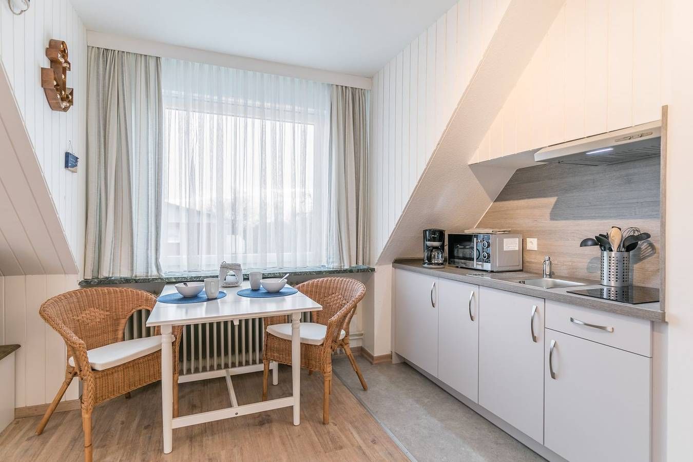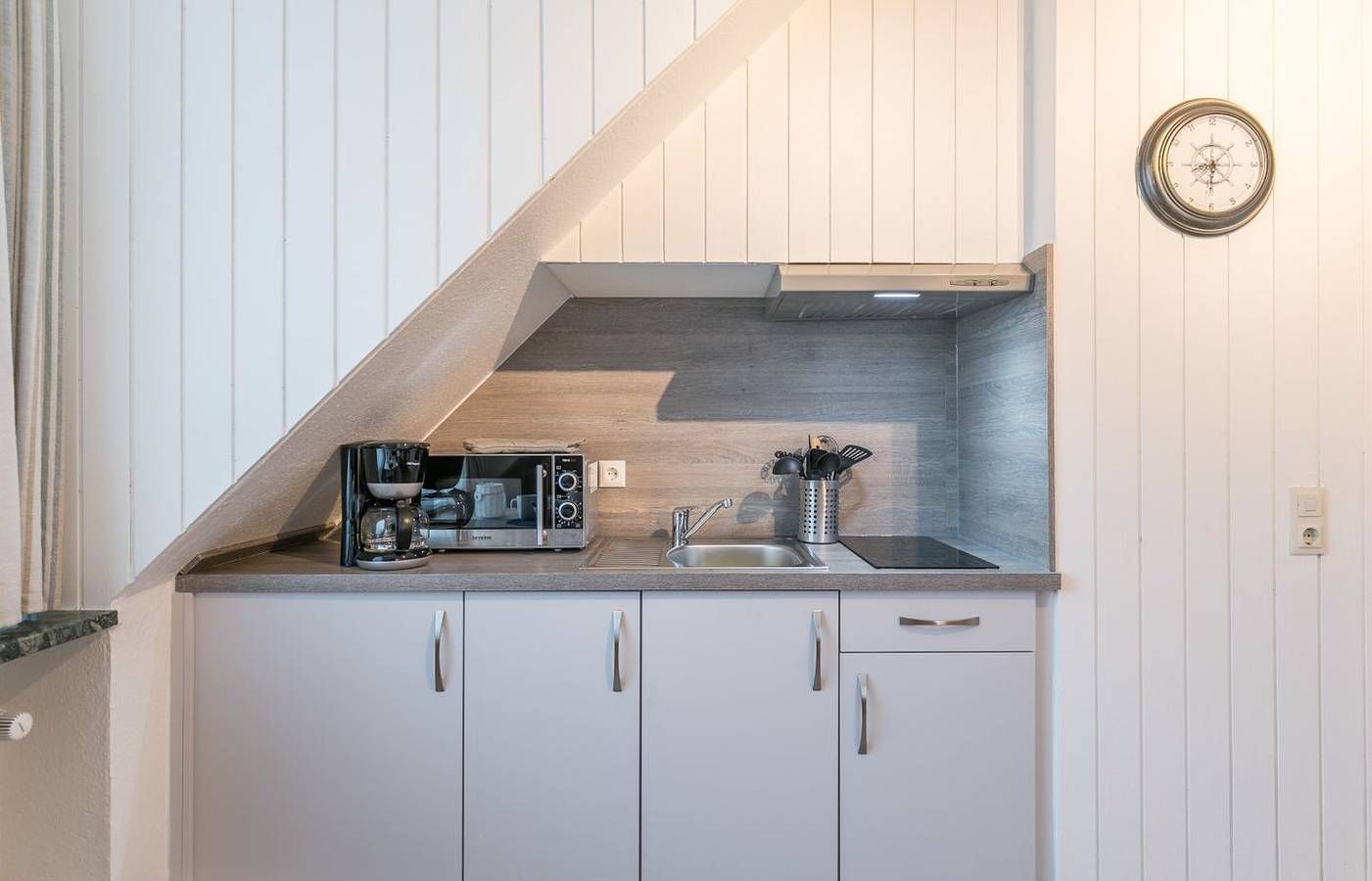 Zentral gelegenes Appartement für zwei Personen mit sehr gutem Preis-Leistungsverhältnis. Durch die Nähe zum Bahnhof ist die Wohnung ideal für Bahnreisende. Die Ferienwohnung mit maritimem Flair. Der gemütliche Wohnraum lädt zum Verweilen ein. Helle Farben und ansprechende Möbel sorgen für ein behagliches Wohnklima. Auf dem großen Flachbildfernseher können Sie gemütlich fernsehen und auf dem Sofa den Abend entspannt ausklingen lassen. Die neue Pantry-Küche ist modern und zweckmäßig eingerichtet. Im kleinen Bad finden Sie alles für die tägliche Hygiene. Im großen Schlafzimmer haben Sie genug Platz, um all Ihr Gepäck abzustellen. Das weiß gestrichene kleine Bad verfügt über ein Fenster zum Lüften. Wir freuen uns auf Sie in der Ferienwohnung „Appartement Annabelle, Wohnung 1” in Büsum! Wohn-Essbereich: Sofa, Flachbild-TV, Sideboard, Fußhocker, Leselampe, Radio, Esstisch mit Stühlen, neue Pantry-Küche, 2-Cerankochfeldplatten, Wasserkocher, Toaster, Kaffeemaschine, Mikrowelle mit Grillfunktion, Plissee Schlafzimmer: Doppelbett, Schrank, Nachttische, Lampen, Stuhl, Spiegel Bad: Dusche, WC, Spiegel, Waschbecken, Fenster Haus & Service: 1 kostenloser Parkplatz, kleine Bibliothek, Flur mit Garderobe, W-LAN (HotSpot), Bettwäsche und Handtücher optional dazu buchbar Individuelle Winter-Angebote auf Anfrage! Für kurzfristige Übernachtungen melden Sie sich bitte telefonisch bei uns.