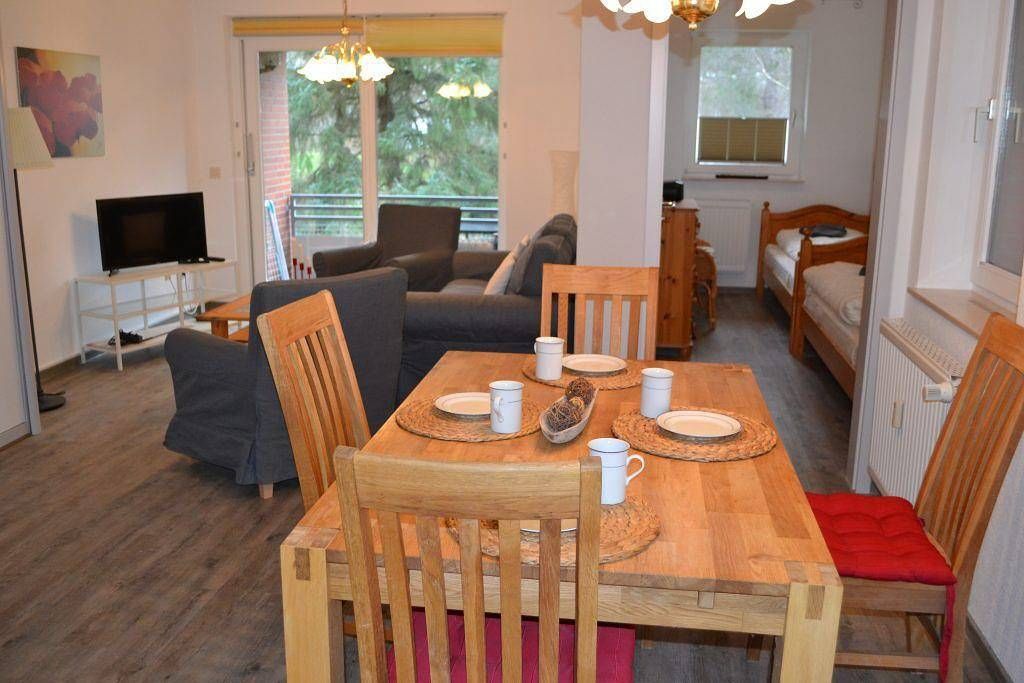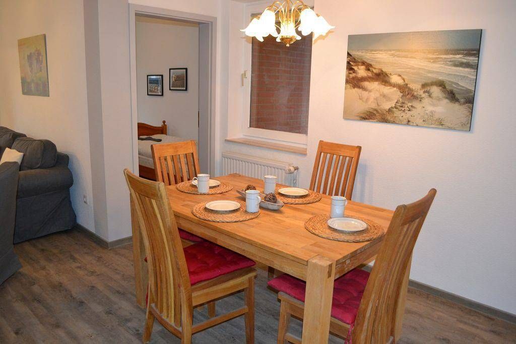 Appartement, OG, ca. 48 qm, 4 Personen Wohn-Schlafraum mit zwei Wandklappbetten, Sofagarnitur, Flachbild-TV, Essbereich Kochnische mit Cerankochfeld und Geschirrspülmaschine Schlafzimmer mit zwei Einzelbetten Duschbad mit großer Dusche Balkon, möbliert PKW-Stellplatz WLAN (HotSplot, es werden keine Gebühren berechnet) Sie wohnen in zentraler Lage mit kurzen Wegen zum Sandstrand, der Dünentherme und dem Zentrum im Ortsteil Bad. Das Appartement mit Balkon ist ruhig im 1. Obergeschoss des Appartementhauses gelegen. Nur wenige Fußwegminuten durch das Dünengelände direkt zum Seedeich. Nur ca. 10 Minuten Fußweg zum Ortsteil Bad mit Kurzentrum, Läden und Restaurants. Der gemütliche Ortsteil Dorf mit seinen vielen kleinen Läden, Restaurants und Cafés ist ebenfalls in 10 Minuten zu Fuß erreichbar. Die Wohnung eignet sich gut für ambulante Kur-Urlaube, da sich in unmittelbarer Nähe die Rehaklinik befindet. Der Ortsteil Bad ist der lebhafteste Teil des Nordseeheilbades. Sie finden hier quirliges Urlaubstreiben, aber auch Ruhe und Erholung. Sie gelangen in wenigen Schritten zum Seedeich und zur Kurpromenade. Von hier aus haben Sie einen grandiosen Blick über die Salzwiesen und zum Strand. Sie können hier minigolfen, Inliner fahren oder auf einer der zahlreichen Bänke das bunte Treiben geniessen. Über die Seebrücke gelangen Sie zum Strand. Auf dem Rückweg können Sie bei Fisch-Gosch einkehren und ein leckeres Fischbrötchen genießen. Zahlreiche Restaurants, Cafés, Eisdielen, Souveniergeschäfte und ein Kino sind hier ebenfalls zu finden.