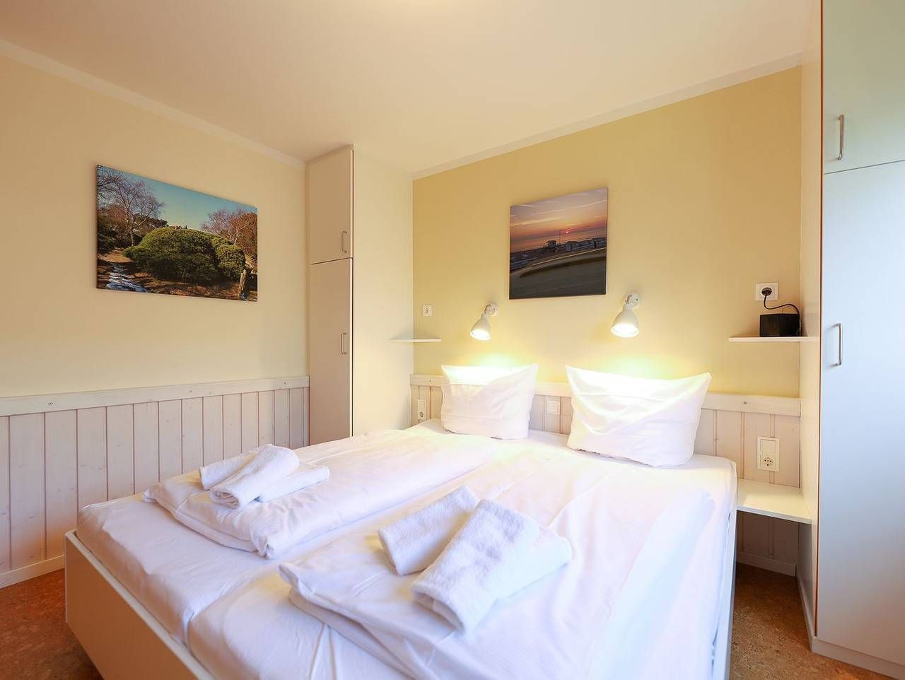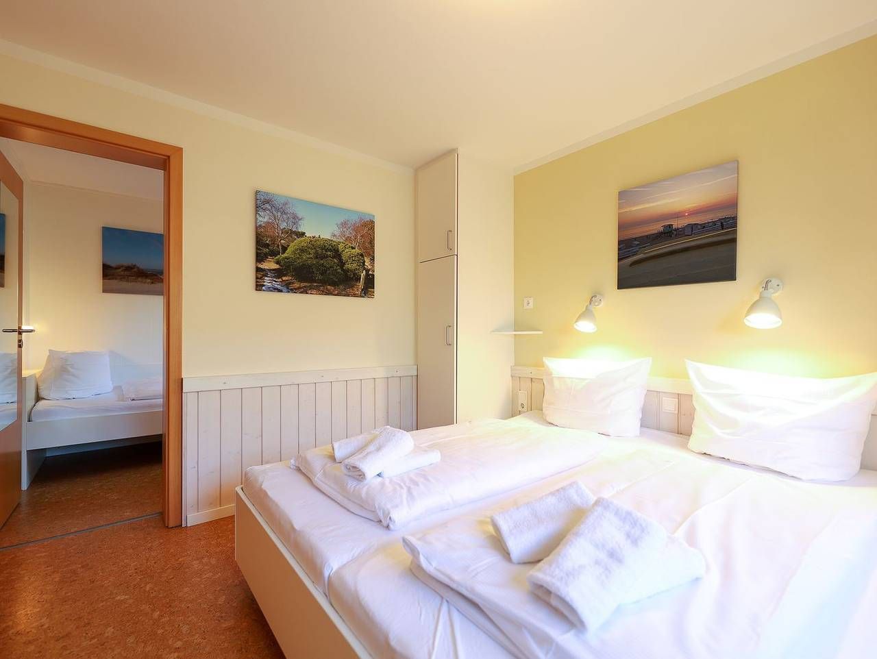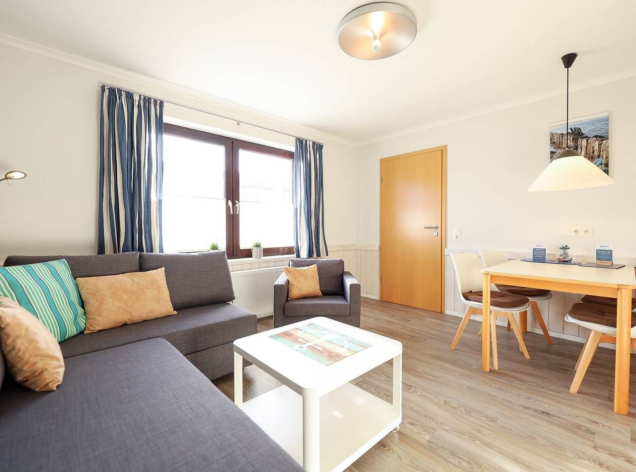 Mit individuell getischlerte Einbauten, hochwertige Holzvertäfelungen und hellen Pastelltönen bietet das Appartement viel Platz für alle, bei denen Komfort großgeschrieben wird. Nicht zu viel, nicht zu wenig, sondern genau richtig. Ein Schlafzimmer mit bequemen Doppelbett und eins mit Einzelbett sorgen auch nachts dafür, dass jeder einen traumhaften Schlafplatz hat. Das Wohnzimmer verfügt über einen Esstisch und eine große Couch zum chillen. Abgerundet wird dieser Wohlfühlort durch eine kleine aber gut ausgestattete Küchenzeile sowie ein helles Duschbad. Bei schönem Wetter lädt die Terrasse vor der Tür zum Draußen sitzen ein. Urlauben in Bestlage: Appartement Ruus liegt auf einem ruhigen Innengrundstück fernab der Straße. Die Westerländer Innenstadt ist nur fünf Gehminuten entfernt, genauso der Strandabschnitt "Himmelsleiter". Direkt um die Ecke gibt es eine Bushaltestelle und der Bahnhof ist fußläufig in 15 Minuten erreichbar.