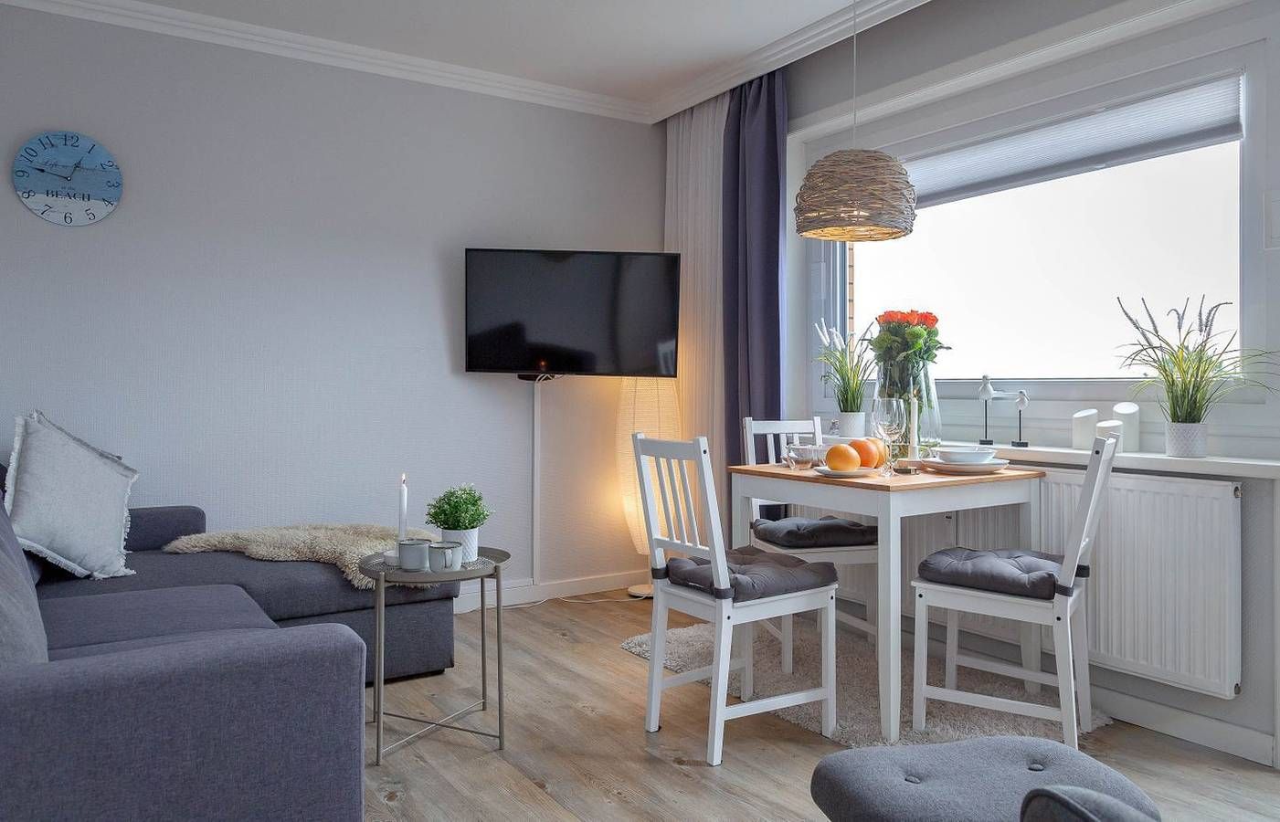 Appartement Lifeguard Station: Theodor-Heuss-Straße 20, im 3.OG, mit toller Aussicht über die Wiesen, auf den Inselsüden und auf die Dünenkrone. Dieses teilrenovierte Appartement ist für 3 Personen ausgestattet. Zwei Kaffeemaschinen sind hier vorhanden. (Filterkaffee und Nespresso), Bügelbrett mit Bügeleisen, Bluetooth, Wlan Radio sowie Smart TV. Der helle Wohnraum mit Schlafsofa ist mit Designboden ausgestattet und hat einen Südbalkon. Im Schlafzimmer befindet sich ein Kleiderschrank sowie ein Doppelbett. Im Haus gibt es einen Fahrstuhl, einen Waschkeller (Waschmaschine, Trockner mit Münzautomaten), sowie Abstellmöglichkeiten für Fahrräder. Ein Wäldchen und der Strandübergang Himmelsleiter sind in wenigen Minuten zu Fuß erreicht. Zur City sind es etwa 10 Gehminuten über die Promenade am Wasser entlang. Zur Wohnung gehört ein fester PKW-Abstellplatz in der Nähe des Hauses. Dies ist eine Nichtraucherwohnung. Ein netter kleiner Hund ist gestattet.