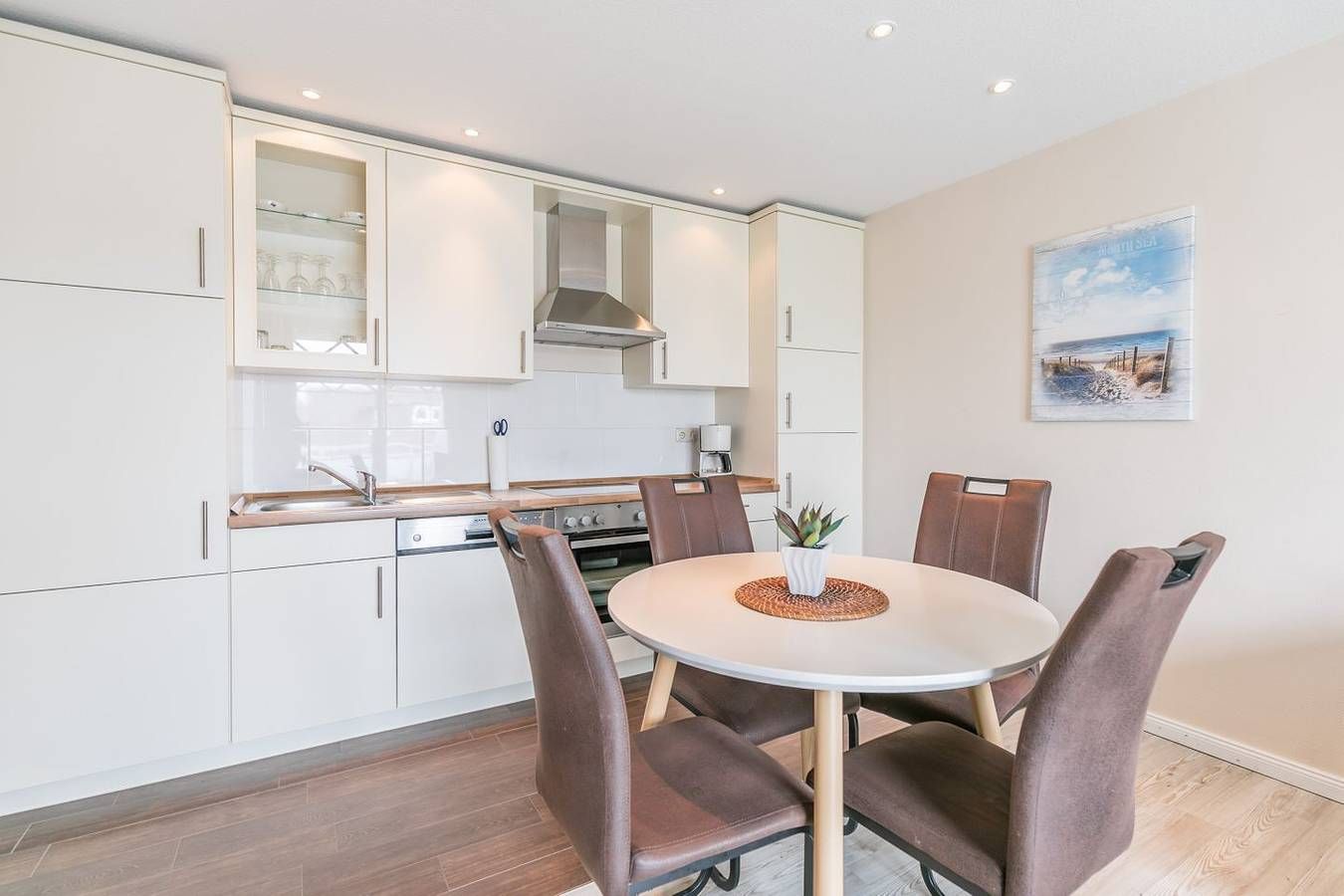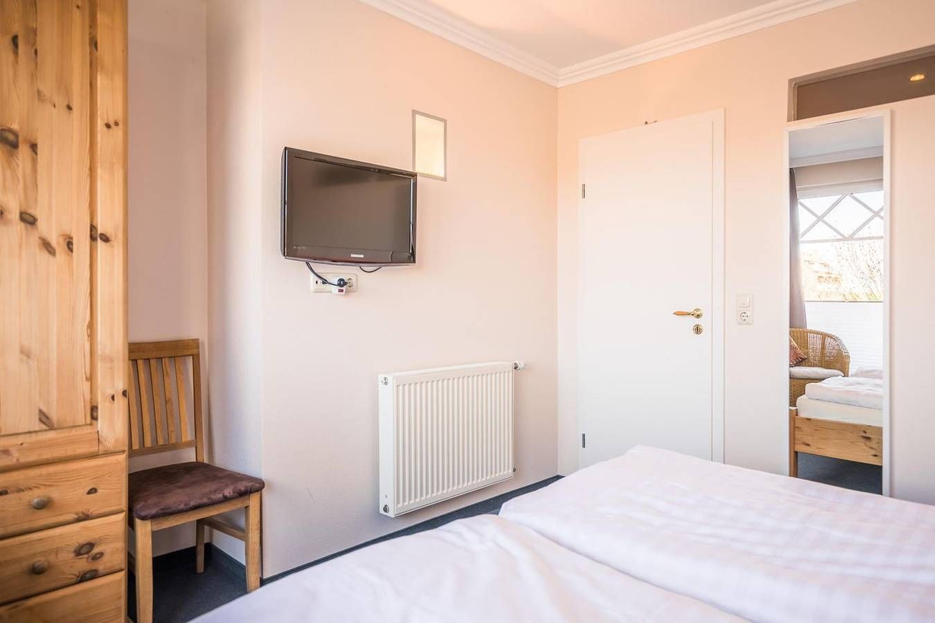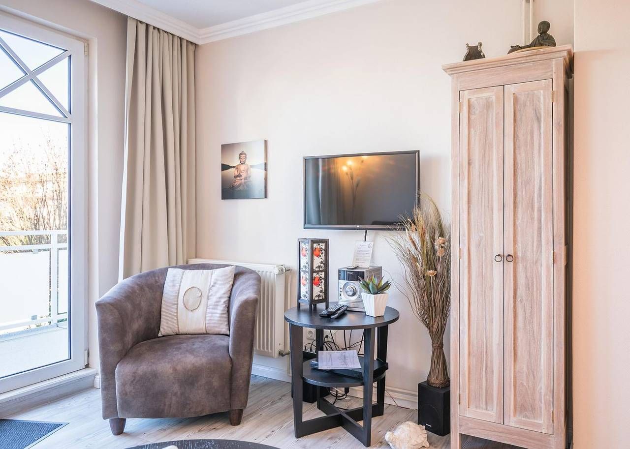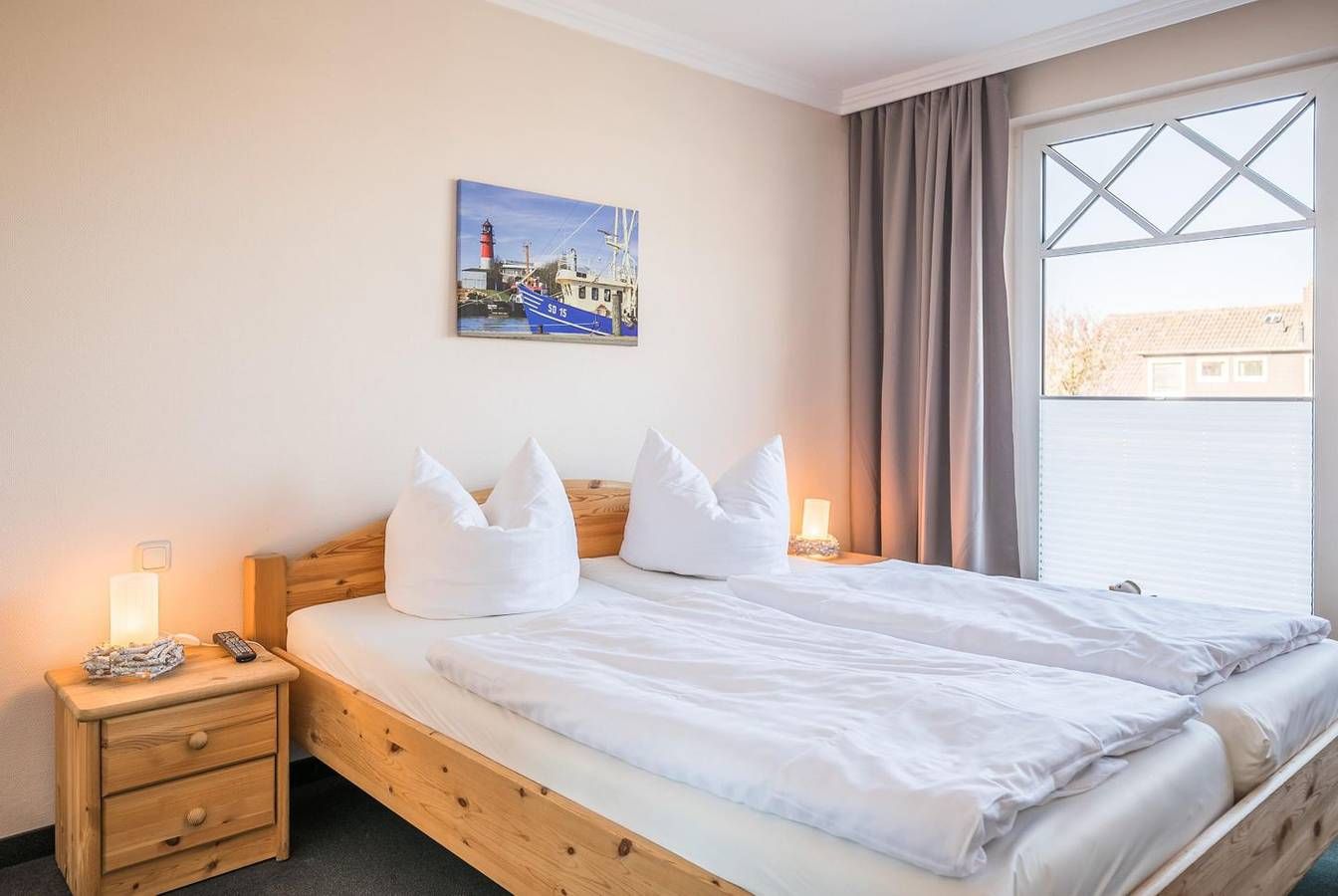 Ferienwohnung in Büsum – Urlaub an der Nordsee im Appartementhaus Meeresbucht Willkommen im Appartementhaus Meeresbucht in Büsum – Ihrer modernen Ferienwohnung an der Nordsee. Nur 200 Meter vom Strand entfernt, erwartet Sie die gemütliche Ferienwohnung Nr. 6 im 1. Obergeschoss mit 66 m² Wohnfläche – ideal für Familien oder Paare bis 4 Personen. Die liebevoll eingerichtete Unterkunft bietet zwei komfortable Schlafzimmer, ein einladendes Wohnzimmer mit Esstisch, zwei Fernsehern, Blu-ray-Player und kostenlosem WLAN. Die offene Küche ist komplett ausgestattet mit Ceran-Herd, Backofen, Spülmaschine, Kaffeemaschine, Wasserkocher, Toaster, Geschirr und Besteck – perfekt für Selbstversorger. Genießen Sie entspannte Stunden auf dem Balkon mit Nordseebrise. Ein Privatparkplatz direkt am Haus rundet das Angebot ab. Kinder sind herzlich willkommen, zahlreiche Freizeitmöglichkeiten befinden sich in direkter Nähe. Einkaufsmöglichkeiten, Restaurants und die Strandpromenade sind fußläufig sehr gut erreichbar – für einen unvergesslichen Nordseeurlaub in Büsum. Die Wohnung ist Nichtraucherfreundlich und hundefrei seit 2025. Jetzt buchen und das Meer erleben – Ihre Ferienwohnung in Büsum wartet auf Sie! Wohnzimmer: Sitzgarnitur, Flachbild-TV, Blu-Ray-Player, Esstisch mit 4 Stühlen, Zugang zum Westbalkon, Verdunkelungsvorhang Küchenzeile: Ceran-Kochfeld, Backofen, Geschirrspüler, Kühlschrank mit Gefrierfach, Wasserkocher, Toaster, Eierkocher, Kaffeemaschine Schlafzimmer 1: Doppelbett mit getrennten Matratzen (je 200x 90x 54cm), Kopf- und Fußteil höhenverstellbar, Kleiderschrank 2-türig, Flat-TV, Nachtschränke, Zugang zum Westbalkon, Stuhl, Plissee und Verdunkelungsvorhang Schlafzimmer 2: Doppelbett mit getrennten Matratzen ( 200x 90x 42cm), Kleiderschrank 2-türig, Flat-TV, Nachtschränke, Verdunkelungsvorhang Bad: Dusche, WC, Schminkspiegel, Duschhocker, Fön, Handtuchheizung, Fenster Flur: Garderobe, großer Spiegel Haus & Service: großer Balkon mit Strandkorb, Gartenmöbel, Fahrradunterstand, 1kostenloser Parkplatz, W-LAN (HotSpot), Wäsche optional dazu buchbar, gemeinschaftliche Waschmaschine + Trockner Für einen last Minute Urlaub melden Sie sich bitte telefonisch bei uns.
