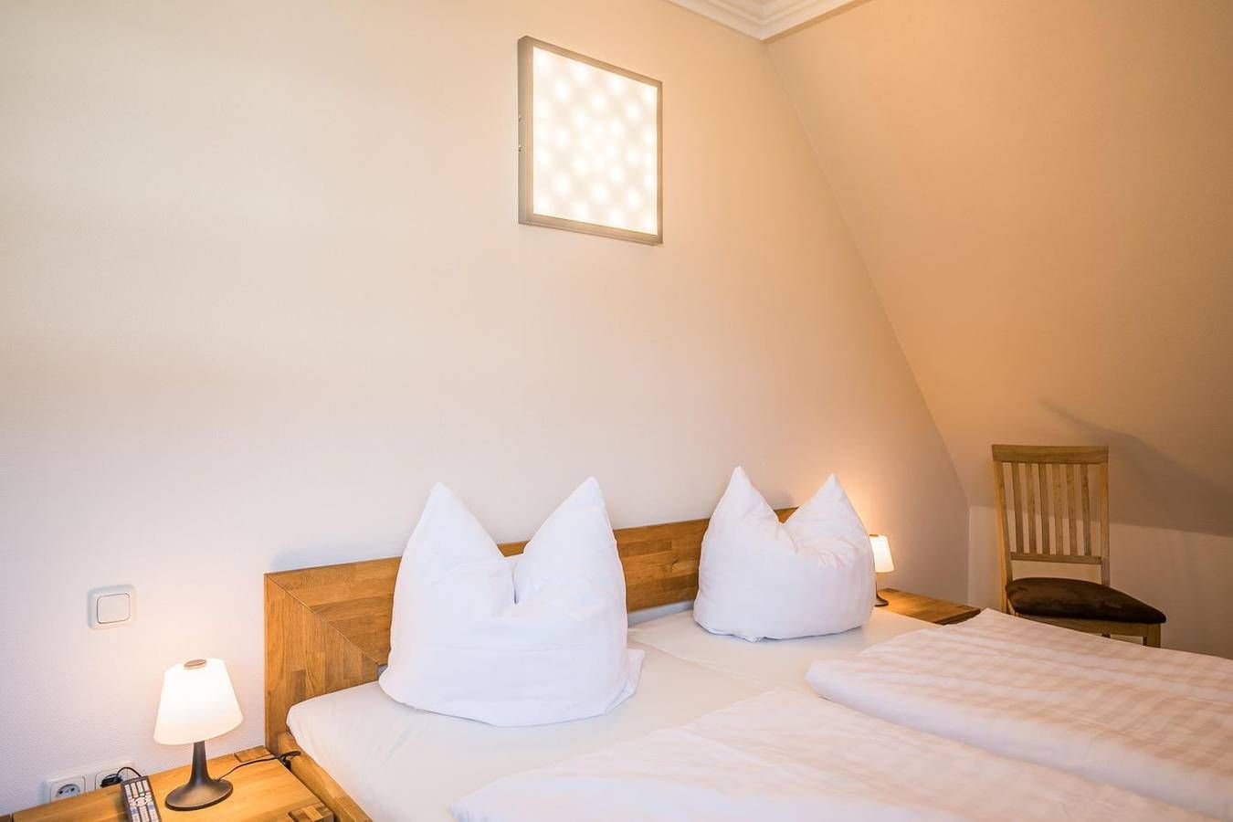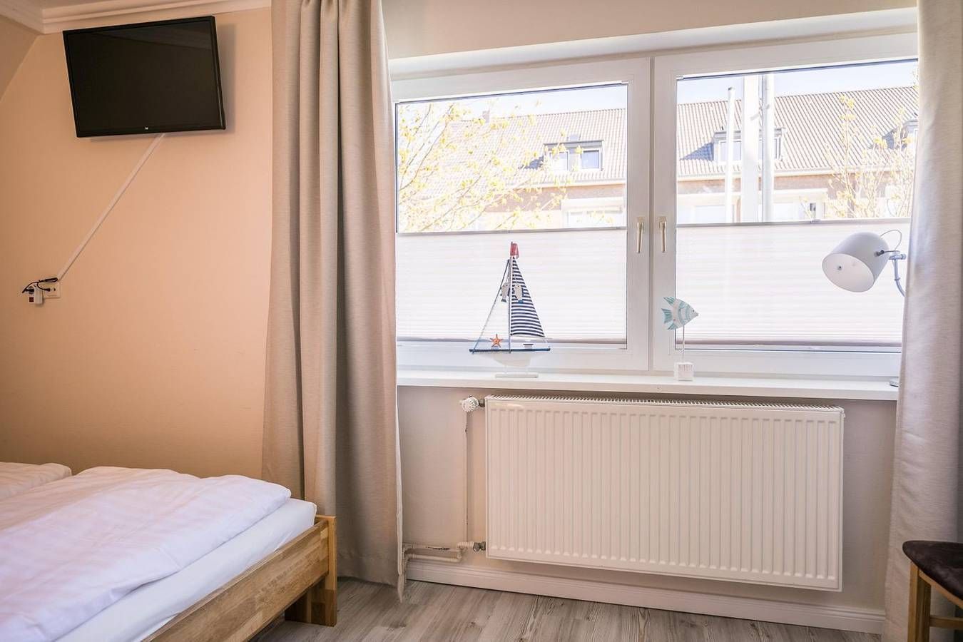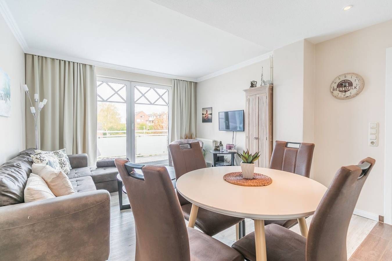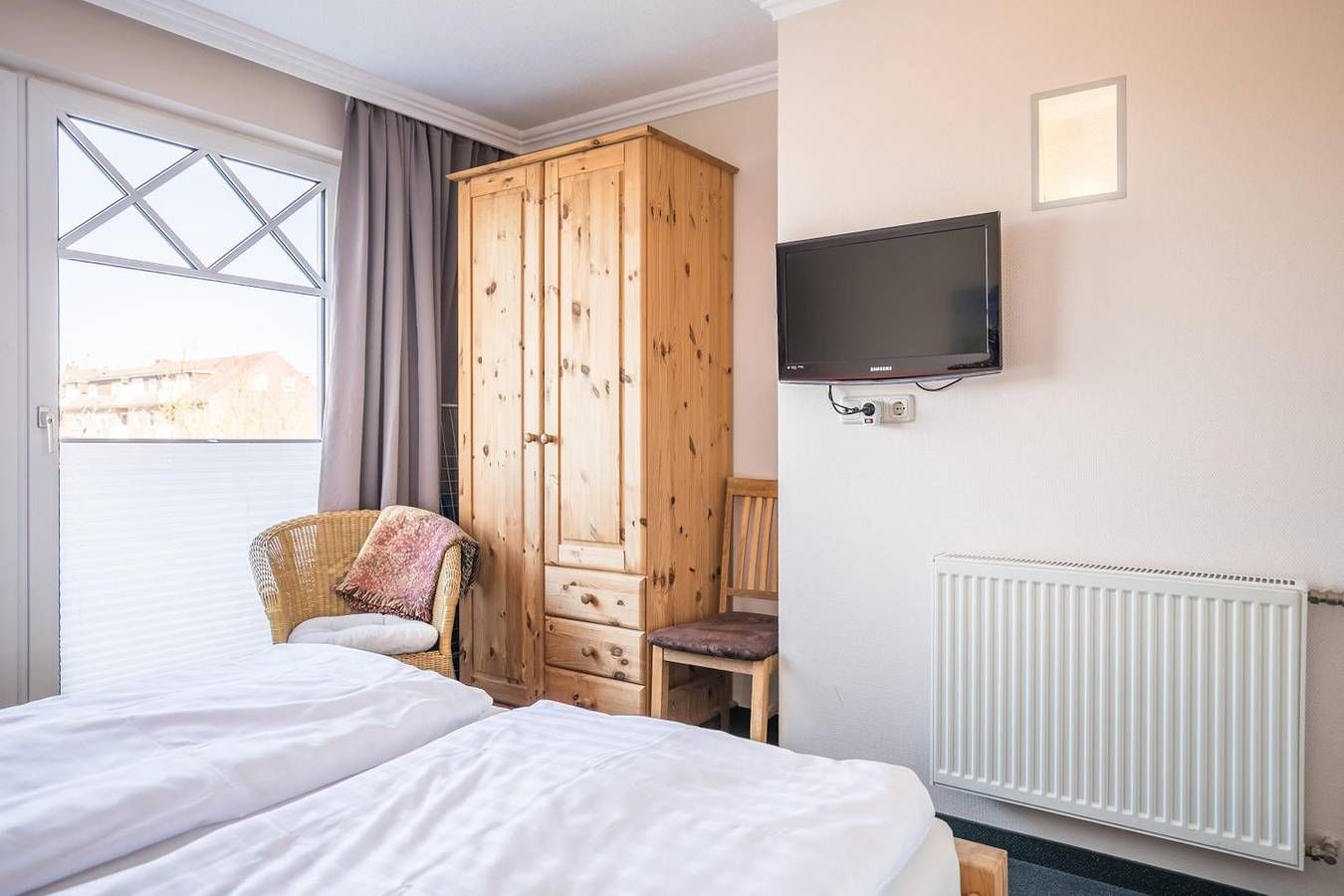 Ferienwohnung in Büsum – Urlaub an der Nordsee im Appartementhaus Meeresbucht Willkommen im Appartementhaus Meeresbucht in Büsum – Ihrer modernen Ferienwohnung an der Nordsee. Nur 200 Meter vom Strand entfernt, erwartet Sie die gemütliche Ferienwohnung Nr. 6 im 1. Obergeschoss mit 66 m² Wohnfläche – ideal für Familien oder Paare bis 4 Personen. Die liebevoll eingerichtete Unterkunft bietet zwei komfortable Schlafzimmer, ein einladendes Wohnzimmer mit Esstisch, zwei Fernsehern, Blu-ray-Player und kostenlosem WLAN. Die offene Küche ist komplett ausgestattet mit Ceran-Herd, Backofen, Spülmaschine, Kaffeemaschine, Wasserkocher, Toaster, Geschirr und Besteck – perfekt für Selbstversorger. Genießen Sie entspannte Stunden auf dem Balkon mit Nordseebrise. Ein Privatparkplatz direkt am Haus rundet das Angebot ab. Kinder sind herzlich willkommen, zahlreiche Freizeitmöglichkeiten befinden sich in direkter Nähe. Einkaufsmöglichkeiten, Restaurants und die Strandpromenade sind fußläufig sehr gut erreichbar – für einen unvergesslichen Nordseeurlaub in Büsum. Die Wohnung ist Nichtraucherfreundlich und hundefrei seit 2025. Jetzt buchen und das Meer erleben – Ihre Ferienwohnung in Büsum wartet auf Sie! Wohnzimmer: Sitzgarnitur, Flachbild-TV, Blu-Ray-Player, Esstisch mit 4 Stühlen, Zugang zum Westbalkon, Verdunkelungsvorhang Küchenzeile: Ceran-Kochfeld, Backofen, Geschirrspüler, Kühlschrank mit Gefrierfach, Wasserkocher, Toaster, Eierkocher, Kaffeemaschine Schlafzimmer 1: Doppelbett mit getrennten Matratzen (je 200x 90x 54cm), Kopf- und Fußteil höhenverstellbar, Kleiderschrank 2-türig, Flat-TV, Nachtschränke, Zugang zum Westbalkon, Stuhl, Plissee und Verdunkelungsvorhang Schlafzimmer 2: Doppelbett mit getrennten Matratzen ( 200x 90x 42cm), Kleiderschrank 2-türig, Flat-TV, Nachtschränke, Verdunkelungsvorhang Bad: Dusche, WC, Schminkspiegel, Duschhocker, Fön, Handtuchheizung, Fenster Flur: Garderobe, großer Spiegel Haus & Service: großer Balkon mit Strandkorb, Gartenmöbel, Fahrradunterstand, 1kostenloser Parkplatz, W-LAN (HotSpot), Wäsche optional dazu buchbar, gemeinschaftliche Waschmaschine + Trockner Für einen last Minute Urlaub melden Sie sich bitte telefonisch bei uns.