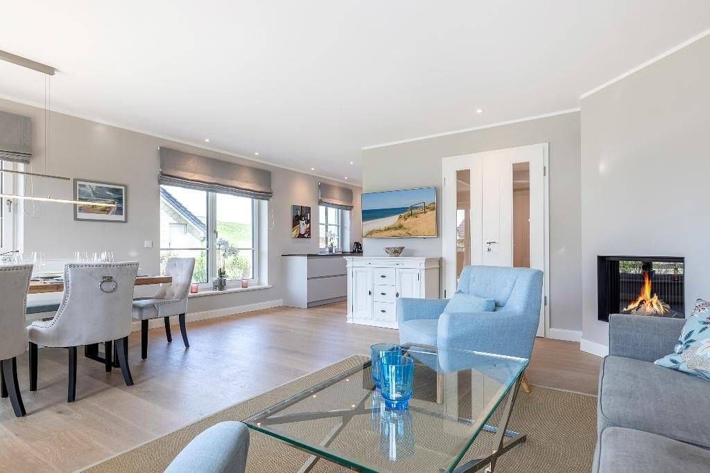 Das Haus liegt nur zwei Gehminuten zum Strand in Rantum. Sie gehen nur über die Düne und sind am wunderschönen Strand von Rantum. Hier ist noch der Fleck, an dem kaum jemand am Strand zu finden ist. Rantum liegt an der schmalsten Stelle von Sylt mit nur 550 m Breite. Daher ist hier das Inselgefühl am stärksten ausgeprägt. Fantastisch ist der Blick von der Nordseebrandung bis hin zum Weltnaturerbe Wattenmeer, dem größten geschlossenen Ökosystem weltweit. Unser Traumhaus ist 2018 fertiggestellt worden und verfügt über ca. 150 m² Wohnfläche, 2 Bäder, 3 Schlafzimmer (6 Personen) mit Fernseher, WLAN, modernste Einbauküche mit Bora Induktionskochfeld Glaskeramik, Gaskamin, Saunabad, Terrasse, großzügiger Garten etc. Das Haus ist mit viel Liebe zum Detail eingerichtet worden und besticht durch die lichtdurchfluteten Zimmer und das großzügige Wohnzimmer. Die Holzfußböden im Haus geben dem Ganzen eine besondere Note. Das „Elternschlafzimmer“ verfügt über einen Balkon von dem sich der Sonnenuntergang besonders genießen lässt. * Parkplatzmöglichkeit - 1 Parkplatz steht neben dem Haus (rechts) zur Verfügung ACHTUNG!!! Dieses Objekt beinhaltet eine abweichende Preisgestaltung. Der Preis pro Nacht gilt nur für 4 Personen und jede weitere Person ab 10 Jahren wird mit 90,- € pro Nacht berechnet / Kinder bis 10 Jahren sind frei.