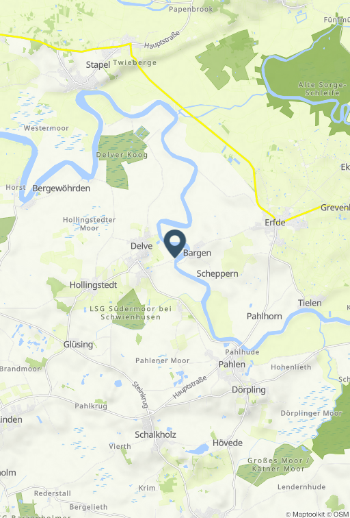 Nach Nordosten verlief die Landstraße von Heide über Linden, Glüsing und Hollingstedt zur Fährstelle Schwienhusen, wo man bei Bargen den Südteil Stapelholms erreichte. Die Fährstelle wurde bis zum Bau der Eiderklappbrücke in Pahlhude genutzt. Auf der Dithmarscher Seite ist das reetgedeckte Fährhaus erhalten geblieben.