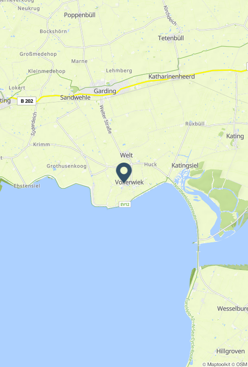 Der Hof liegt im anerkannten Erholungsort Vollerwiek, welcher direkt hinter dem Nordseedeich zwischen Tönning und St.-Peter-Ording an der Südseite der Halbinsel Eiderstedt liegt. Der grüne Badestrand bietet ideale Bademöglichkeiten und ist Ausgangspunkt für Wattwanderungen. Die Entfernung vom Hof zum Badestrand beträgt ca. zehn Minuten Fußweg.