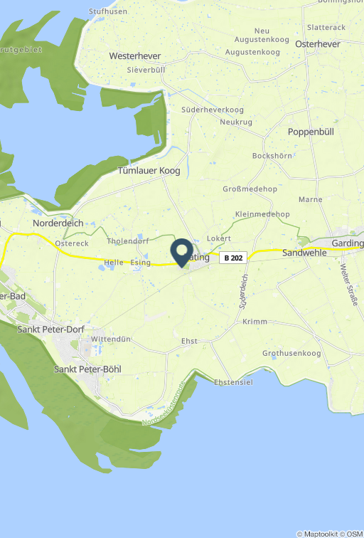 Vor den Toren St.Peter-Ordings liegt das mit Reet gedeckte Doppelhaus in wunderschöner Lage mit Blick über die Wiesen. St.Peter-Ording liegt ca. 4 km entfernt, wo man alle Einkaufs-u. Versorgungsmöglichkeiten findet. In der...