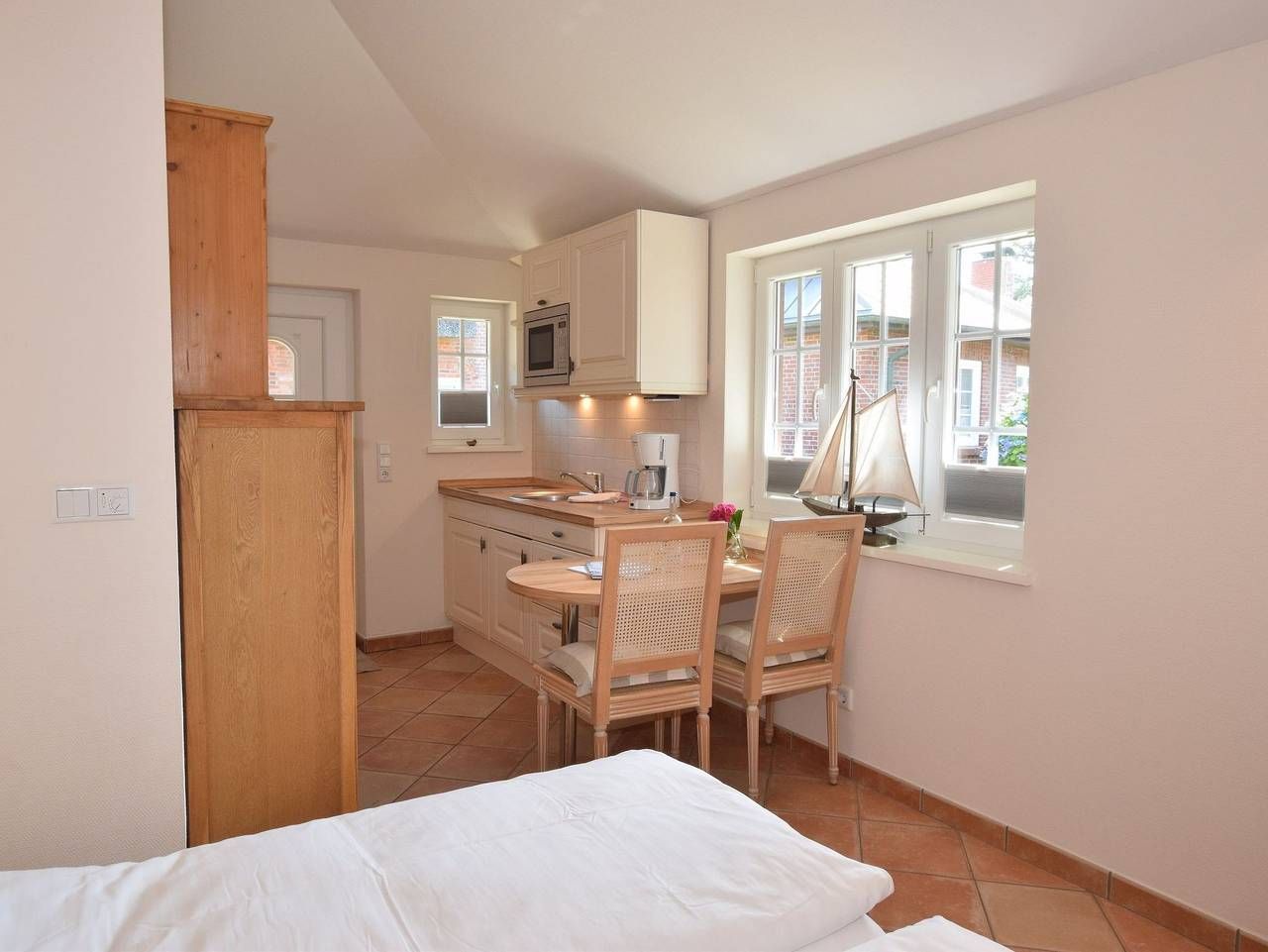Stilvolle 1-Zimmer-Nichtraucher-Ferienwohnung in ruhiger Wohnlage und Strandnähe mit Parkplatz. Die lichtdurchflutete 1-Zimmer-Ferienwohnung, ca. 20 qm, befindet sich im gemütlichen Holzbungalow. Die dazugehörige kleine Terrasse mit Gartenanteil ist nach Süden ausgerichtet und hat somit fast den ganzen Tag Sonne. Balkonmöbel mit Auflagen stehen dort bereit.