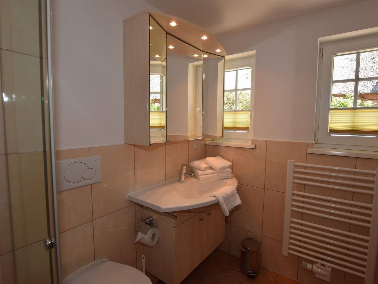 Durch die Haustür gelangt man in das kombinierte Wohn-/Schlafzimmer mit einem Doppelbett (1,60 m x 2,00 m mit zwei Einzelmatratzen und Bettdecken in Übergröße), einem Kabel-Flachbild-TV an der Wand und W-Lan. Die neuwertige Küchenzeile mit Essplatz hat ein 2-Platten-Ceranfeld, Mikrowelle und einen Kühlschrank mit 3-Sterne-Gefrierfach. Kaffeemaschine, Wasserkocher und Toaster gehören zur Grundausstattung. Modernes Duschbad/WC mit Fenster, ebenerdiger Dusche, Waschtisch, Handtuchtrockner und Fön. Die Ferienwohnung ist ideal für 1-2 Personen geeignet. Ein PKW-Stellplatz am Haus steht kostenfrei zur Verfügung.