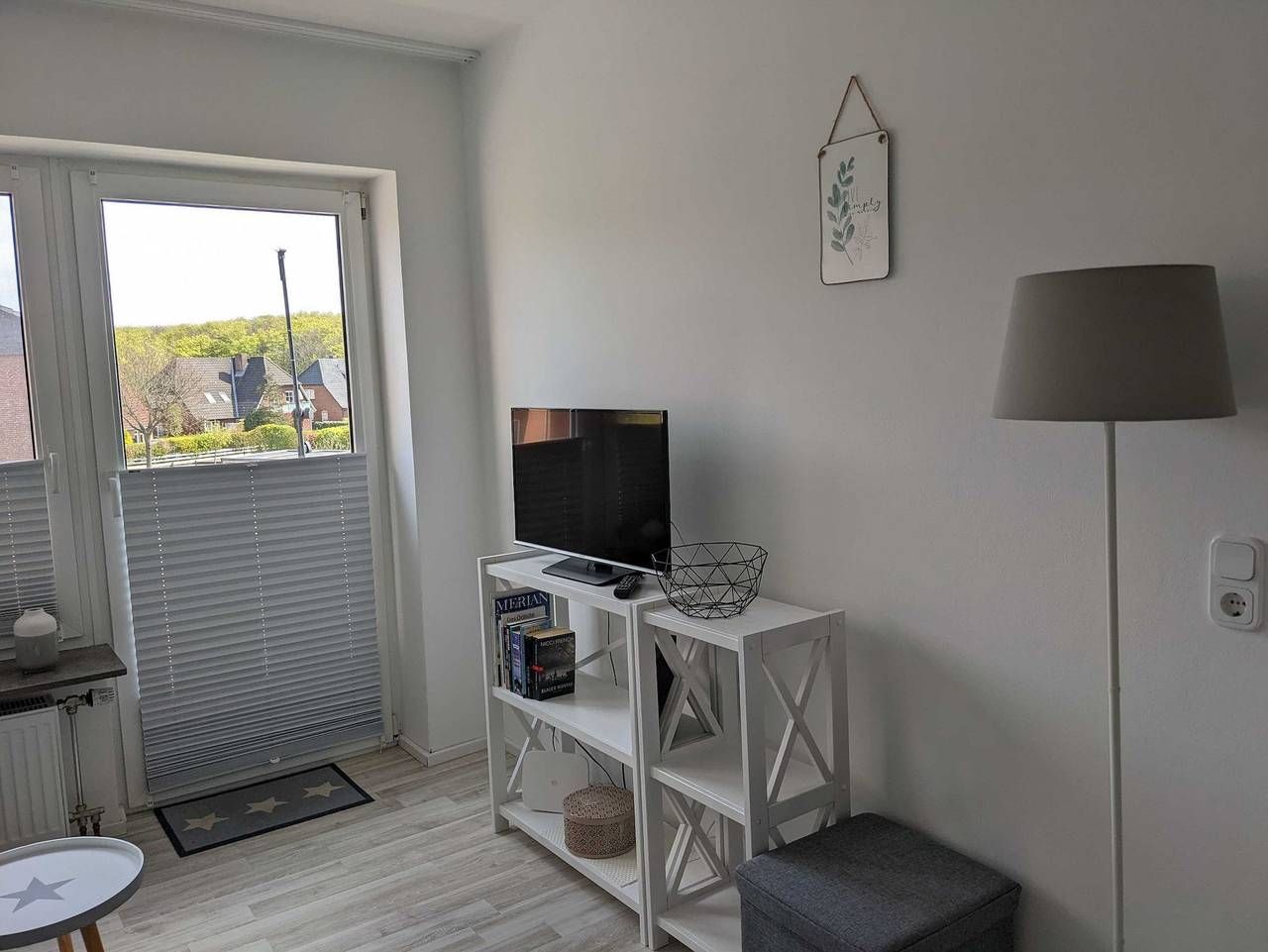Das schöne, geschmackvoll eingerichtete Einzimmerappartement mit Balkon liegt im Berliner Ring. Die kleine gemütliche Wohnung hat ein Schlafsofa mit einer festen Matratze. Im Eingangsbereich befindet sich die Pantryküche. Das helle, moderne Duschbad verfügt über ein Außen Fenster. Der Balkon ist mit Balkonmöbeln ausgestattet. Vom Berliner Ring aus kommt man in 15 Minuten, ca 1,5 km entfernt fußläufig zum Zentrum und zum Badestrand am Sandwall, der Flaniermeile. Hier finden sie kleine Läden zum Stöbern, zudem laden einige Cafés und Restaurants zum Verweilen ein. Von hier aus haben Sie einen wunderschönen Blick auf die Halligen und das Wattenmeer. Den Bäcker finden Sie in der Strandstr., 800 Meter von Ihrer Ferienwohnung entfernt. Ihre Unterkunft befindet sich auf der Insel Föhr, der Zweitgrößten Insel in der Nordsee. Föhr liegt mitten im Nationalpark Schleswig-Holsteinisches Wattenmeer und hat durch den Golfstrom ein mildes Seeklima. Schon bei der Anreise mit der Fähre durch das Wattenmeer, entlang der Sandbänke, fängt der Urlaub an. Vielleicht sieht man hier schon den ersten Seehund ;). Ob eine Fahrradtour durch die grüne Natur, ein Strandtag am Meer oder eine Wattwanderung - die Insel Föhr ist sehr vielfältig. Ein Urlaub auf der schönen Insel Föhr lohnt sich in jeder Jahreszeit. Das Team von Clausens Vermietung ist gerne behilflich bei der Objektsuche - sei es in der kleinen Stadt Wyk oder über Land in den schönen Friesendörfern. Diese gemütliche Einraumappartement befindet sich im zweiten Obergeschoss. Die Raumaufteilung ist wie folgt: 1 komb. Wohn-/Schlafraum, 1 Pantryküche, 1 Badezimmer mit Dusche. Auszeichnung: Haustiere nicht erlaubt, Nichtraucher. Außenbereich: Balkon, Balkonmöbel Küche / Haushalt: Filterkaffeemaschine, Kühlschrank, Zweiplattenherd Service: Bettwäsche/Handtücher. Unterhaltung / Kommunik.: Satelliten-TV, WLAN-Zugang.