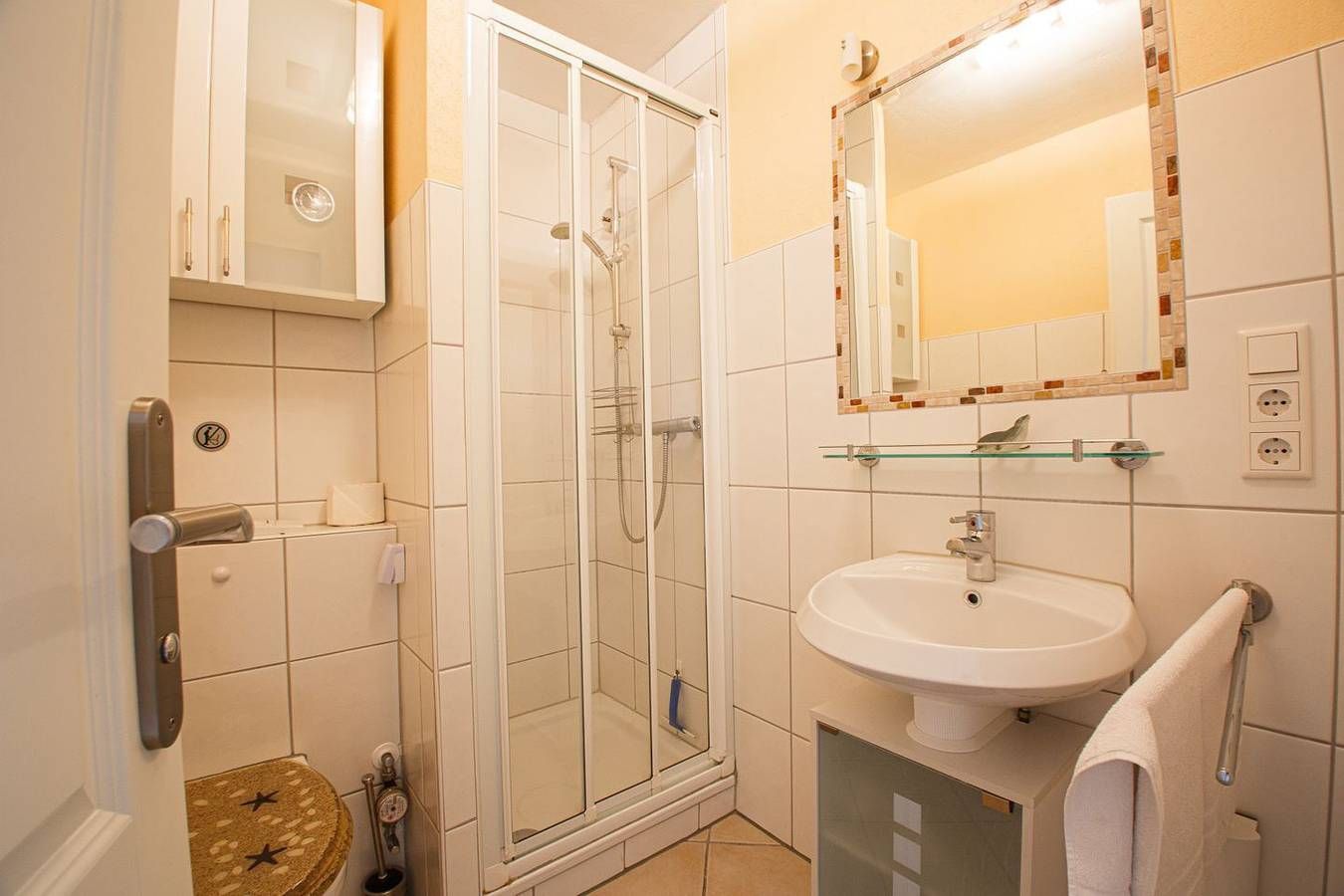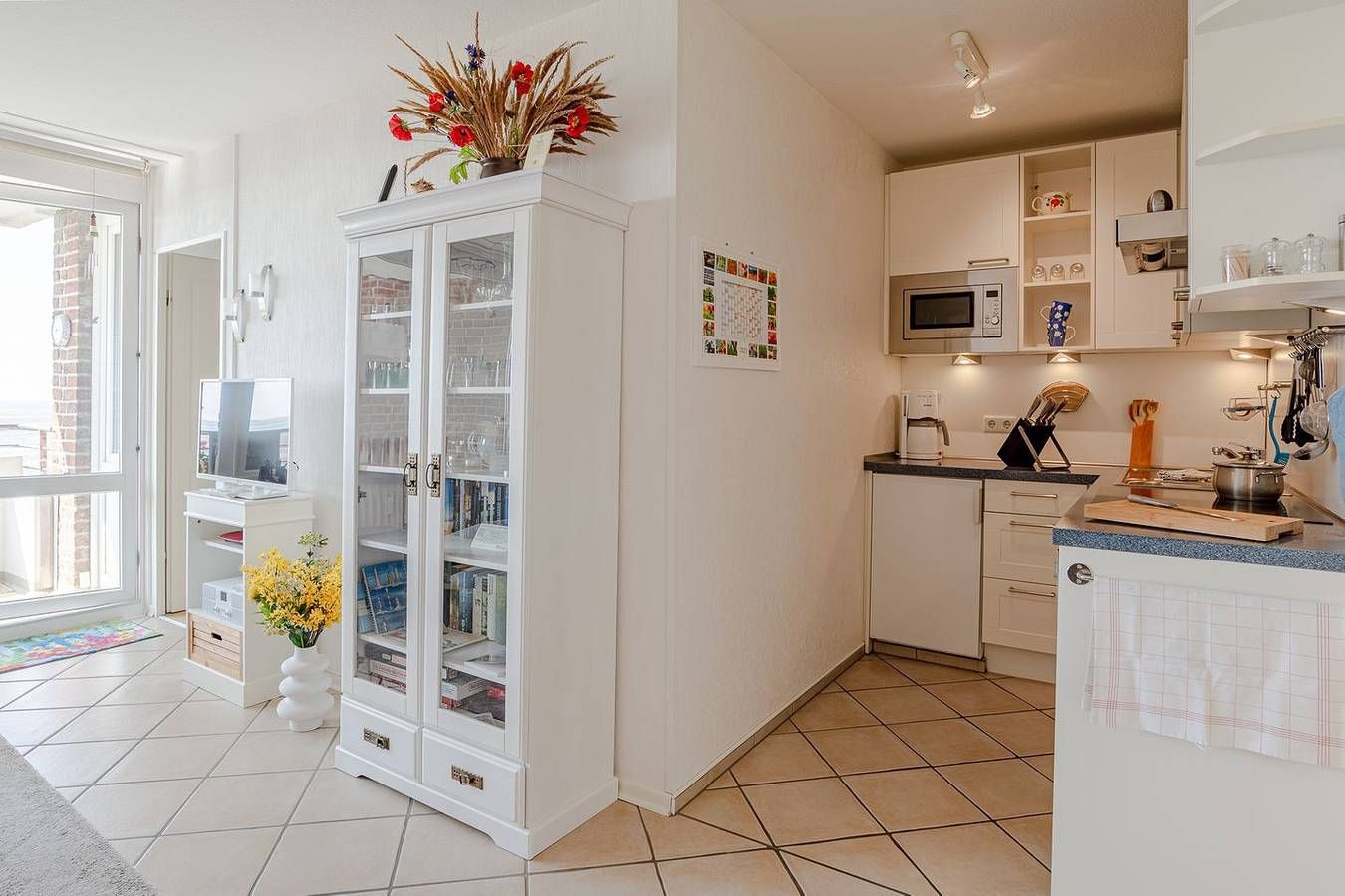 Die Ferienwohnung Haus Hooge Hooge Whg. 28 Utspann bietet auf 42 m² Wohnfläche im fünften Stock eines modernen Hauses in Wyk auf Föhr ein komfortables Urlaubsdomizil. Die Unterkunft überzeugt durch ihre außergewöhnlich gute Lage direkt am Sandstrand – lediglich 50 Meter trennen Sie vom feinen Meeresufer. Von dem möblierten, überdachten Balkon eröffnet sich Ihnen ein außergewöhnlich guter Meer- und Strandblick, der zu jeder Tageszeit besondere Eindrücke vermittelt. Das Haus ist mit einem Aufzug ausgestattet, der den Zugang zum Appartement bequem macht. Die Ferienwohnung verfügt über zwei modern eingerichtete Zimmer, darunter ein separates Schlafzimmer mit hochwertigem Vinylboden, das Ruhe und Erholung bietet. Drei Schlafmöglichkeiten stehen zur Verfügung, was das Appartement besonders für Paare und kleine Familien attraktiv macht. Ein Babybett sowie ein Kinderhochstuhl sind ebenfalls vorhanden, sodass auch junge Familien ideale Bedingungen vorfinden. Die kinderfreundliche Ausstattung und die Willkommensatmosphäre werden durch verschiedene Spiele und Bücher ergänzt, die für zusätzliche Unterhaltung sorgen. Das Wohnzimmer ist mit Fliesenboden, einer bequemen Sofaecke und einem Lesesessel ausgestattet. Von hier aus gelangen Sie direkt zum offen gestalteten Essbereich und zur voll ausgestatteten Küche. Die Küchenausstattung lässt mit Ceranfeld, Backofen, Mikrowelle, Kühlschrank mit Gefrierfach, Spülmaschine, Toaster, Kaffeemaschine, Wasserkocher sowie sämtlichem Geschirr und Küchenutensilien keinerlei Wünsche offen. Ein Esstisch und bequeme Stühle sorgen für gemeinsame Mahlzeiten in angenehmer Atmosphäre. Das moderne Badezimmer ist mit einer Dusche mit Wanne, Waschbecken, Spiegel, Haartrockner, WC sowie Hand- und Badetüchern ausgestattet. Außerdem stehen Ihnen eine gemeinschaftlich nutzbare Waschmaschine und ein Trockner zur Verfügung. Staubsauger, Wäscheständer und Reinigungsmittel sind ebenfalls vorhanden, sodass die Alltagsorganisation erleichtert wird. Die Erstausstattung mit Bettwäsche, Handtüchern und Geschirrhandtüchern ist im Angebot enthalten. Für erholsame Stunden und Wohlbefinden sorgen weitere Annehmlichkeiten wie der hauseigene, beheizte Indoor-Pool und eine zur Eigennutzung bereitstehende Sauna – ideale Voraussetzungen zum Entspannen, auch an Tagen mit nordischer Brise. Ein Privatparkplatz am Haus steht Ihnen zur Verfügung, was insbesondere bei einem Aufenthalt mit eigenem Auto empfehlenswert ist. Moderne Unterhaltungstechnik im Wohnbereich umfasst einen Satelliten-TV (bis 24 Zoll, internationale Kanäle verfügbar), WLAN mit hohen Übertragungsgeschwindigkeiten ab 25 MBit/s, Radio und eine kleine Auswahl an Büchern und Spielen. Selbstverständlich ist die Wohnung als Nichtraucherunterkunft ausgewiesen. Die zentrale Insellage in unmittelbarer Nähe zu Restaurants (100 m), dem Flughafen (100 m), öffentlichen Verkehrsmitteln (50 m), einer Einkaufsmöglichkeit (1.500 m) und dem Stadtzentrum (1.500 m) ermöglicht kurze Wege und die bequeme Erreichbarkeit zahlreicher Freizeitangebote. Golffreunde finden einen Golfplatz in nur 500 m Entfernung. Ein Einkaufsservice, Zimmerservice und Wäscheservice sorgen für zusätzlichen Komfort. Haus Hooge Hooge Whg. 28 Utspann bietet ein zeitgemäßes, gepflegtes Ambiente in erstklassiger Lage, das Ihnen erholsame Tage am Meer ermöglicht. Sichern Sie sich Ihren Aufenthalt und genießen Sie die vielfältigen Angebote dieser attraktiven Ferienwohnung.