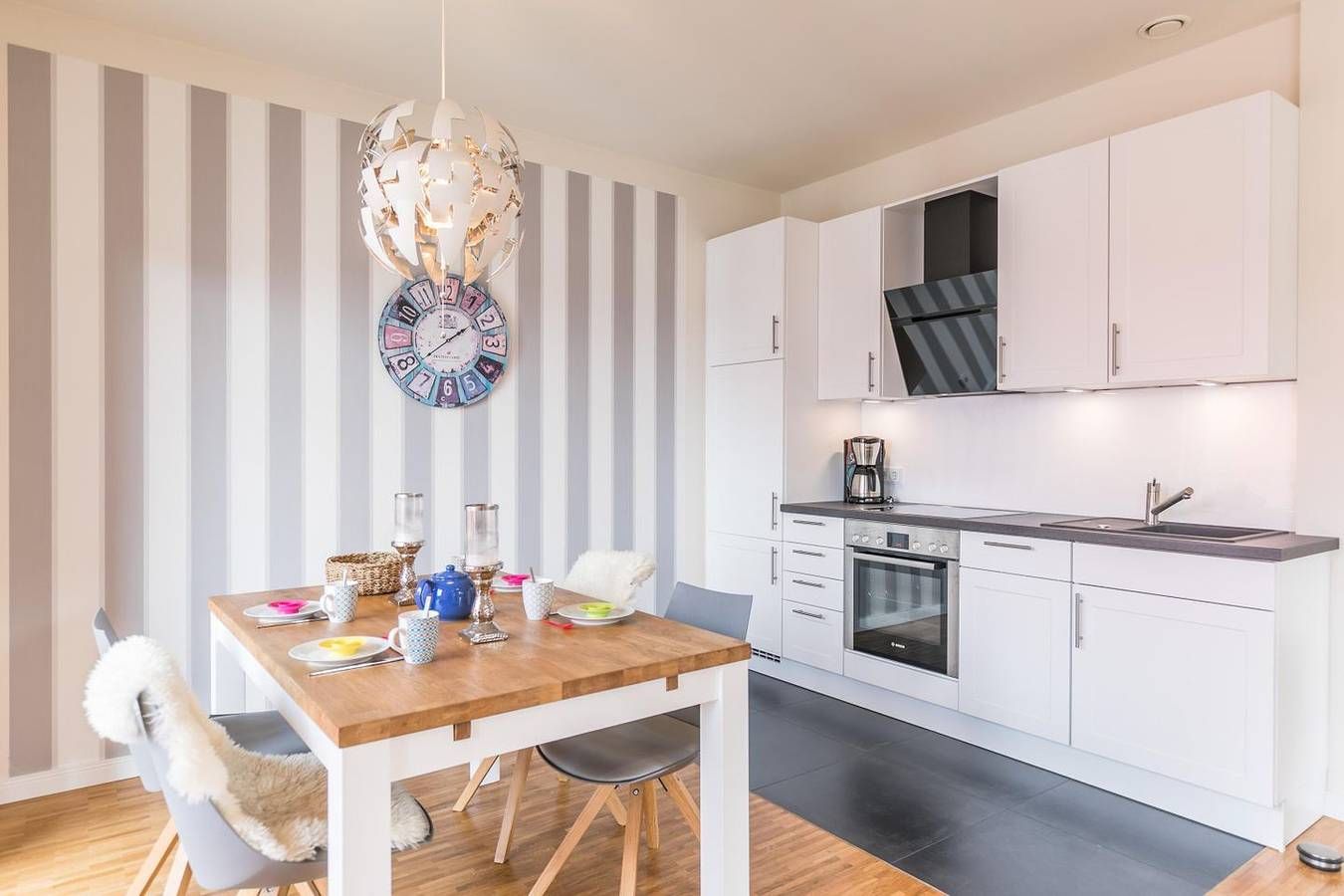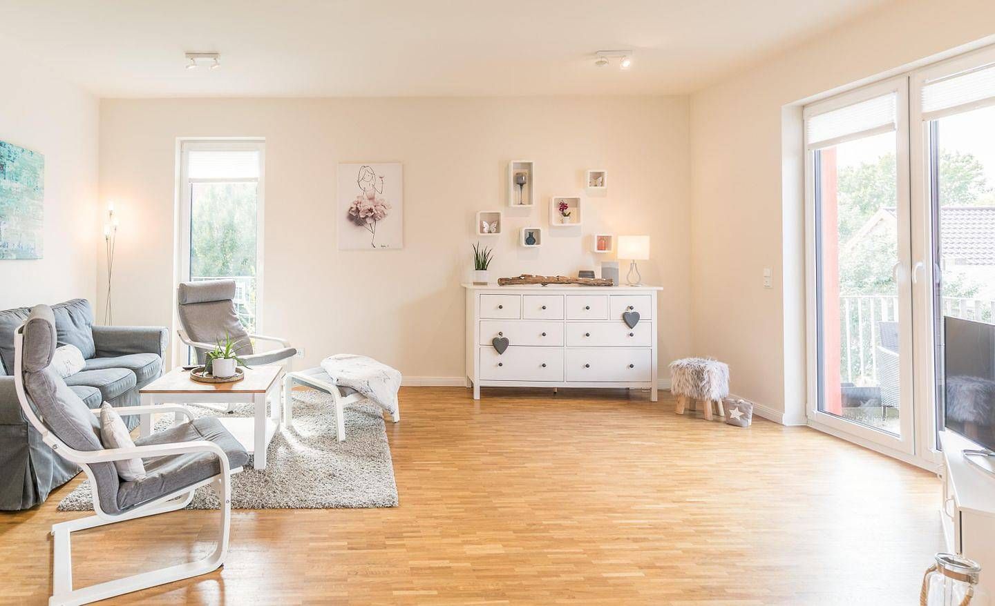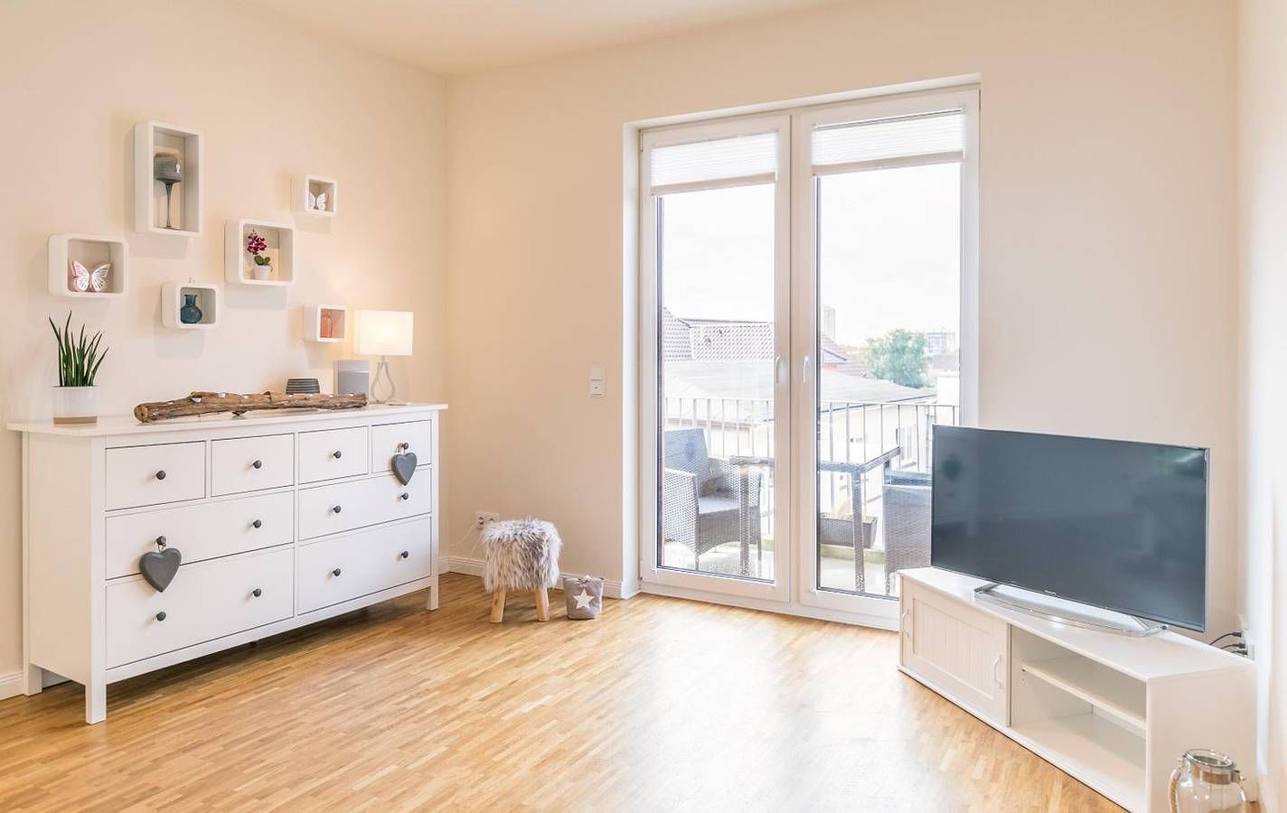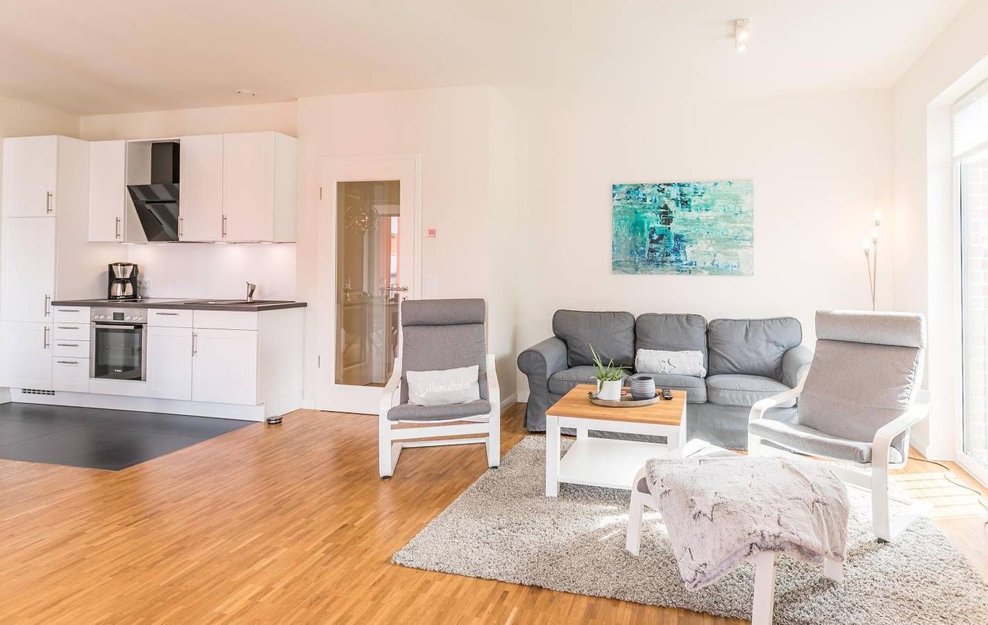In unmittelbarer Umgebung der Fußgängerzone liegt diese neuwertig eingerichtete Dachgeschoss-Wohnung "Bi de Kark" mit herrlichem Süd-Westblick über Büsum. Eine optimale Lage für interessierte Bummler und Hafenbesucher - direkt bei der Kirche. In der modern eingerichteten Wohnküche erwarten Sie zwei Balkonzugänge, eine gemütliche Couchecke sowie ein geräumiger Küchen- und Essbereich. Die Wohnung verfügt über ein Schlafzimmer mit Doppelbett und einem weiteren Schlafzimmer mit zwei getrennt stehenden Einzelbetten. Somit ist diese helle und freundliche Ferienwohnung für bis zu 4 Personen ausgelegt, optimal für Familien mit zwei Kindern. Ihr Auto können Sie entspannt in der Tiefgarage abstellen, wo Ihnen ein entsprechender Stellplatz zugeordnet ist. Die Wohnung verfügt über ein zentral geregeltes Be- und Entlüftungssystem mit Fußbodenheizung. Machen Sie es gern gemütlich in der zentral gelegenen Unterkunft "Bi de Kark" bei uns in Büsum! Seit 2025 ist die Mitnahme eines Hundes gestattet. Offener Wohnraum: Couch, 2 Sessel, Couchtisch, Kommode, Flachbild-TV, Radio mit Bluetooth und Wifi-Verbindung, Zugang zum kleinen Balkon mit 2 Stühlen + Tisch Offene Wohnküche: Backofen, Ceranfeld, Geschirrspüler, Kühlschrank mit Gefrierfach, Kaffeemaschine, Wasserkocher, Toaster, Dunstabzugshaube, Esstisch mit 4 Stühlen, Zugang zum kleinen Balkon mit 2 Sitzmöglichkeiten Schlafzimmer 1: Doppelbett (1,80x2,00m) mit Nachttischen und Lampen, Kleiderschrank, Kommode, Flachbild-TV, Sessel, Verdunkelungsplissee Schlafzimmer 2: 2 Einzelbetten, Nachttisch, Bettlampen, Kleiderschrank mit Spiegel, Sitzsack, Verdunkelungsplissee Bad: Bodentiefe Dusche, WC, Waschbecken, Spiegel, Handtuchtrockner, Fön, Regal, Fenster Gäste WC: WC, Waschbecken, Spiegel Haus & Service: W-LAN, 1 kostenloser Tiefgaragenstellplatz (Höhe der Einfahrt 2 m), Fußbodenheizung, Be- und Entlüftungssystem, Garderobe, abschließbarer Fahrradabstellraum in der Tiefgarage mit Lademöglichkeit, 2 Balkone, Wäsche optional dazu buchbar Für einen last Minute Urlaub in dieser Ferienwohnung melden Sie sich bitte telefonisch bei uns.