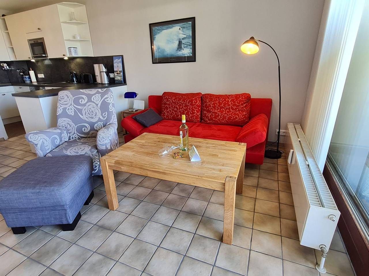 Direkt am Strand und der Kurpromenade liegt die Ferienwohnung C1. Ein Schwimmbad mit Gegenstrom-Anlage befindet sich im Haus. Das Zentrum von Wyk, das Wellenbad und das Kurmittelhaus erreichen Sie bequem zu Fuß. Eine Bushaltestelle, Kuranwendungen, Bäckerei, kleines Lebensmittelgeschäft und einige Restaurants und Cafés befinden sich in unmittelbarer Nähe des Hauses. Aus dem Wohnzimmer mit einem Panorama-Fenster und vom Balkon aus haben Sie einen traumhaften Blick auf das Meer und die Halligen. Sie betreten durch die Schiebetür den mit einem Strandkorb und Terrassenmöbeln ausgestatteten Balkon (Süd-Lage). Hier können Sie ein Sonnenbad nehmen, die gute Nordseeluft genießen und entspannen. Die Ferienwohnung besteht aus einem Wohnzimmer mit Küchenzeile, Schlafzimmer, Duschbad und Flur. Im Wohnraum stehen Ihnen ein Esstisch mit zwei Stühlen, ein Schlafsofa, ein Sessel, ein Couchtisch und eine Kommode zur Verfügung. Für Ihre Unterhaltung in der Wohnung sorgt ein TV, WLAN (kostenlos) und eine kleine Auswahl an Büchern. Zu der Ausstattung der Küchenzeile gehören u.a.: Toaster, Kaffeemaschine, Wasserkocher, Mikrowelle, Geschirrspüler, Kühlschrank mit einem Gefrierfach, Besteck, Geschirr und Töpfe. Abstellmöglichkeiten für Fahrräder befinden sich direkt am Haus oder im Fahrradkeller. Ein PKW-Stellplatz am Haus gehört zur Wohnung.