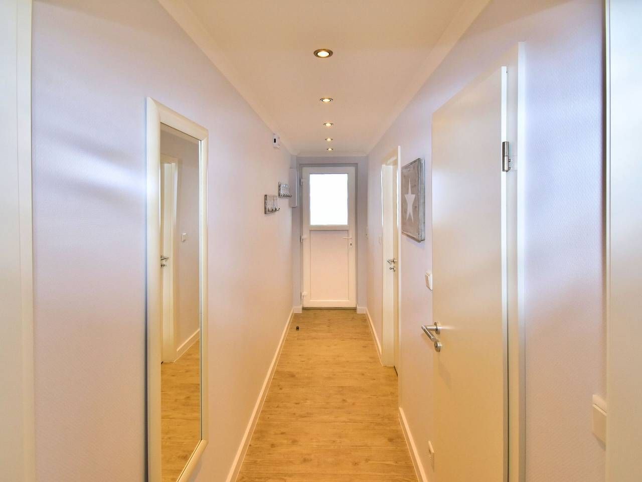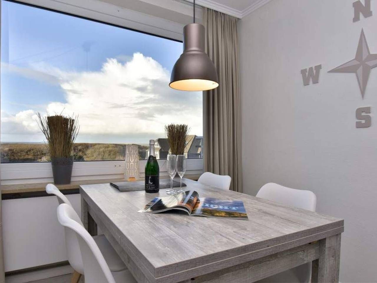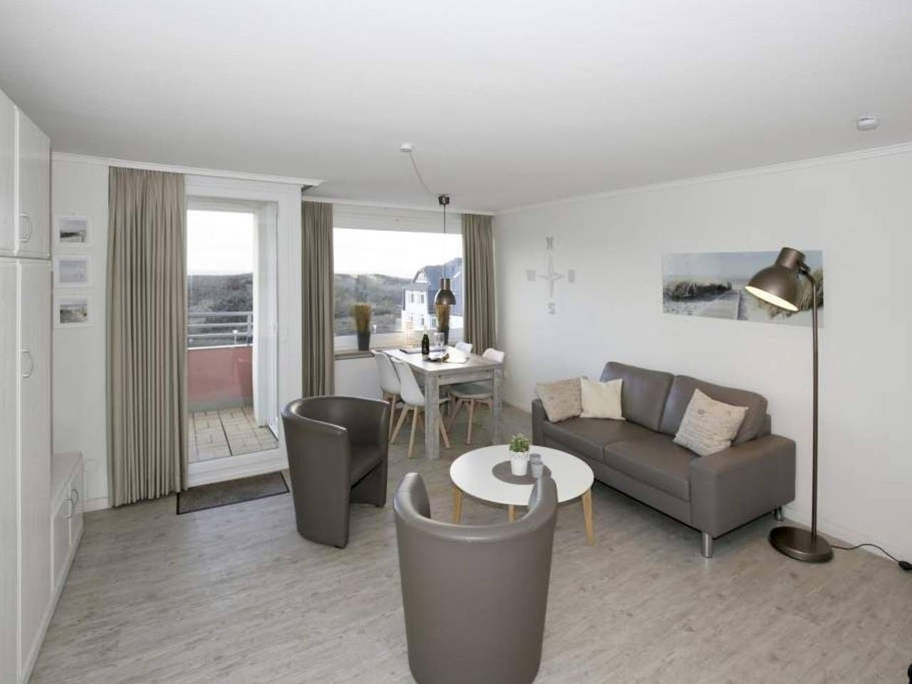 Schöne Meerblick-Ferienwohnung! Geschmackvoll eingerichtete 2-Zimmer-Nichtraucher-Ferienwohnung, ca. 44 qm, in der 4. Etage zur Westseite für max. 4 Personen mit Westbalkon und Meerblick (Nachmittagssonne, mit Balkonmöbeln und Auflagen). Vom Vorflur mit Garderobe gelangt man in das Wohnzimmer (mit Austritt zum Balkon), das Schlafzimmer und in das Duschbad/WC. Der Wohnraum besteht aus einer Sitzecke (Zweisitzer-Couch, 2 Sessel), einem Doppelschrankbett, einem Essplatz und Kabel-TV. Die Küche hat einen Geschirrspüler, einen Herd mit Backofen und Ceranfeld (4 Kochfelder), und einen Kühlschrank mit 3-Sterne-Gefrierfach. Kaffeemaschine (Filter), Wasserkocher und Toaster gehören zur Grundausstattung. Das neue Schlafzimmer ist mit einem Boxspringbett in Komfortliegehöhe (Liegefläche 1,60 x 2 m, mit 2 guten Einzelmatratzen mit Topper) ausgestattet. Im Bad befinden sich eine Dusche, ein WC, ein Waschtisch und ein Handtuchtrockner. Ein PKW-Außenstellplatz am Haus ist inklusive. Im Haus befindet sich ein kostenloses W-Lan-Netz, das für alle Appartements zugänglich ist.