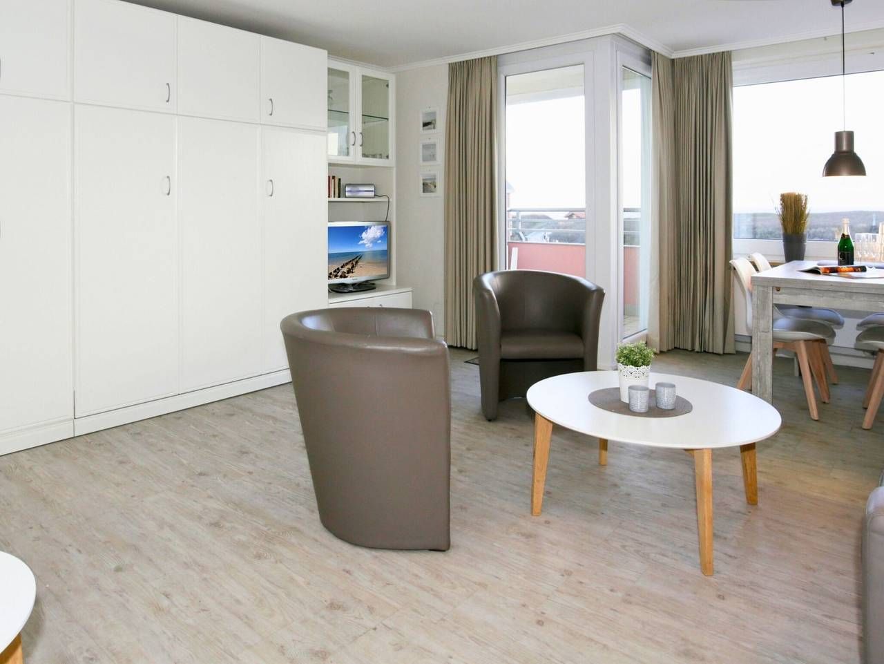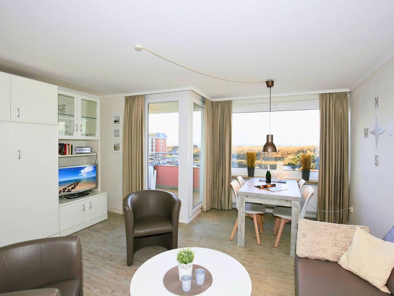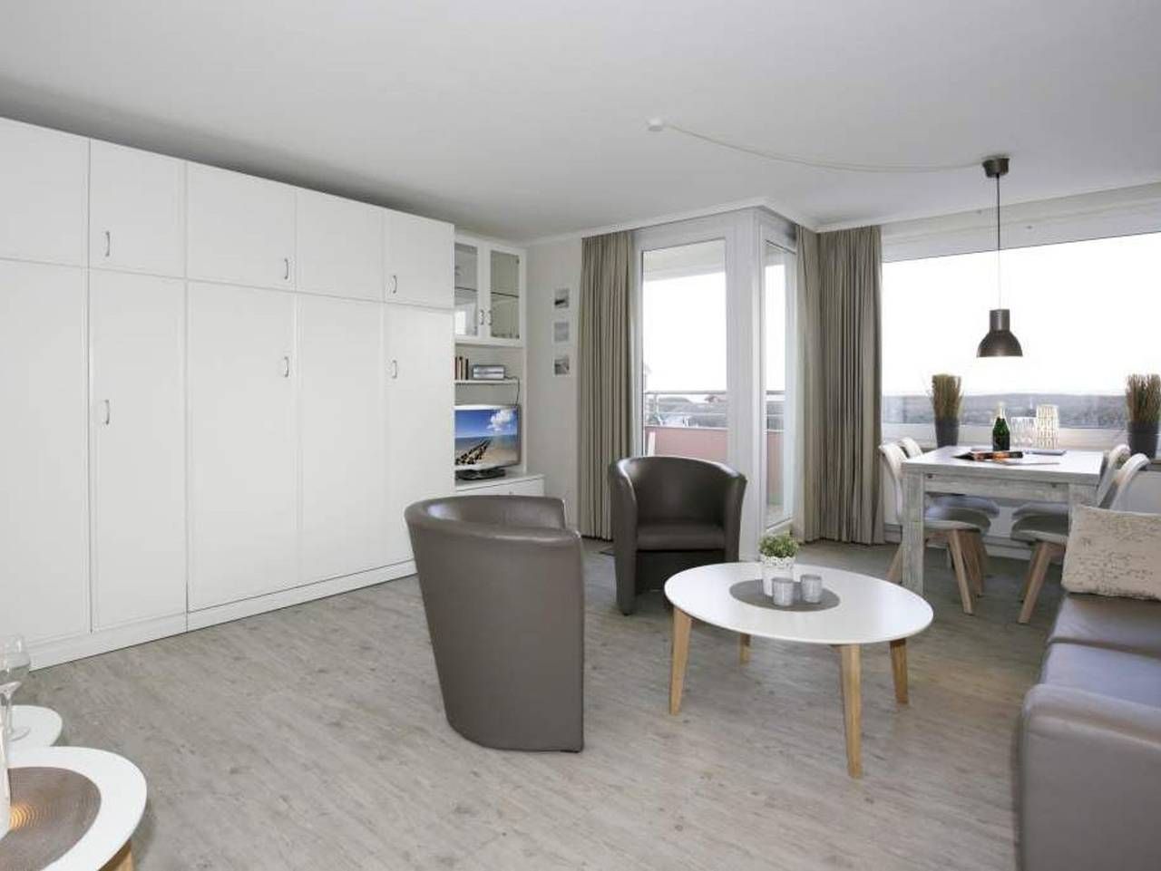 Schöne Meerblick-Ferienwohnung! Geschmackvoll eingerichtete 2-Zimmer-Nichtraucher-Ferienwohnung, ca. 44 qm, in der 4. Etage zur Westseite für max. 4 Personen mit Westbalkon und Meerblick (Nachmittagssonne, mit Balkonmöbeln und...