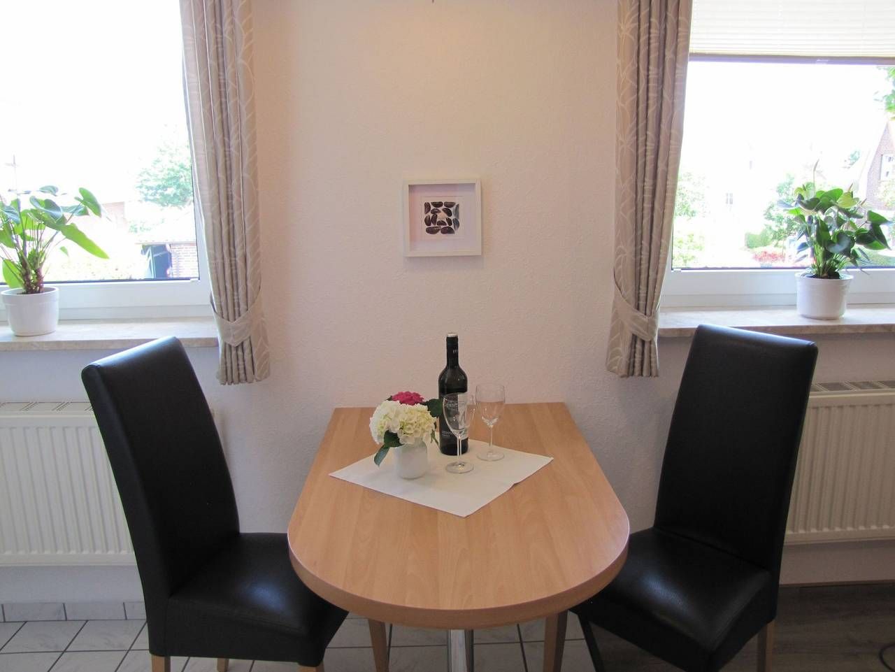 Das Einfamilienhaus mit den zwei Ferienwohnungen befindet sich im nördlichen Ortsteil von Büsum. Es ist eine ruhige Lage und ca. 1500 m von der Familienlagune Perlebucht entfernt. Die Fußgängerzone mit vielen Einkaufsmöglichkeiten und das Erlebnisbad Meerzeit erreichen Sie in ca. 15 Gehminuten. Die Ferienwohnungen können jede einen Sitzplatz im Garten nutzen. Das Auto parkt bequem auf dem Grundstück. Von Heide kommend nehmen Sie am Kreisverkehr vor Büsum die erste Ausfahrt in Richtung Strand. Am nächsten Kreisverkehr nehmen Sie die 3. Ausfahrt und danach die erste rechts und dann die nächste links. Schon beginnt Ihr Urlaub. Haus Leißner liegt ruhig am Ortsrand. Zum Zentrum und zum Strand sind es jeweils ca 1,5 KM. Die Nichtraucher-Wohnung für 2 Personen befindet sich in der ersten Etage eines modernen Einfamilienhauses. Das Haus ist ruhig gelegen im nördlichen Ortsteil von Büsum, ca. 1500m vom Strand. • Im Wohnraum mit Schlafcouch, Sessel, Hocker und Couchtisch machen Sie es sich gemütlich. Unterhaltung bieten Sat-TV, DVD-Player und Radio. • Im Schlafraum ruhen Sie im bequemen Doppelbett. Die weitere Ausstattung besteht aus 2 Nachttischen, 3-türiger Kleiderschrank, Radiowecker und Spiegel. Ein Babybett ist nicht möglich. • Flur mit Garderobe und Schuhständer. • Einbauküche mit Esstisch und Stühlen, Herd mit Ceranfeld (4 Kochstellen), Backofen, Geschirrspüler, Kühlschrank mit 3Sterne-Gefrierfach, Kaffeemaschine, Wasserkocher, Toaster. Geschirr und Hausrat für den täglichen Bedarf ist vorhanden. • Tageslicht-Duschbad mit WC Endreinigung, sowie Bettwäsche und Handtücher sind im Preis enthalten. Staubsauger, Bügeltisch und Dampfbügeleisen gemeinschaftlich für zwei Wohnungen zu nutzen. Gemeinschaftsterrasse mit Strandkorb, Tisch und Stühlen im Garten. PKW-Stellplatz am Haus, 2 kostenlose Leihfahrräder auf Wunsch.