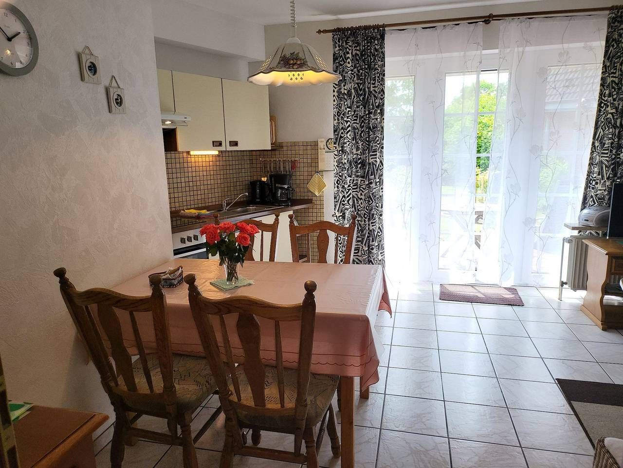 Das 1 1/2-geschossige Appartmenthaus mit 5 Wohnungen befindet sich im Nordwesten Büsums in einer ruhigen Wohnlage. • Alle Wohnungen haben Terrasse oder Balkon mit Südausrichtung. • Ihr Auto macht Urlaub auf einem eigenen Stellplatz auf dem Grundstück • Für Ihre Fahrräder gibt es eine verschließbare Gemeinschaftsunterkunft. • Garten mit Liegewiese, Strandkorb, Spielbereich und Grillmöglichkeit. Zum Grünstrand und der Familienlagune Perlebucht sind es ca. 5-8 Gehminuten. Die Fußgängerzone mit vielen Einkaufsmöglichkeiten und Gaststätten sowie das Ärztezentrum, dem Piratenmeer Erlebnisbad sind in 20-25 Minuten erreichbar. Bäcker bieten morgens Einkaufsmöglichkeiten in der Nähe. Sie erreichen Büsum mit der Bahn im Stundentakt ab Heide. Dort direkte Anschlüsse an die Fernzüge. Mit dem Auto nehmen Sie die A23 Abfahrt Heide-West/Büsum und folgen der B203. Kurz vor Büsum am Kreisverkehr die erste Ausfaht Richtung Strand nehmen. Hinter dem Ortseingang die zweite Straße links gegenüber dem Campingplatz. Sie haben Ihr Ziel erreicht. Die Ferienwohnung ist ca. 3 Gehminuten von der Familienlagune Perlebucht entfernt. Das Zentrum ist zu Fuß in 15 Min. zu erreichen. Die Büsumer Kleinbahn (Auf der Straße fahrender Freizeitzug) hält nur 200 Meter entfernt und bringt Sie in der Saison kostenlos zu zahlreichen Stationen im Ort und zurück. Appartement im Erdgeschoß für bis zu 3 Erwachsene und 1 Kleinkind. • Wohnraum mit rustikaler Einrichtung. Bequeme Eckcouch mit Schlaffunktion für 1 Person. Beistelltisch, Sat-TV mit modernem LCD-Bildschirm. Fußboden gefliest. • Küchenzeile im Wohnraum mit 4 Kochstellen, Backofen, Abluft-Dunstabzug, Kühlschrank mit Gefrierfach, Spüle, Kaffeemaschine, Toaster und Wasserkocher, ausreichend Geschirr und Kochutensilien. Esstisch mit 4 Stühlen. • Schlafraum in warmen Farbtönen gehalten, mit Doppelbett, großer Eck-Kleiderschrank, Kommode und Nachtschränke, Babybett bei Bedarf. Fußboden gefliest. • Badezimmer, vom Schlafzimmer aus zugänglich. Neue bodengleiche Dusche und Waschbecken. • Das WC ist vom Bad getrennt und von der Diele aus erreichbar. • Abstellraum für Koffer usw. • Mit Holzmöbeln ausgestattete Terrasse nach Süden mit Zugang zum Garten. Leistungen gegen Gebühr: • Waschmaschine und Wäschetrockner in Gemeinschaftsnutzung. • Bett- und Handtuchwäsche selbst mitbringen oder Grundausstattung gegen Gebühr. • Kleiner Hund • Fahrräder für Erwachsene, wenn verfügbar (Insgesamt 4 Fahrräder im Haus vorhanden). Eine weitere Fahrradvermietung befindet sich in der Nähe.