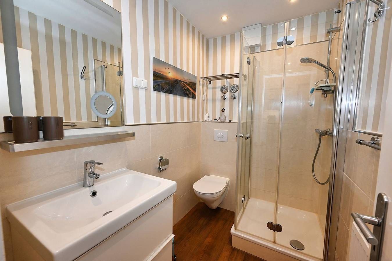 Die 1-Raum-Ferienwohnung mit großem Balkon bietet dir einen Urlaub in stilvoller Atmosphäre. Es erwartet dich eine moderne und behaglich eingerichtete Wohnung. Auf dem Balkon mit seitlichem Blick über die Familienlagune mit Meerblick (Süd-/West- Lage) kannst du die Sonne ab Mittag bis in die Abendstunden in vollen Zügen genießen. Die komfortable Ferienwohnung ist ausgestattet mit einer separaten Küche und einem Duschbad. Die Küche ist komplett ausgestattet mit Geschirrspüler, Backofen und Mikrowelle. Ein DVD-Player und Flachbild-TV bringt Erholung auf dem gemütlichen Sofa in dunklerer Jahreszeit. Ein Pkw-Stellplatz befindet sich direkt am Haus.