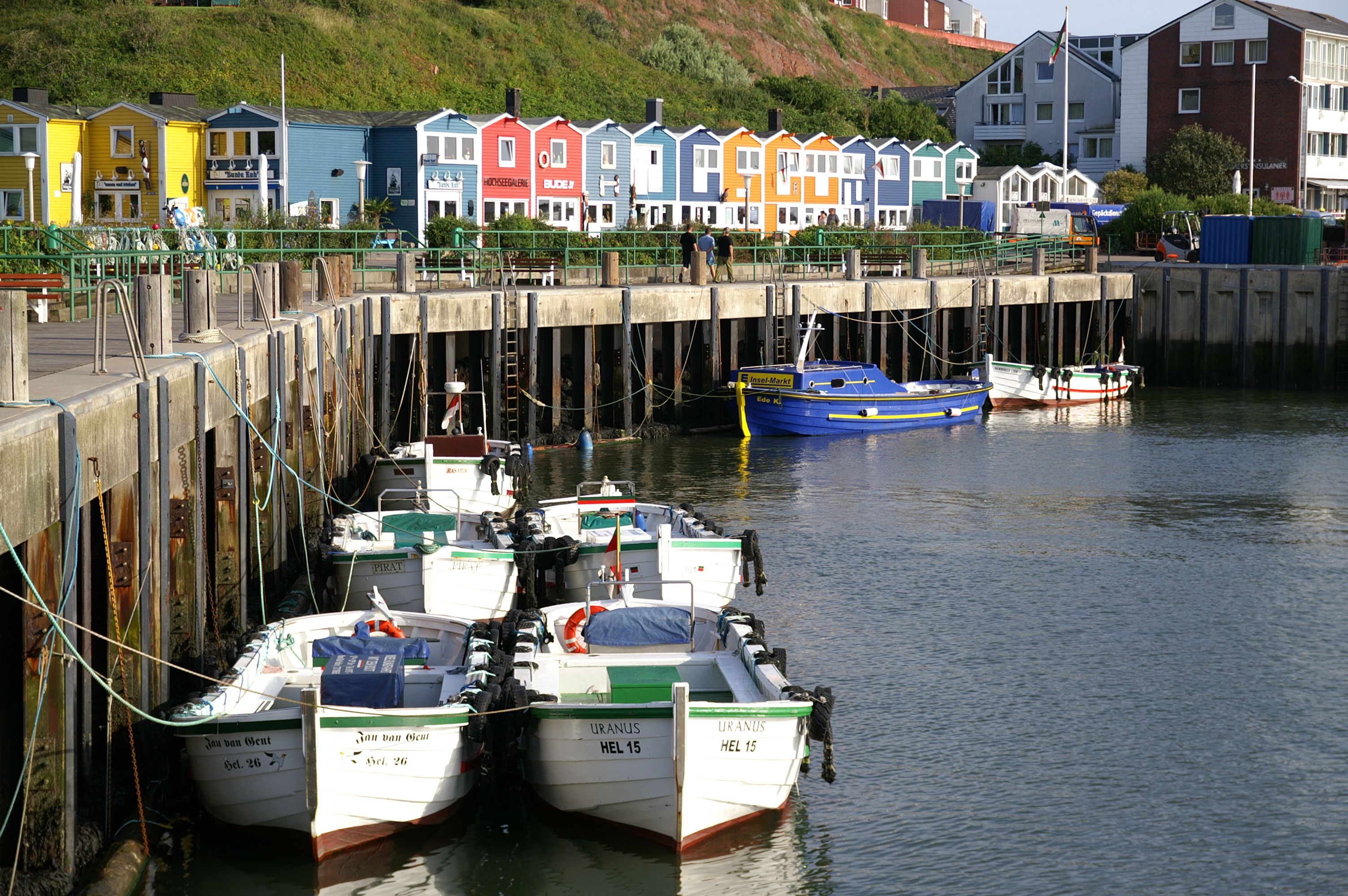 Die Hummerbuden von Helgoland - solch bunte Häuser findest du sonst eher nicht in Deutschland. Die 39 direkt in der Hafenstraße gelegenen Buden werden auch „Hummerhütten“ genannt. Bei den bunt gestalteten Hummerbuden handelt es sich um ehemalige Schuppen und Werkstätten der Helgoländer Fischer. Doch nicht immer hatten die Buden ihr heute so einheitliches Aussehen. Erst nach der Zerstörung und dem Wiederaufbau nach dem Krieg wurde diese einzigartig bunte Kulisse geschaffen.