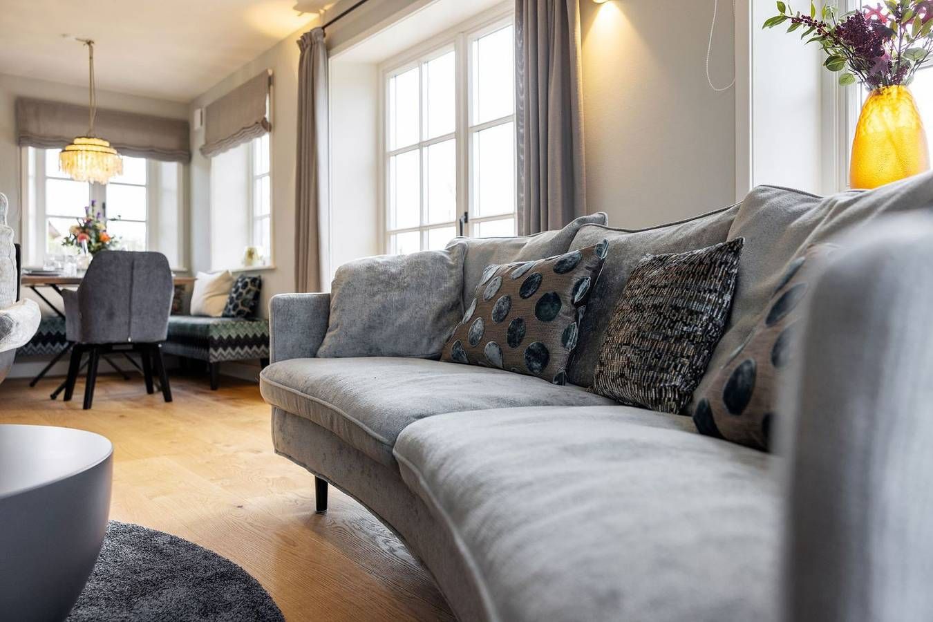 EXKLUSIVES REETGEDECKTES FERIENHAUS IN WESTERLAND – ERHOLUNG UND LUXUS FÜR BIS ZU 6 PERSONEN Erleben Sie die perfekte Kombination aus modernem Komfort und traditioneller Sylter Gemütlichkeit in dieser Neubau-Doppelhaushälfte unter Reet. Auf ca. 170 m² und zwei Ebenen bietet das Haus ein stilvolles Ambiente für bis zu 6 Personen. Genießen Sie den großzügigen Wohn- und Essbereich mit Gaskamin sowie die charmante Gartenanlage mit zwei Terrassen – ideal für entspannende Tage und Abende an der frischen Nordseeluft. **WOHNEN UND GENIESSEN** Der lichtdurchflutete Wohnbereich besticht durch seine moderne, hochwertige Einrichtung und den gemütlichen Gaskamin, der eine warme Atmosphäre schafft. Die komfortable Couch lädt zum Verweilen ein, während der großzügige Esstisch, direkt am Kamin, Platz für gesellige Mahlzeiten bietet. Vom Wohnzimmer aus gelangen Sie direkt in den schönen Garten mit zwei sonnigen Terrassen – ideal für entspannte Stunden im Freien. **OFFENE KÜCHE MIT KOMFORT** Die offene Wohnküche ist mit hochwertigen Geräten der Marke KitchenAid, einem Induktionsherd und einer Nespresso-Maschine ausgestattet. Hier finden Sie alles, was Sie für die Zubereitung Ihrer Lieblingsgerichte benötigen. Die Küche bietet eine perfekte Balance aus Funktionalität und stilvollem Design, ideal für gemeinsame Kochabende und gemütliche Mahlzeiten am Esstisch. **ENTSPANNUNG UND ERHOLUNG** Alle drei Schlafzimmer sind mit luxuriösen Boxspring-Doppelbetten (180x200 cm) und Einbauschränken ausgestattet und bieten höchsten Schlafkomfort. Jedes Schlafzimmer verfügt über ein angrenzendes Badezimmer, das mit Tageslicht, Fußbodenheizung und Föhn ausgestattet ist und Ihnen ein kleines Wellness-Erlebnis bietet. Die Bäder verfügen über bodengleiche Duschen und eine Badewanne – perfekt für entspannte Momente. **RELAXEN IN DER SAUNA** Ein besonderes Highlight des Hauses ist die finnische Sauna, die besonders in der kälteren Jahreszeit wohltuende Entspannung verspricht. Hier können Sie die Seele baumeln lassen und sich in wohltuender Wärme erholen. **PRAKTISCHE EXTRAS** Im Hauswirtschaftsraum stehen Ihnen eine Waschmaschine und ein Trockner zur Verfügung. Ein Pkw-Stellplatz und Fahrradabstellmöglichkeiten befinden sich direkt am Haus. WLAN (ohne Gewähr) ist ebenfalls vorhanden. Haustiere sind nicht gestattet. Genießen Sie dieses luxuriöse Feriendomizil in Westerland, nur einen kurzen Spaziergang vom Strand entfernt und in unmittelbarer Nähe zu allen Annehmlichkeiten der Insel Sylt.