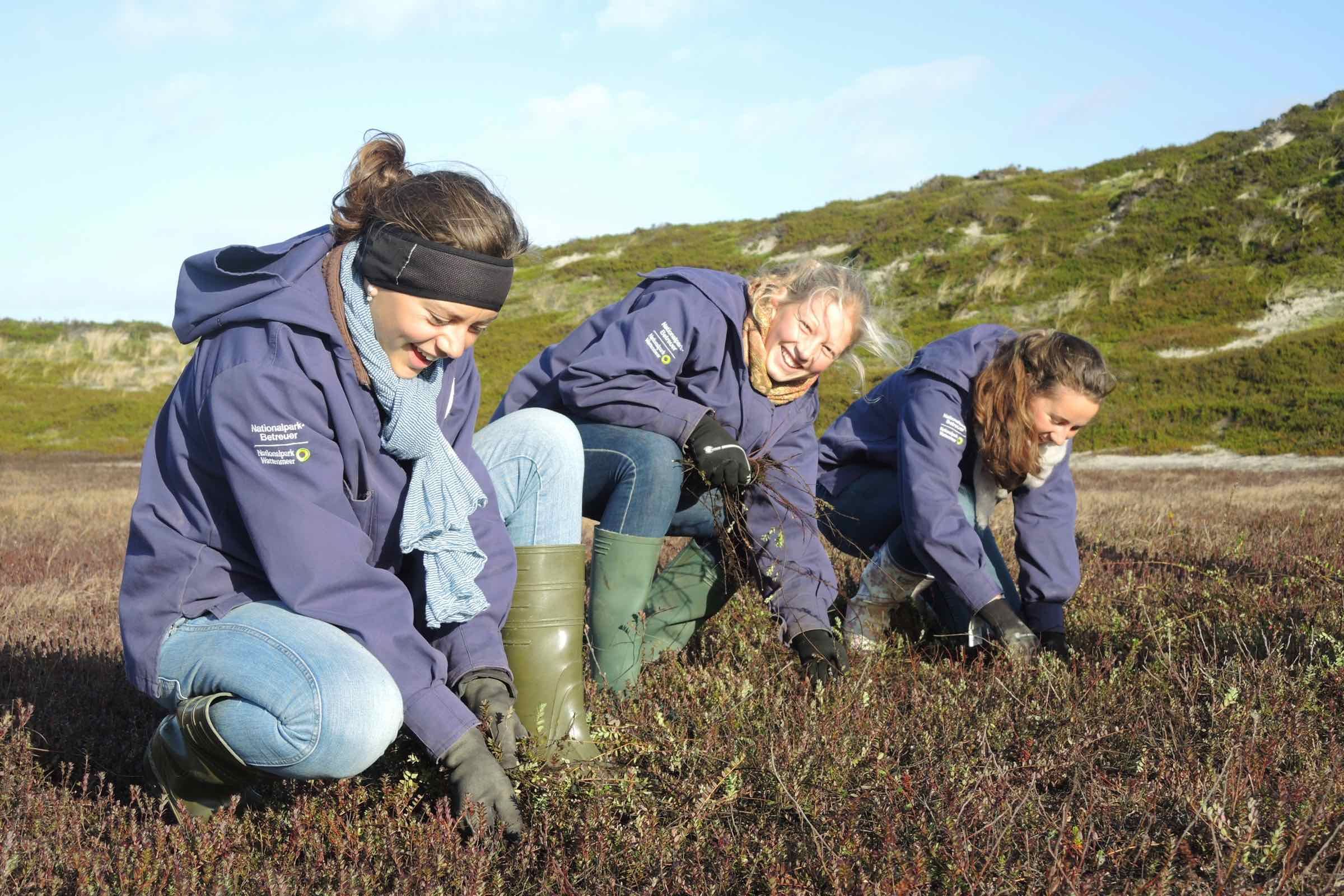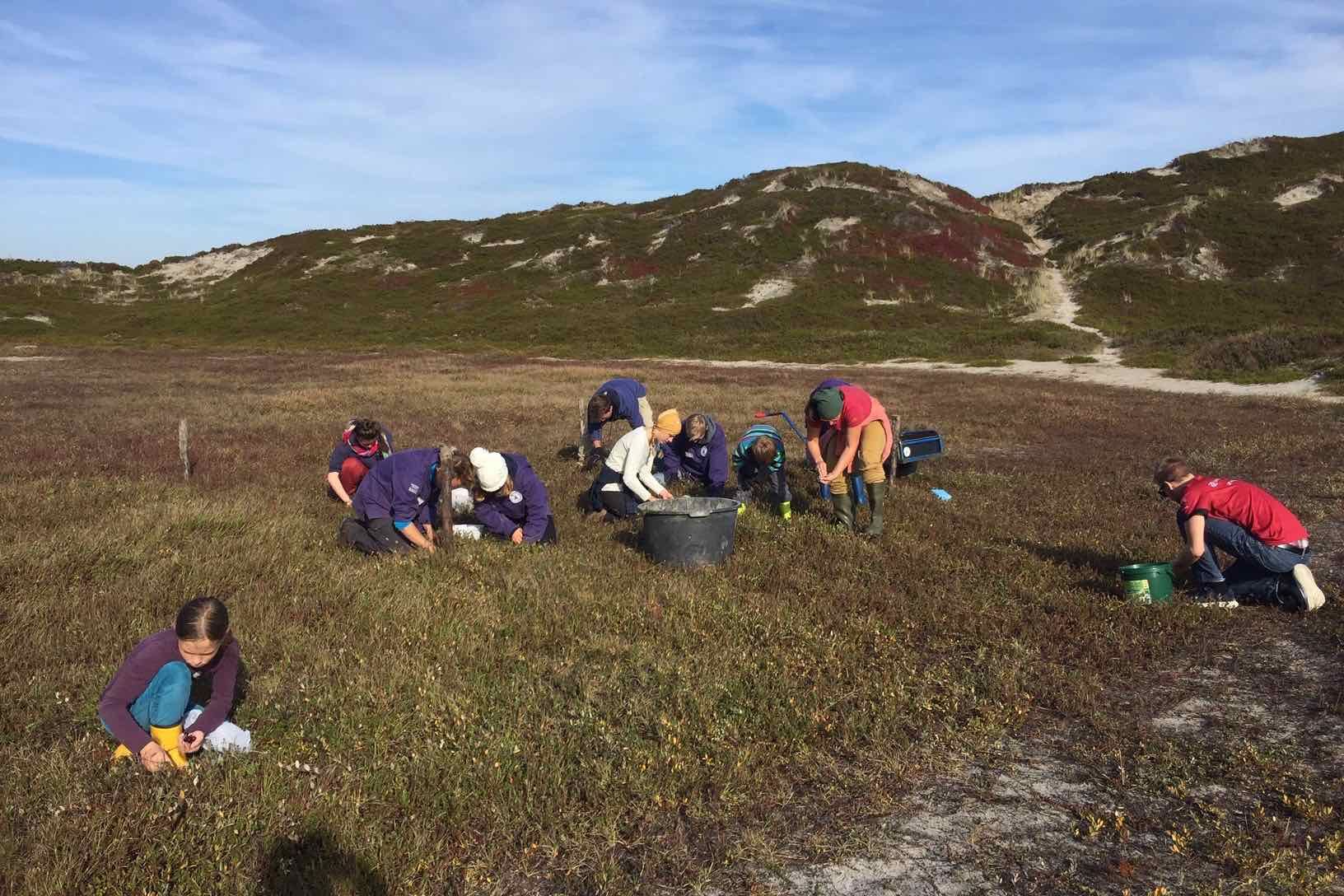 Wir gehen in die Dünen, um die Pflanzen samt Wurzelwerk zu entfernen.