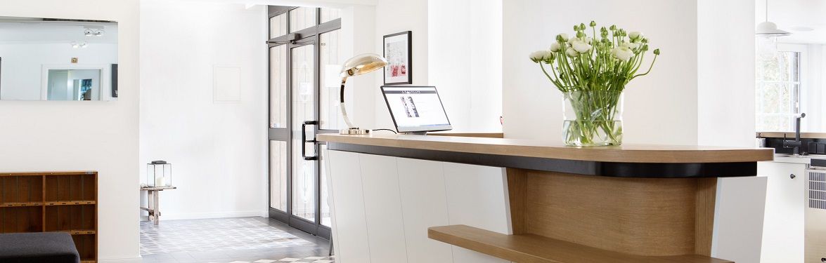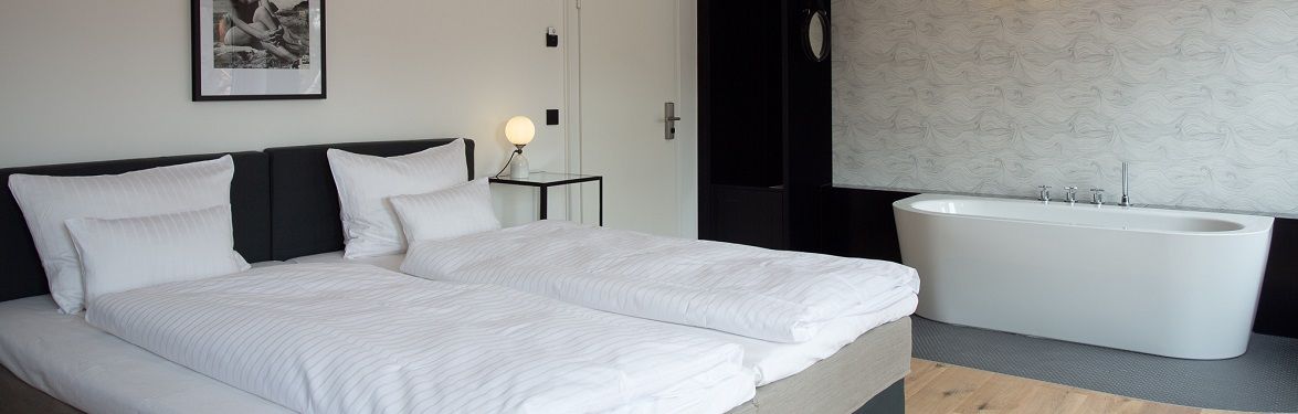Das zeitlose Interieur des Hotels unterstreicht die ungezwungene und familiäre Atmosphäre. Die Inhaber verordneten den Räumen einen harmonischen Stilmix aus gelassenem skandinavischen Design mit antiken Einzelstücken und modernem Mobiliar. Leuchtendes, erfrischendes Weiß dominiert in allen Zimmern, graue und schwarze Eyecatcher setzen Akzente.