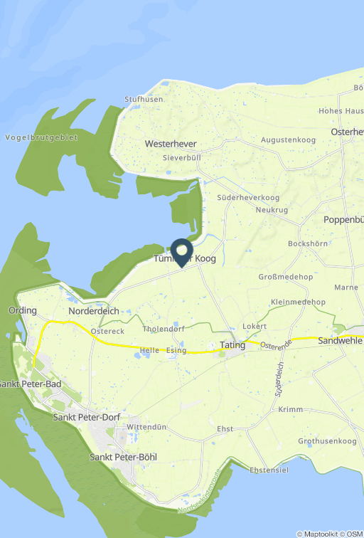 Exklusiv. Einzellage. Gemeinsam genießen. Die Ferienhäuser Dat Groote Kooghuus (ID 423, ca. 120?m², bis 6 Pers.) und Dat Lütte Kooghuus (ID 424, ca. 85?m², bis 4 Pers.) liegen nebeneinander in ruhiger Einzellage im Tümlauer Koog mit weitem Blick ins Grüne und auf den Nordseedeich. Buchen Sie beide zusammen als De Kooghüser (ID 915). Ideal für Familien oder Freunde, die gemeinsam reisen und dennoch Freiraum genießen möchten. Beide Domizile bieten großzügige Wohnbereiche mit Kaminofen, SMART-TV und Zugang zur eigenen Terrasse. Die modernen Küchen sind umfassend ausgestattet inkl. Waschtrockner. Insgesamt 5 Schlafzimmer mit hochwertigen Matratzen, Verdunklungsrollos und TV sowie 4 stilvolle Bäder (teilweise ensuite) und 2 Gäste-WCs sorgen für Komfort. Im weitläufigen Garten mit Spielgeräten finden Groß und Klein Erholung. Drei Pkw-Stellplätze und ein abschließbarer Fahrradschuppen sind vorhanden. Zum Ordinger Strand oder ins Dorfzentrum von St. Peter sind es nur 10 Minuten mit dem Auto. Bettwäsche inklusive, Handtücher zubuchbar. Haustiere und Rauchen sind nicht erlaubt. Willkommen im Tümlauer Koog, einem paradiesischen Fleckchen Erde an der Nordseeküste, das zum Entspannen und Entdecken einlädt. Unsere Domizile bieten nicht nur Komfort, sondern auch eine unschlagbare Lage: Nur wenige Schritte entfernt erstrecken sich die majestätischen Deichlandschaften, die zu entspannten Spaziergängen einladen. Mit dem Fahrrad können Sie die Küste erkunden und dabei die frische Meeresluft genießen. Spüren Sie den Wind in den Haaren, während Sie die malerische Küstenlandschaft erkunden. Und wenn Sie etwas mehr Action suchen, bietet der Strand von St. Peter-Ording zahlreiche Wassersportmöglichkeiten. Vergessen Sie nicht, den Westerhever Leuchtturm zu besuchen, der mit seiner malerischen Kulisse ein echtes Highlight darstellt. Alle volljährigen Mitreisenden sind kurabgabenpflichtig.
