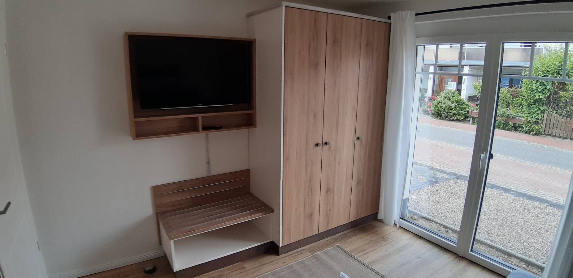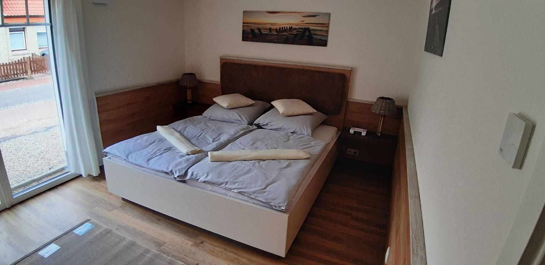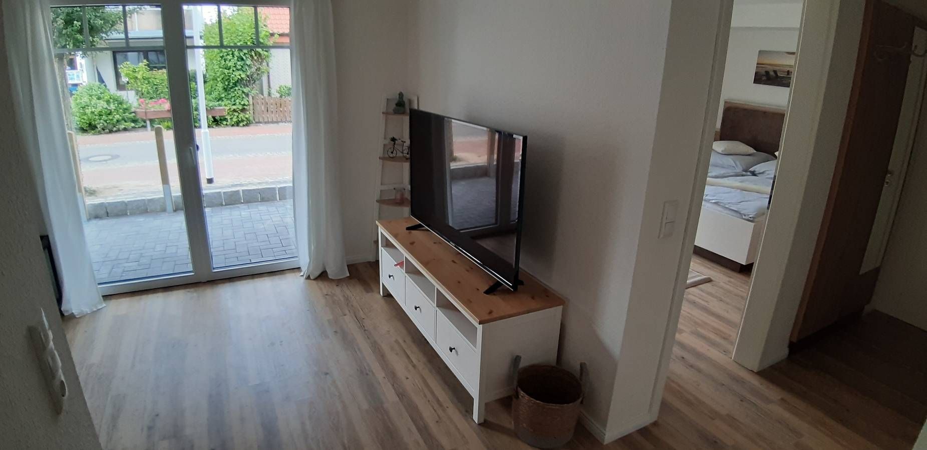 Informationen zum Gastgeber Die moderne "Deichresidenz" befindet sich im zentralen historischen Ortskern von Büsum. In direkter Nähe befindet sich der Hafen. Den Hauptstrand und das "Watt'n Hus" erreichen Sie in ca. 10 Gehminuten. Restaurants und Supermärkte finden Sie im Umkreis von 50 m. Konditionen/Extras Anreise zwischen 14:00 und 24:00 Uhr; Abreise bis 10:00 Uhr. Persönlicher Empfang bei Ihrer Anreise. Anreisebeschreibung Mit dem Auto fahren Sie ab Hamburg durch den Elbtunnel, dann auf der A23 (Richtung Husum) über Itzehoe Richtung Heide. An der Abfahrt Heide West verlassen Sie die Autobahn und folgen der B 203 nach Büsum. Beschreibung. Die 2-Raum-Nichtraucher-Wohnung befindet sich im Erdgeschoss. Die Ferienwohnung ist freundlich und modern eingerichtet. Das Wohnzimmer ist mit 2 Cocktailsesseln mit passendem Tisch, einem Flat-TV und einem CD-Player ausgestattet. Die offene Küchenzeile verfügt über einen Backofen, einen Geschirrspüler, einen Kühlschrank mit Gefrierfach, eine Mikrowelle, einen Wasserkocher und eine Kaffeemaschine. Im gemütlichen Schlafzimmer finden Sie den zweiten Flat-TV und ein gemütliches Doppelbett vor. Zur Wohnung gehört eine großzügige Terrasse mit Gartenmöbeln in Süd/West-Lage. Das Badezimmer ist mit ebenerdiger Dusche, Toilette, Handwaschbecken, einem Fön und einem Vergrößerungsspiegel ausgestattet. Ebenfalls finden Sie in der Ferienwohnung eine Waschmaschinen/Trockner-Kombination sowie ein Bügelbrett und ein Bügeleisen vor. Außerdem gibt es in allen Räumen eine Fußbodenheizung. Konditionen/Extras Bett- und Handtuchwäsche sowie WLAN sind im Preis inklusive. Es steht Ihnen ebenfalls ein (1) kostenfreier PKW-Parkplatz zur Verfügung. Die Ferienwohnung ist neben einer Treppe auch über eine Rollstuhlrampe begehbar. Haustiere sind leider nicht gestattet.